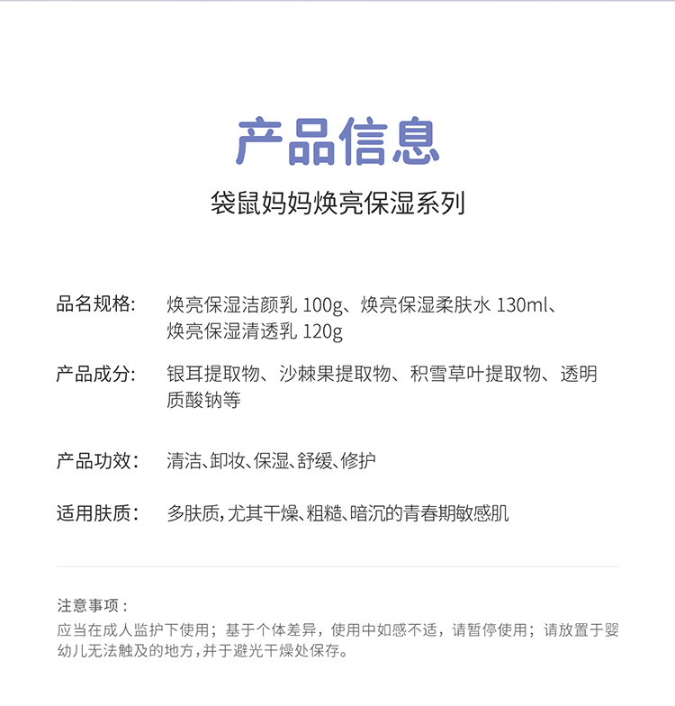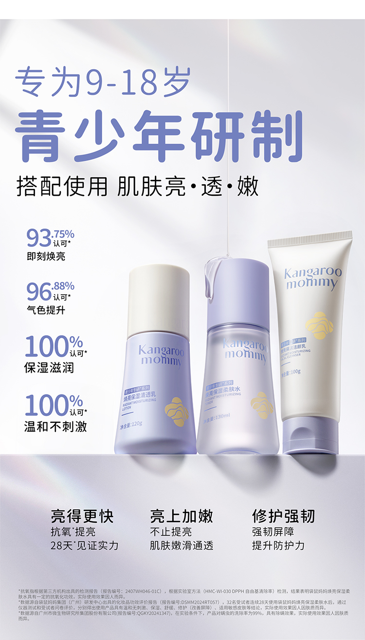 【青少年焕亮3件套】28天保湿透亮 袋鼠妈妈焕亮保湿3件套
