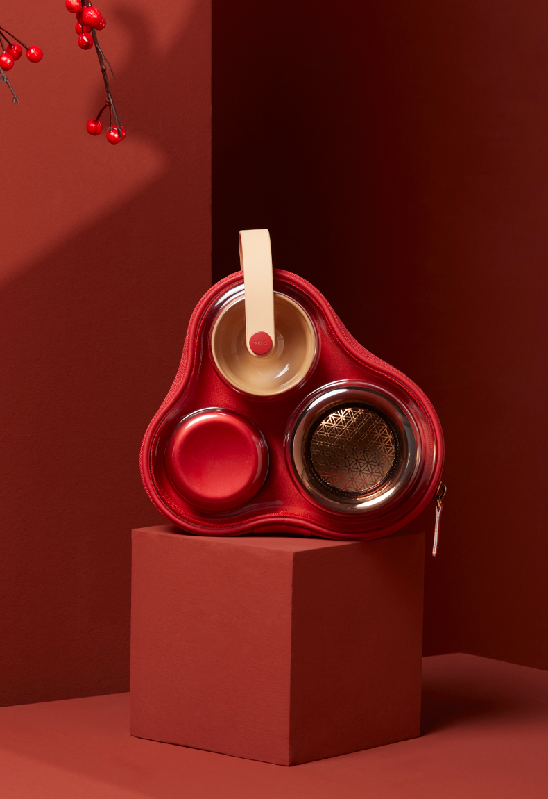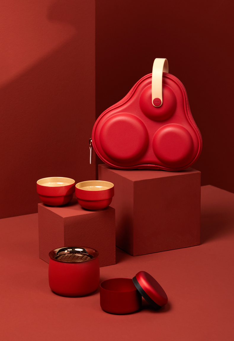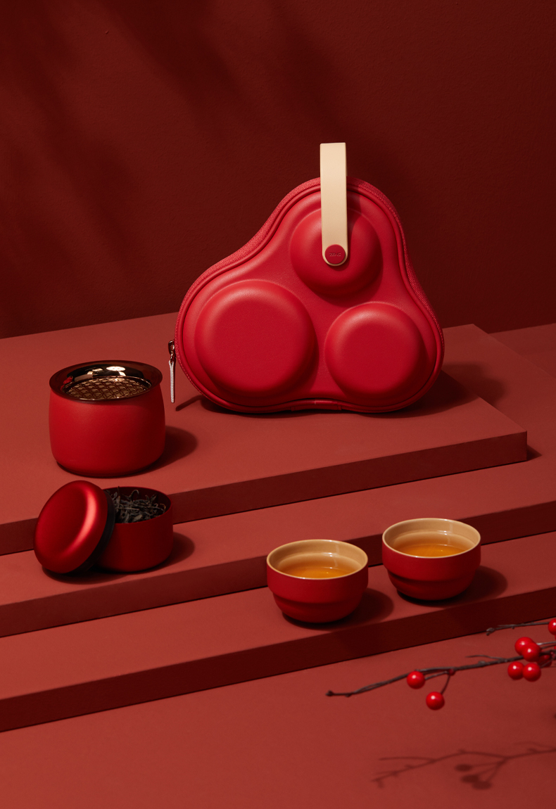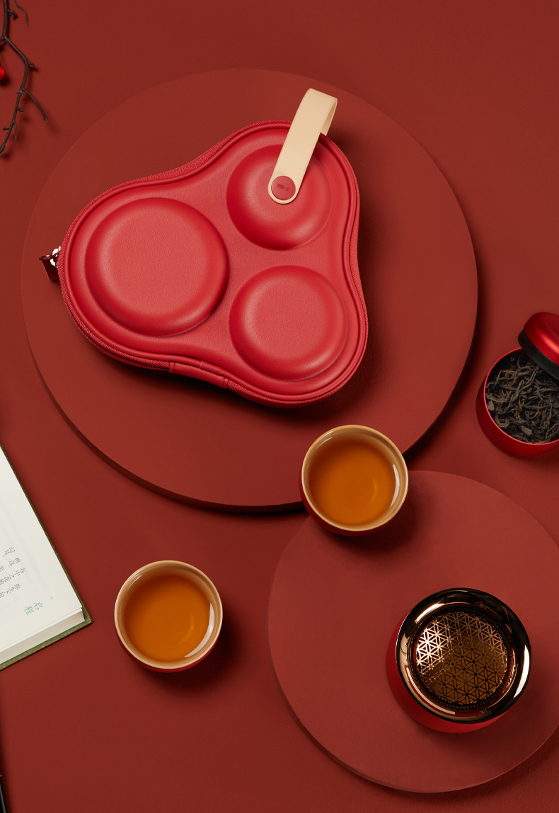 【茶器茶具】澜沧古茶陶瓷茶具便携装套组-皓月(珊瑚红)