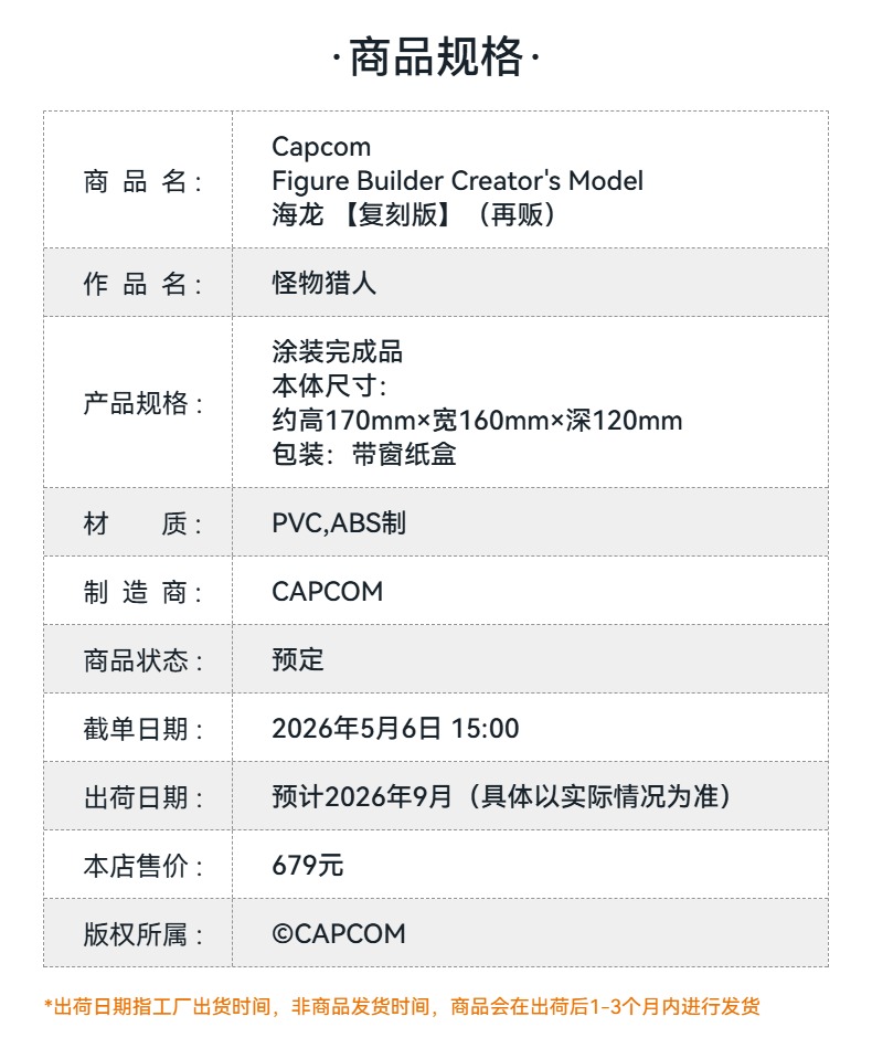 【GSC预售定金】Capcom Figure Builder Creator's Model 海龙 【复刻版】怪物猎人