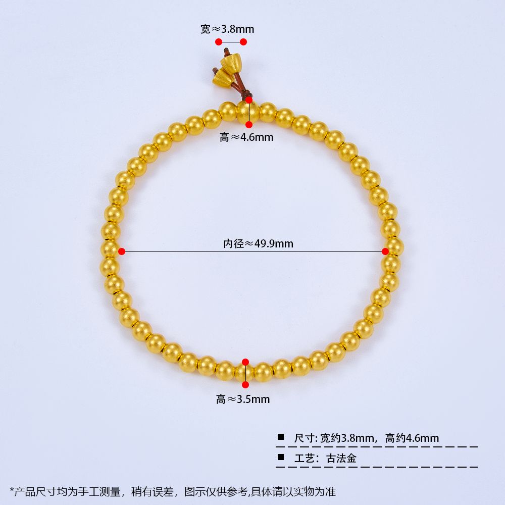 【限时克减150元】足金999.9 古法莲蓬圆珠(大珠约4.6mm,小珠约3.5mm)手串(周长约16-17cm)(GFSCW00010)补差价)预售产品下单后不退款不退货不换货不补差价