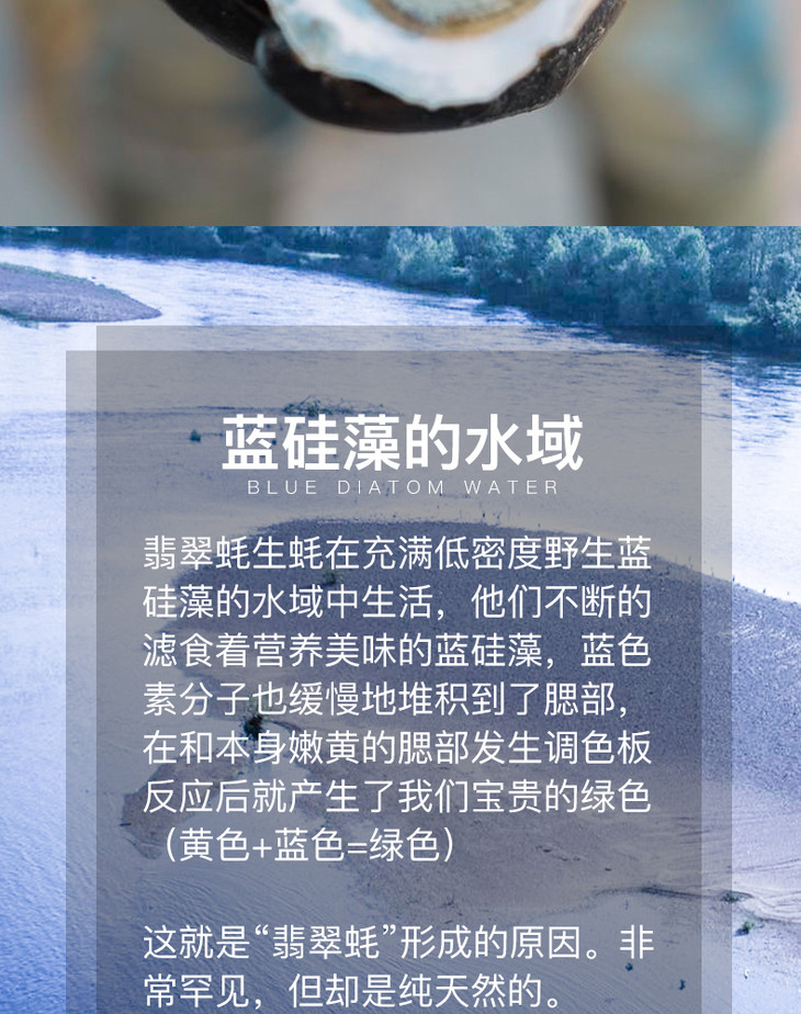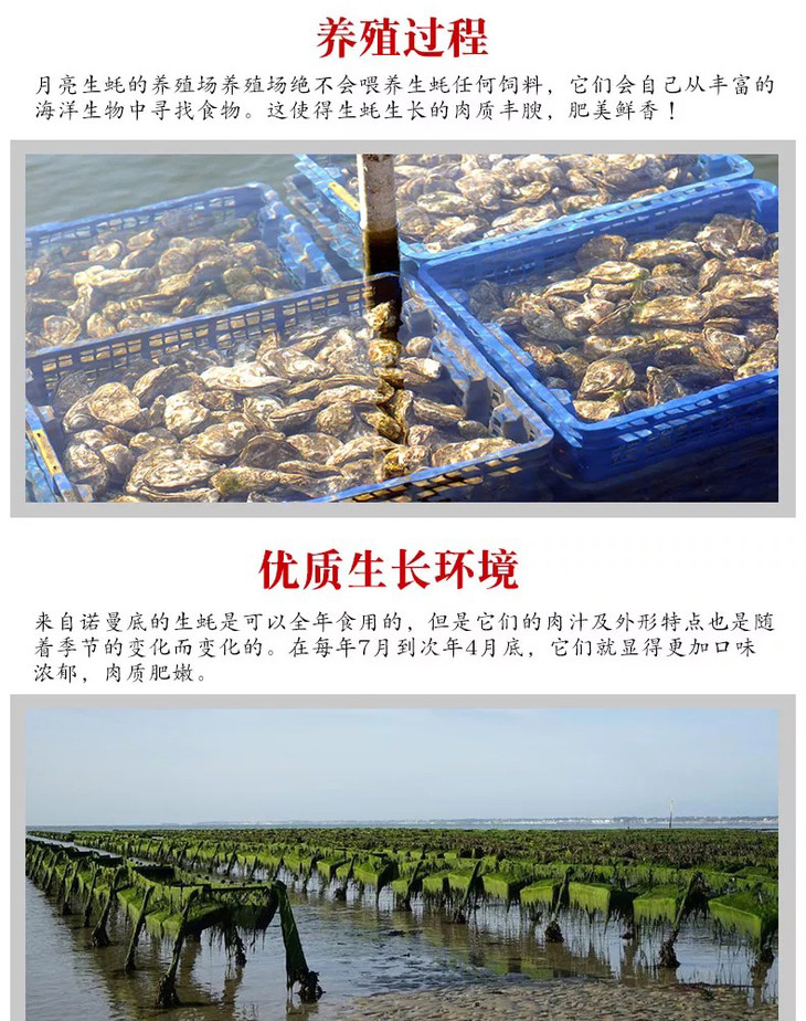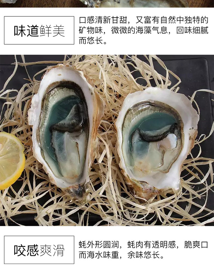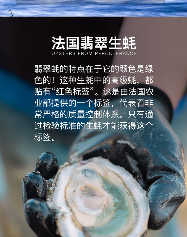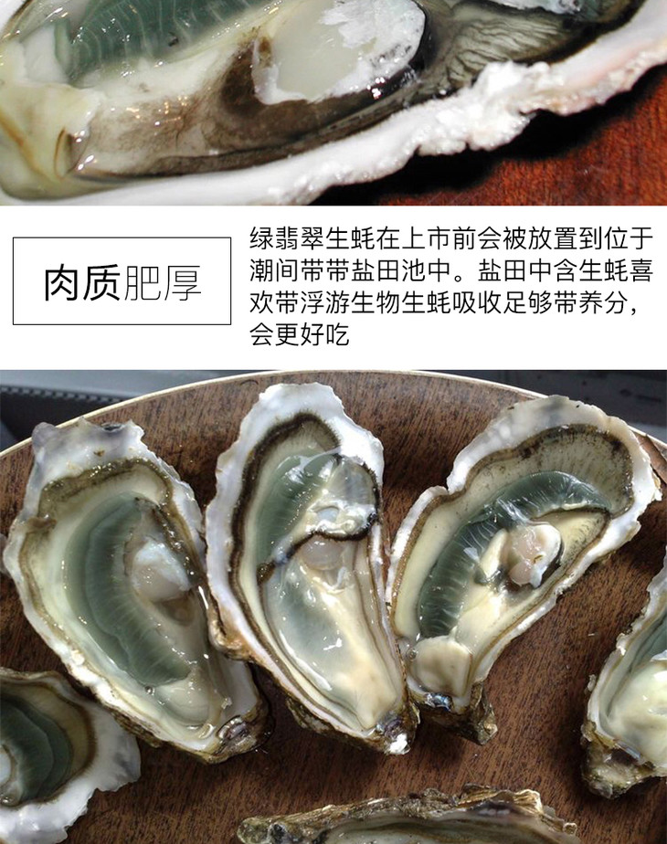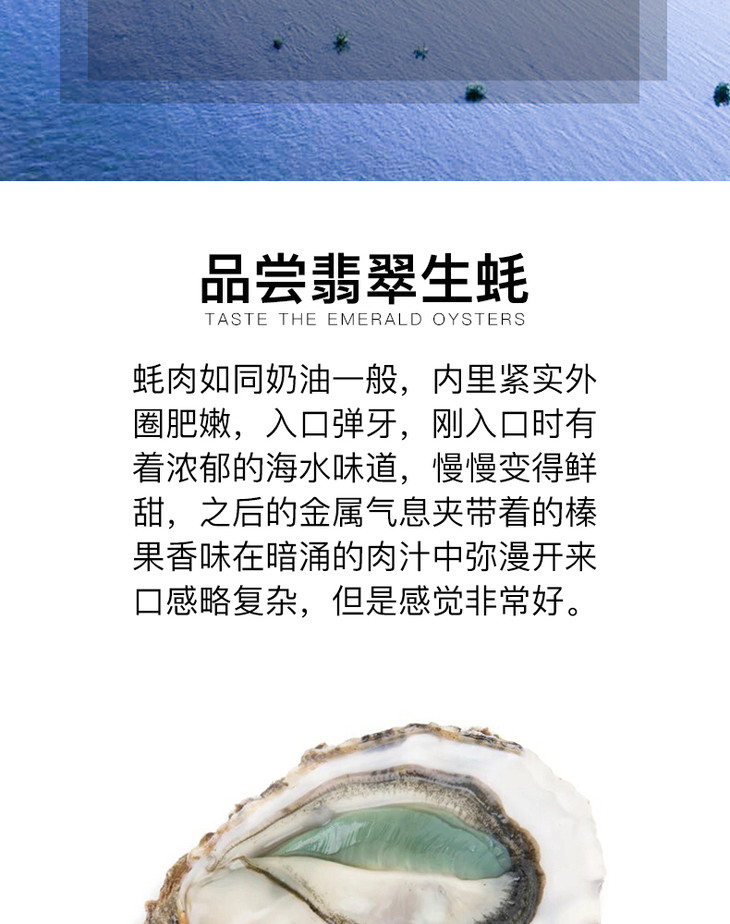 蚝中上品—--丰润玛奥翡翠蚝,在大西洋中放养3年左右,之后会在净池中至少精养30天,放养的密度不会超过️️只每平方水域。翡翠蚝咸度较低,蚝型圆润,肉质饱满厚实。绿蚝放养难度极大,净池中的蓝硅藻是天然繁衍的,所以可控性极低,所以净池绿蚝并不是每年都能见到的,这也凸显了其独有的高贵!每年11月到次年4月,是品尝翡翠蚝的最佳季节!
