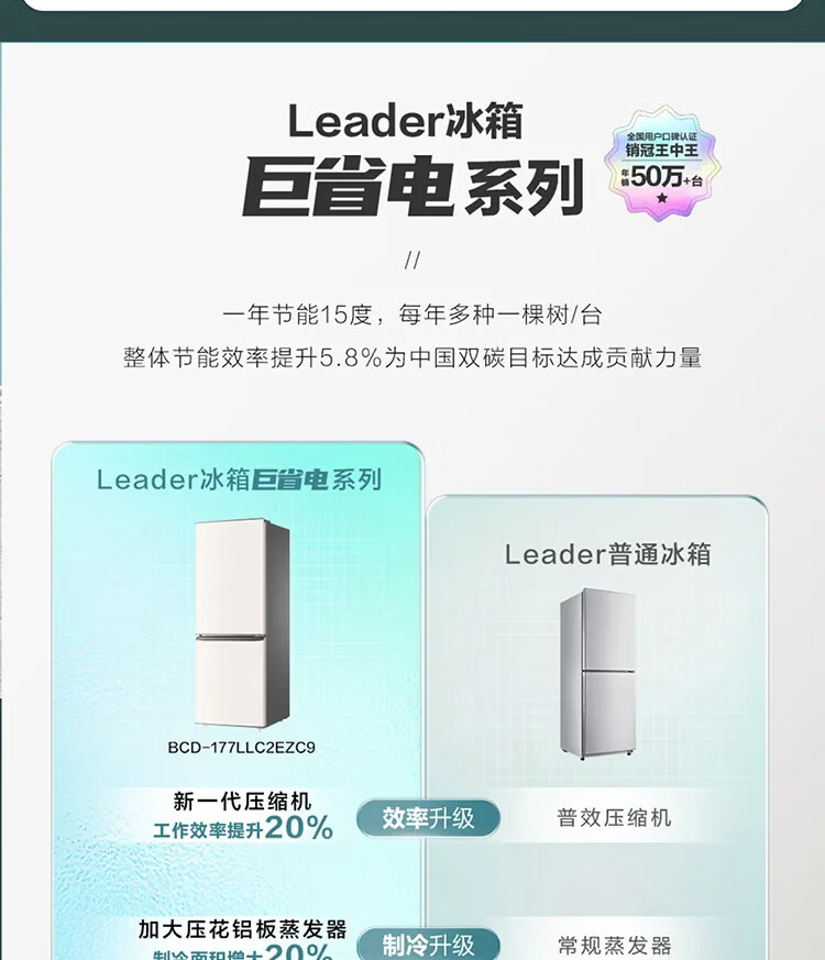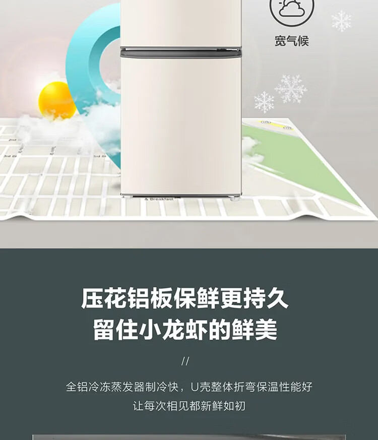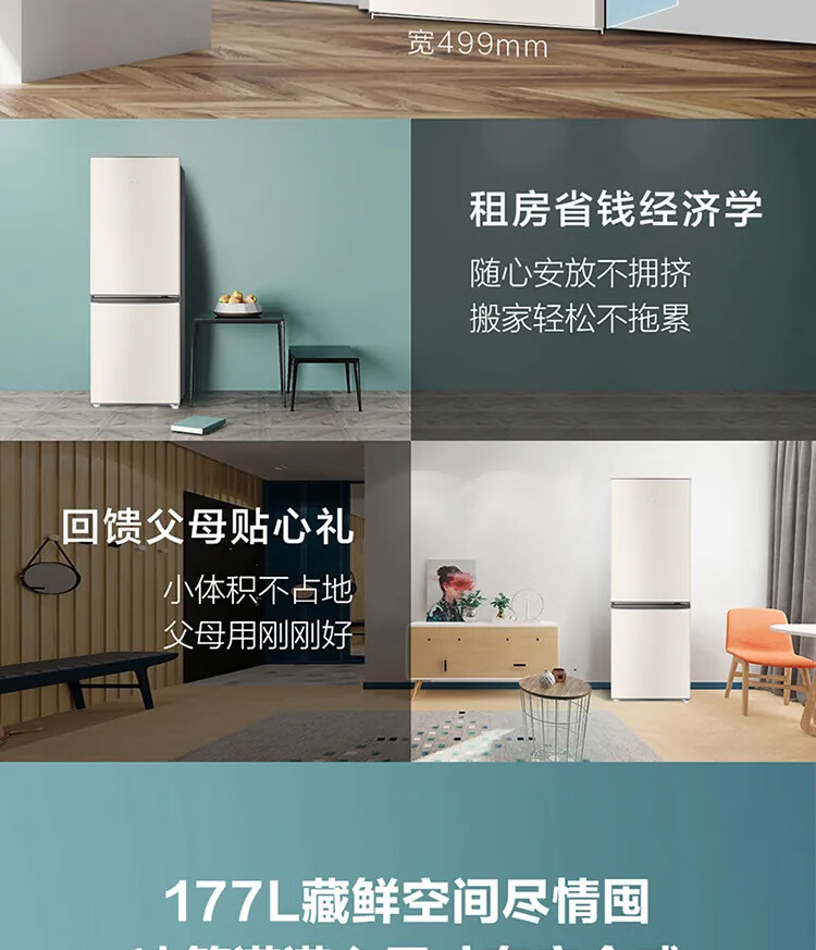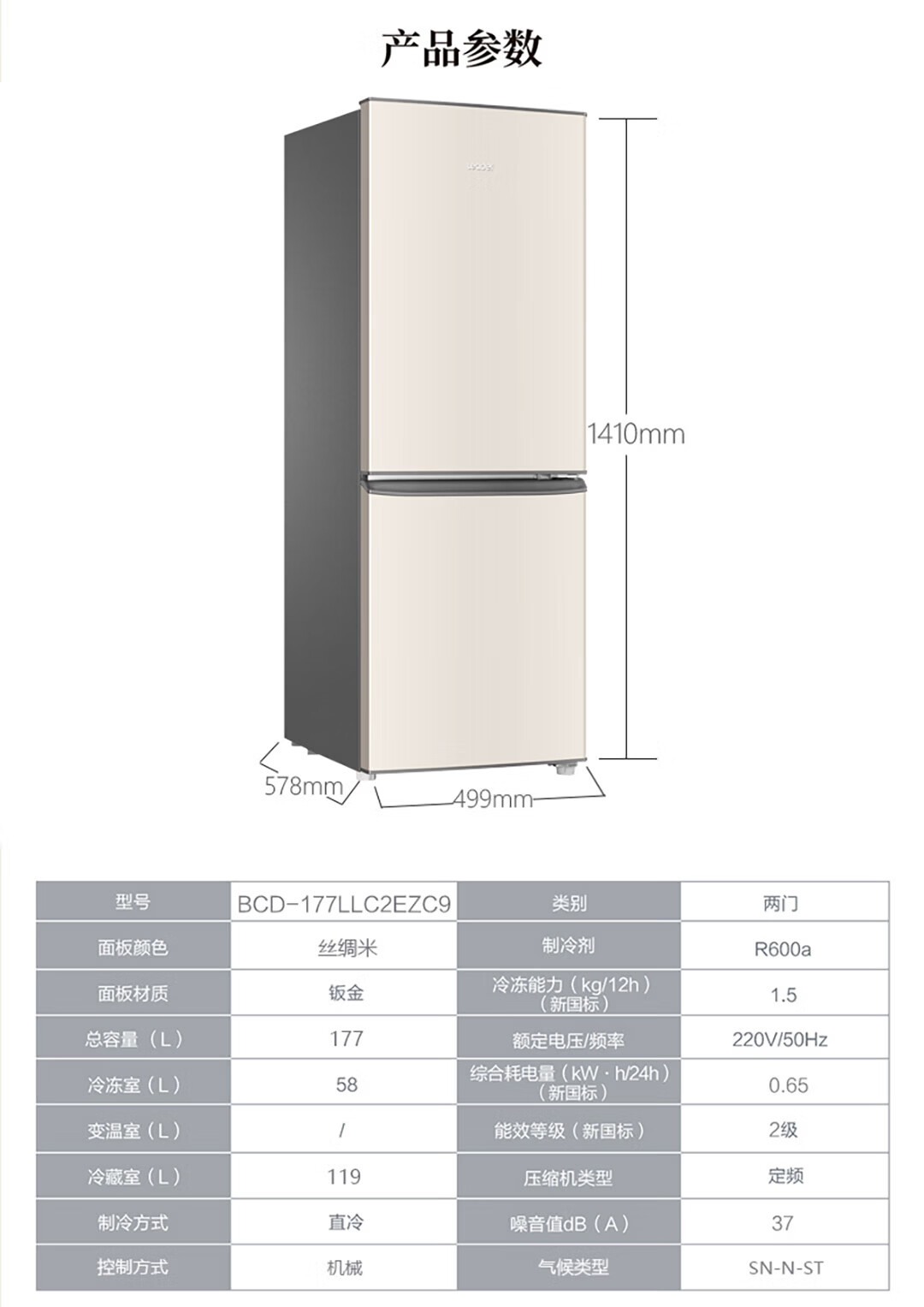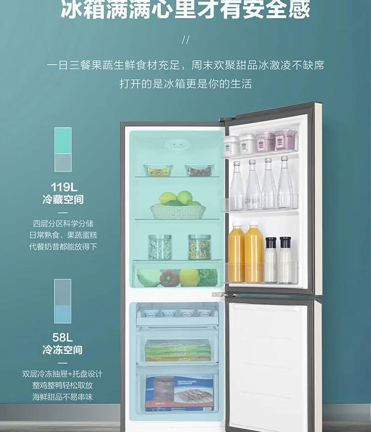 统帅(Leader)海尔智家出品2门冰箱177L双开门冷藏冷冻两门节能宿舍租房家用超薄小冰箱 双门冷藏冷冻BCD-177LLC2EZC9