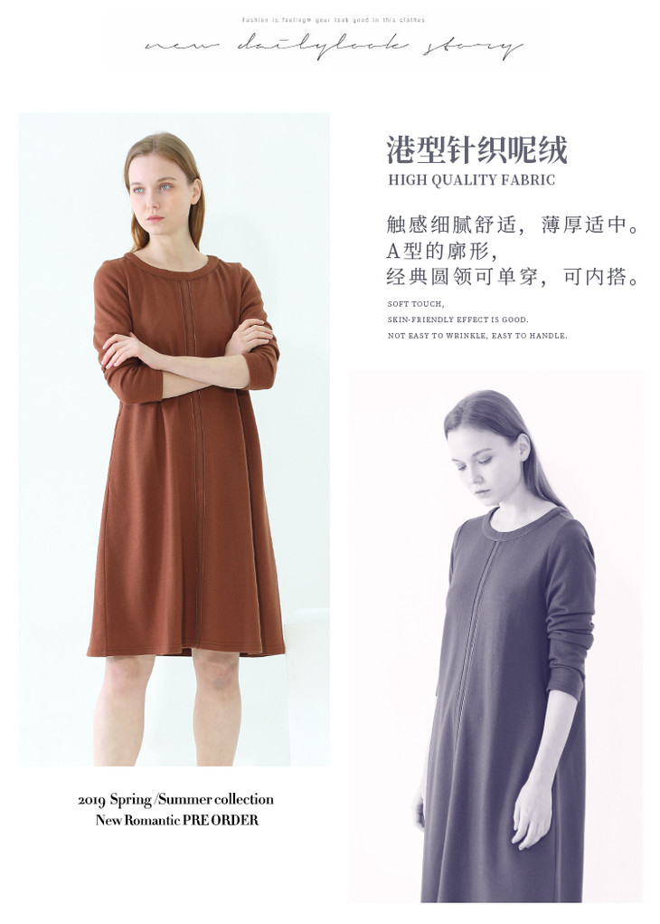 【福利款不退换】阿菁娜圆领套头连衣裙复古气质中长裙A23C112160