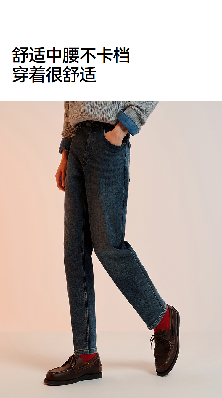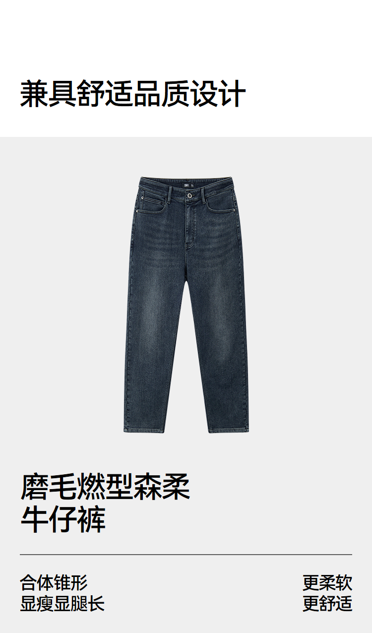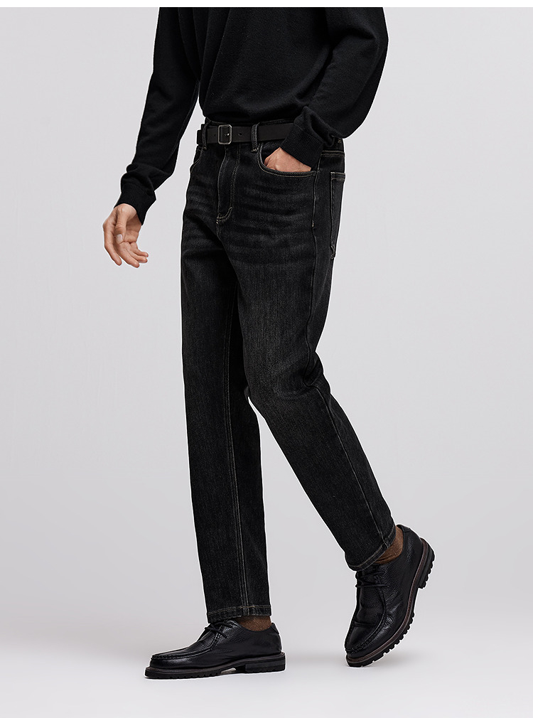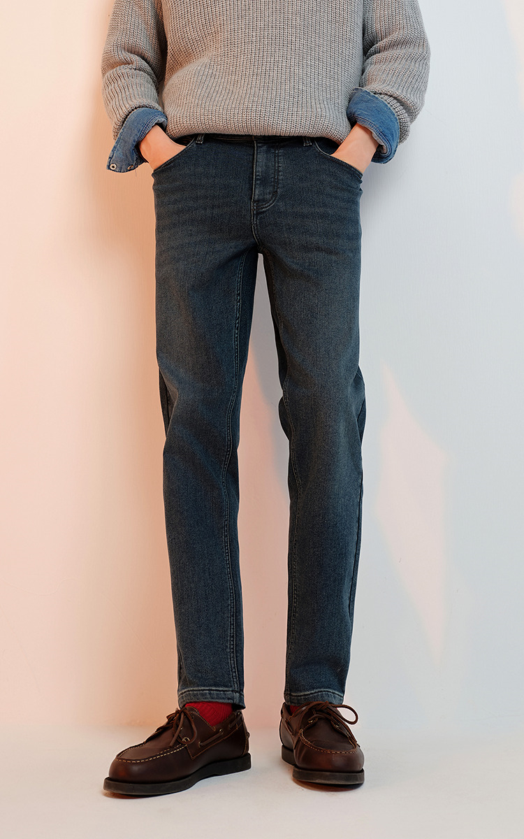 森柔|森马牛仔裤男冬季弹力磨毛锥形裤基础百搭通勤裤子水洗长裤