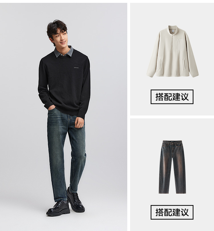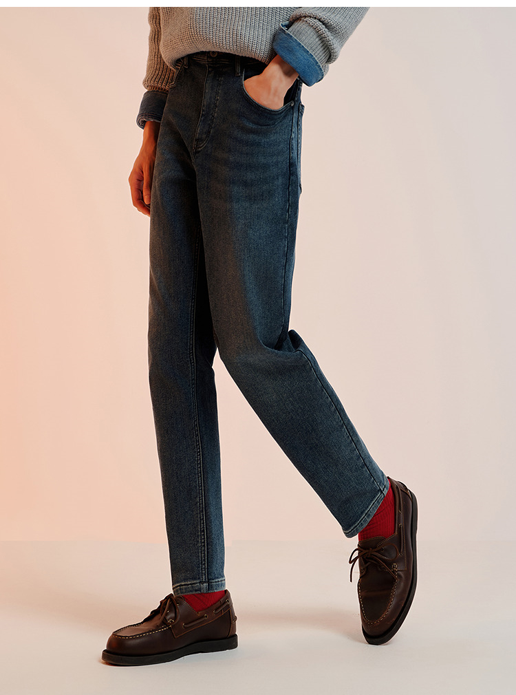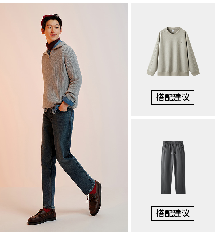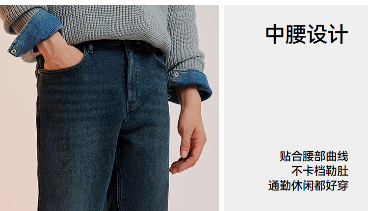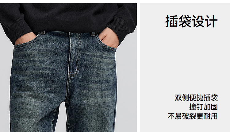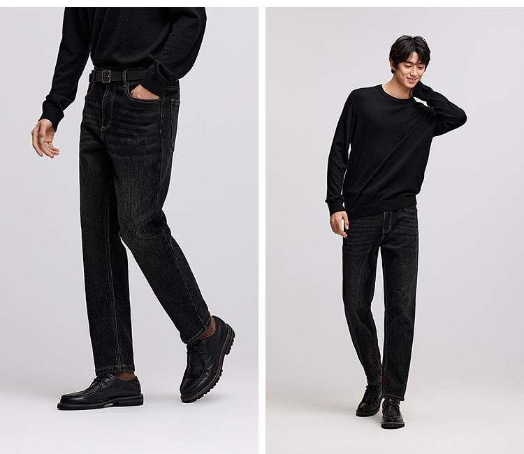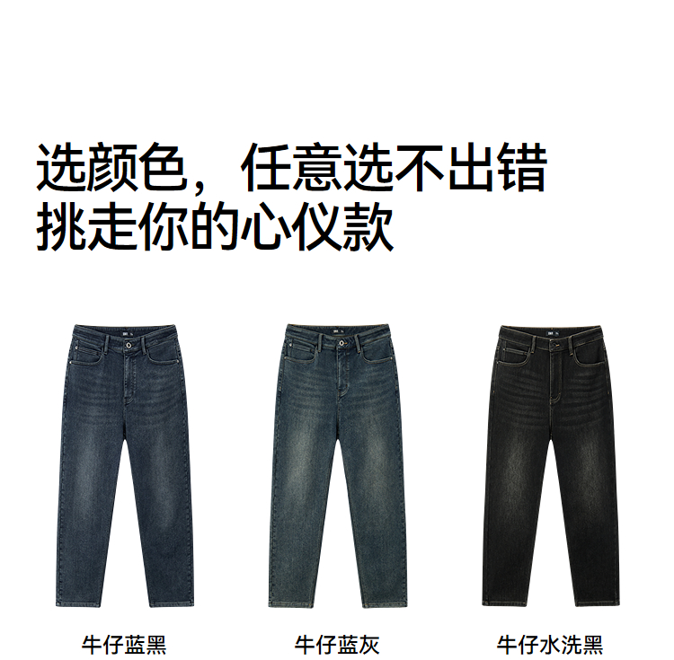 森柔|森马牛仔裤男冬季弹力磨毛锥形裤基础百搭通勤裤子水洗长裤