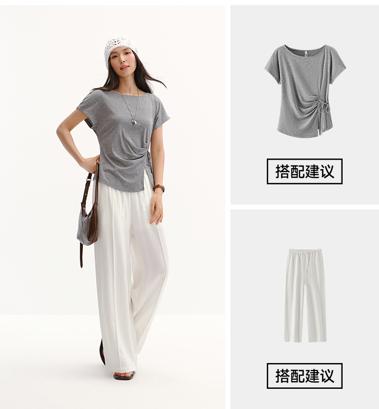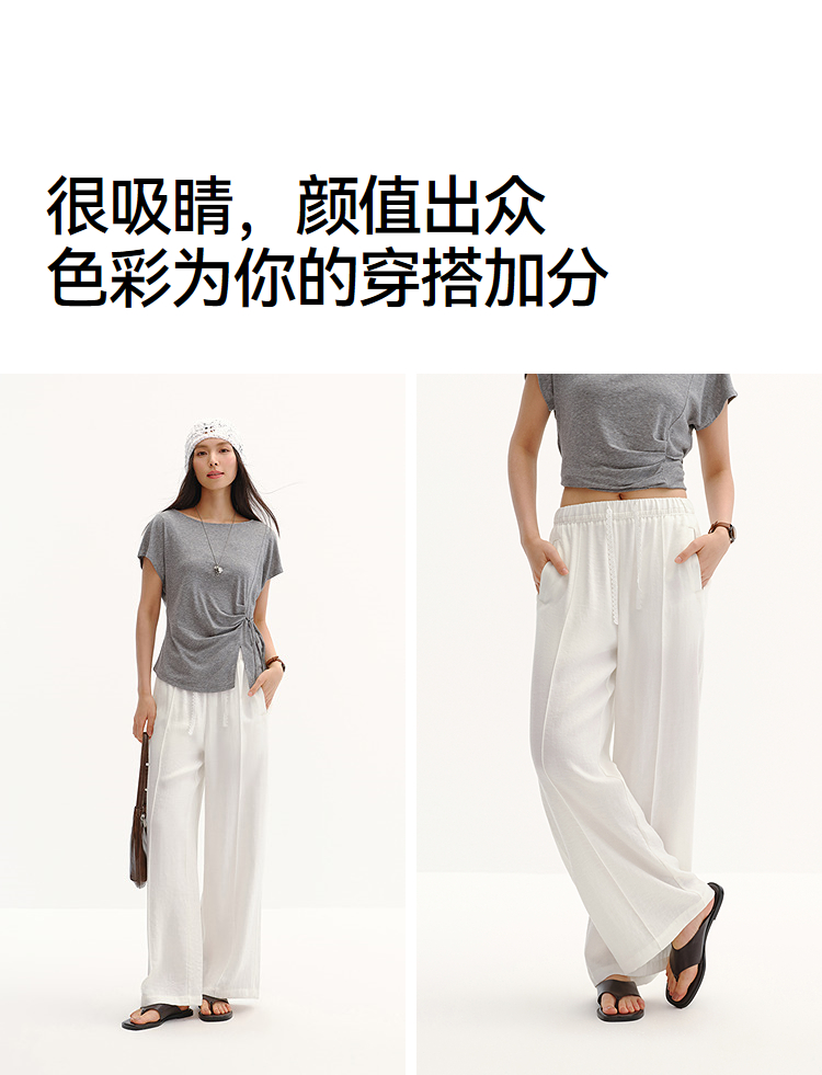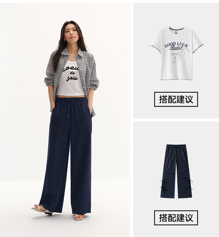 商场同款|森马休闲裤女夏季中缝阔腿裤2026新款简约风百搭拖地裤