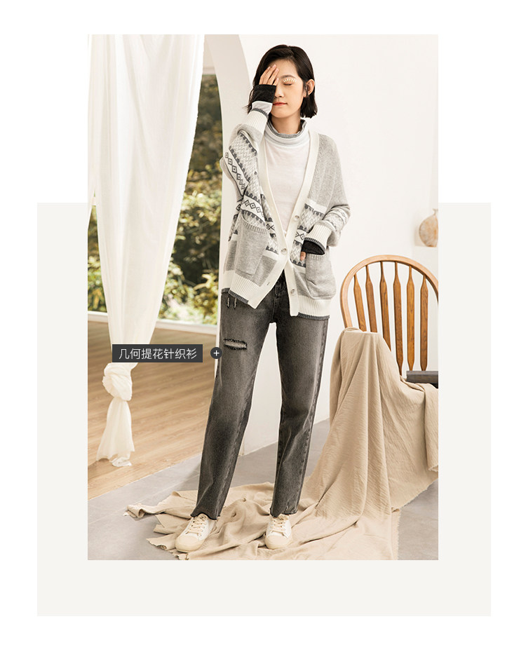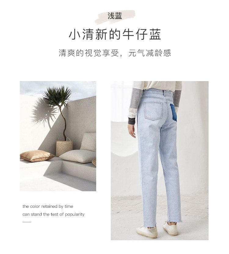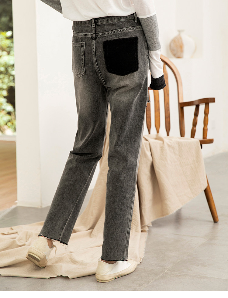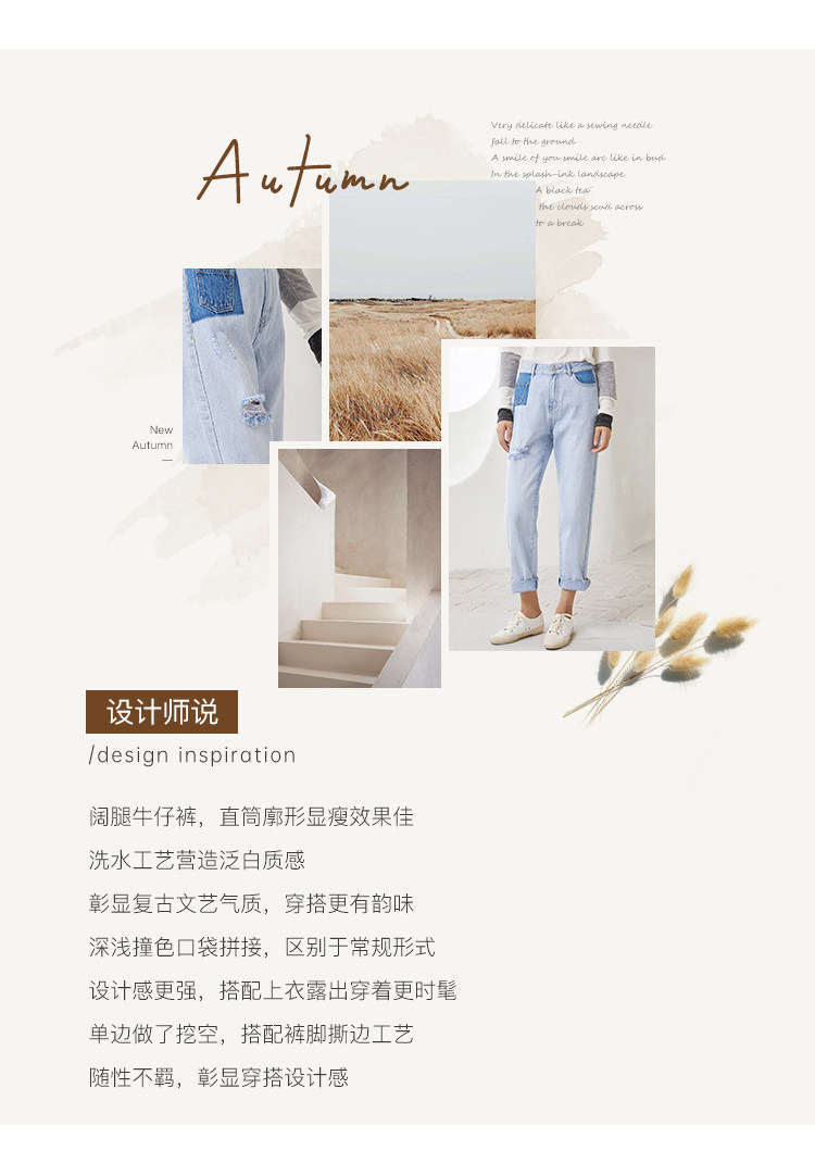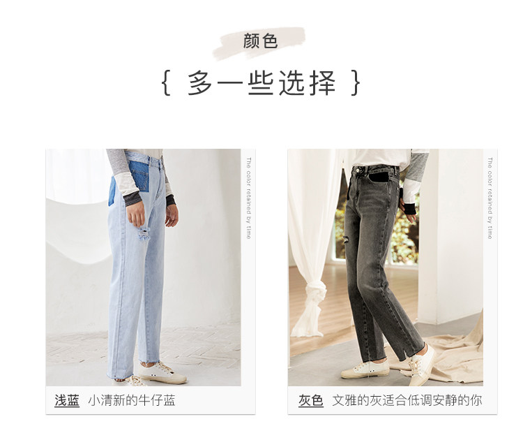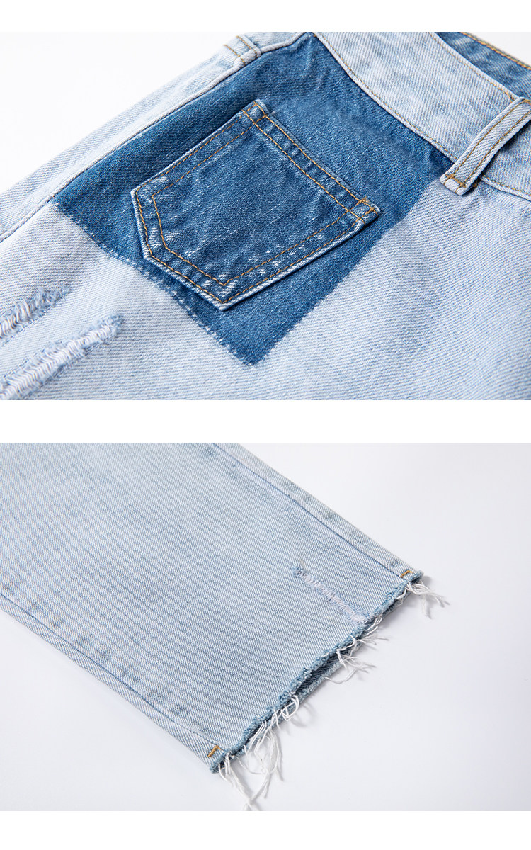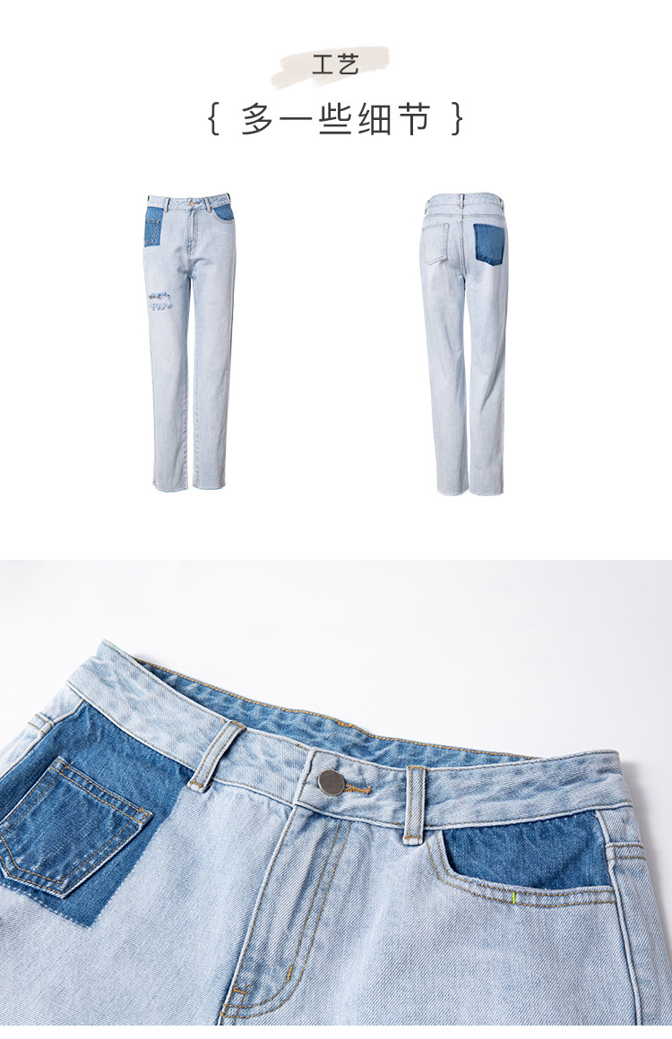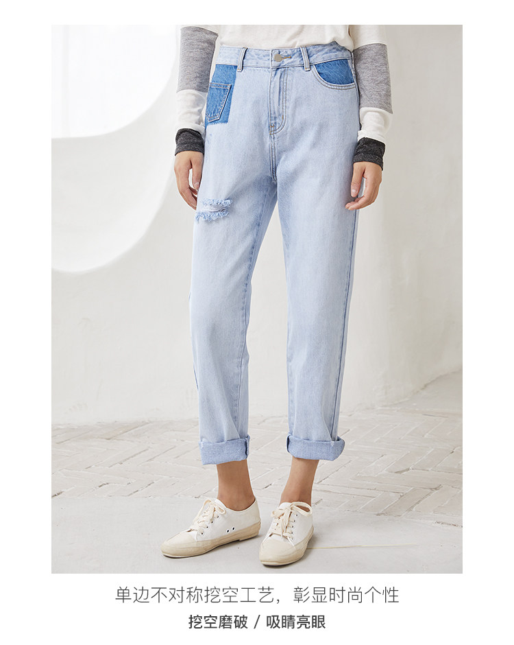 Famecoco范可儿直筒牛仔裤女破洞毛边设计感F205GA021