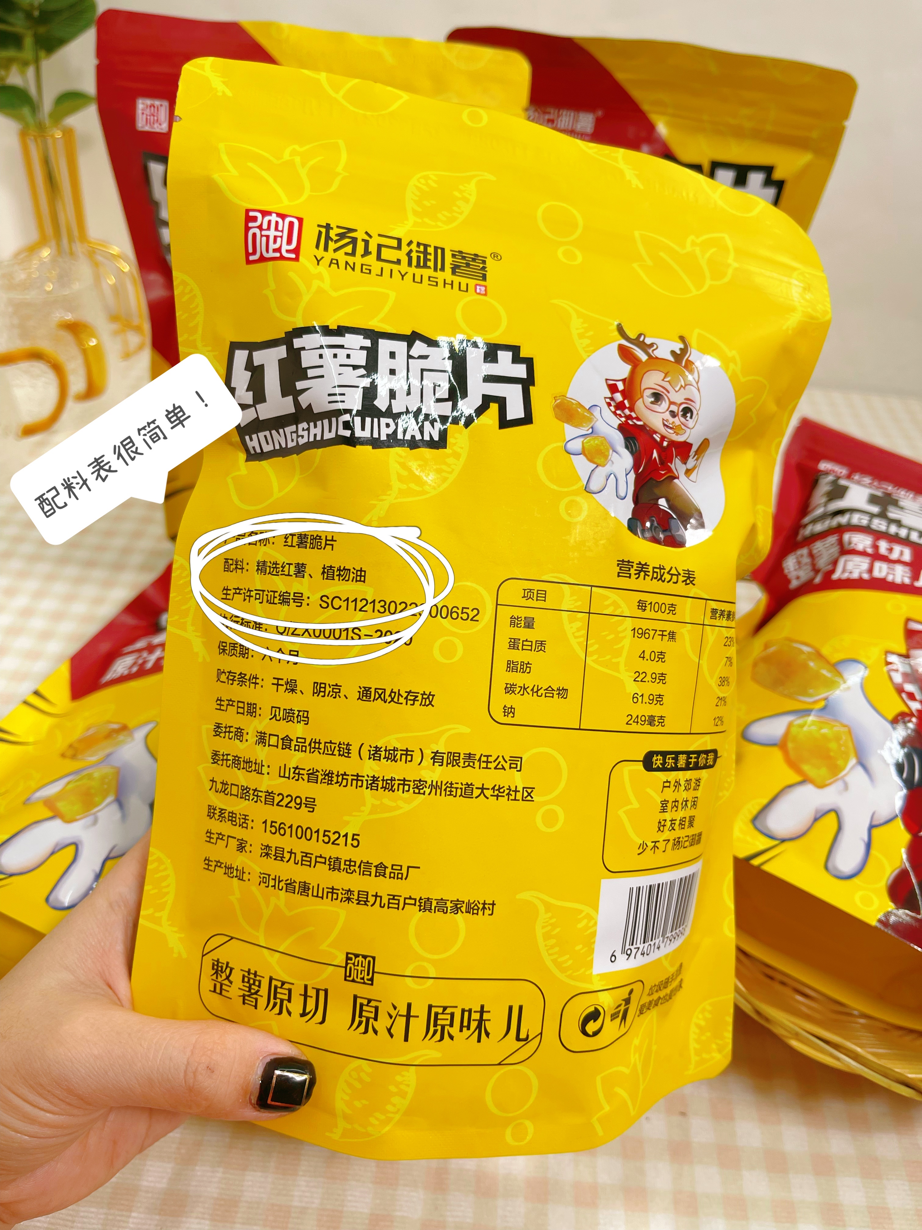 我们的红薯脆片原料选自河北唐山,甄选优质种植基地,纯沙地、280度环山、早晚温差大、光照时长、优质山泉水灌溉;烟薯苗选用烟台农科院授权的原种苗来种植。好山好水出好红薯,甜度好果型好,所以才能做出优质品质的红薯脆片。