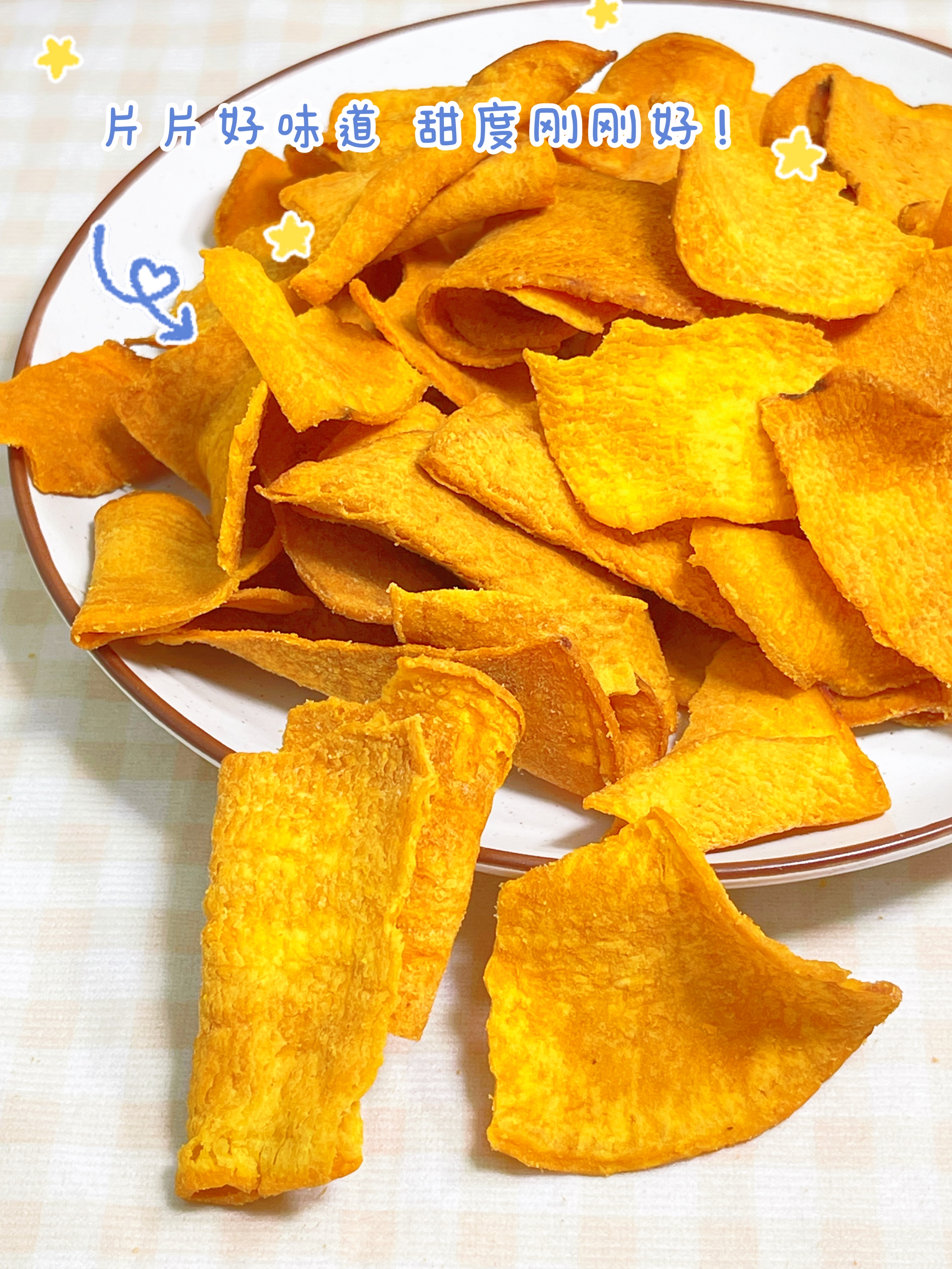 优中选优,从细节做好把控,人工挑选最适合制作红薯脆片的烟薯,100%烟薯原果切片制作,不掺杂其他品种。保证口感统一,香酥可口。健康的红薯脆片,当然要选择健康的制作工艺,刷油烘烤挂油少,既保证了酥脆的口感,又能做到久吃不腻,回味无穷~每包160g规格,自带封口链,一包妥妥的解馋还能再回味一番。