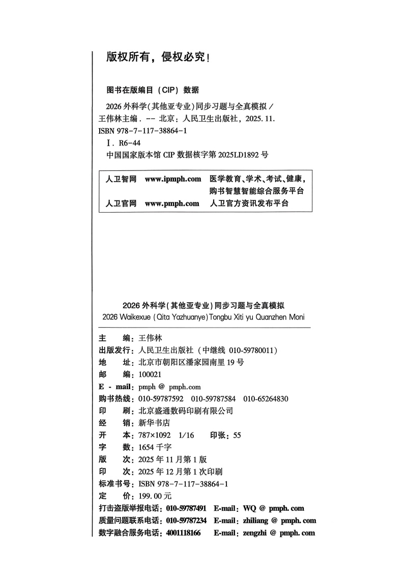 书名:2026外科学(其他亚专业)同步习题与全真模拟