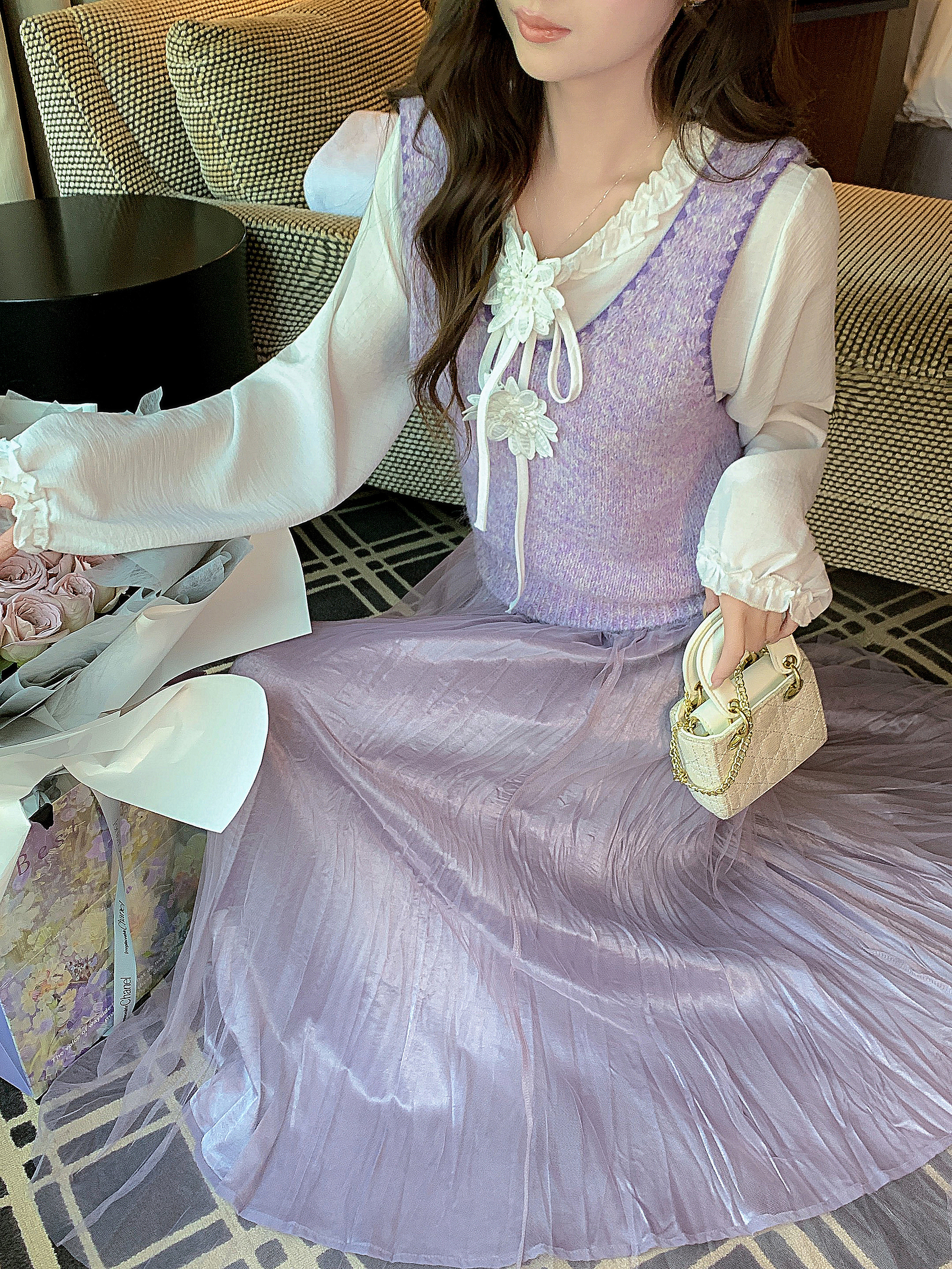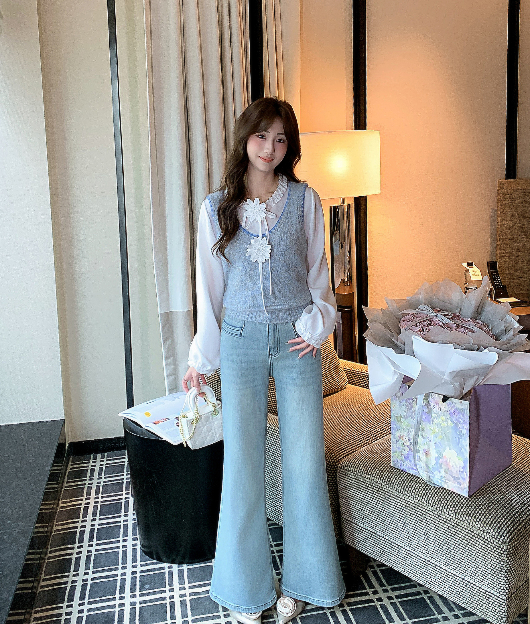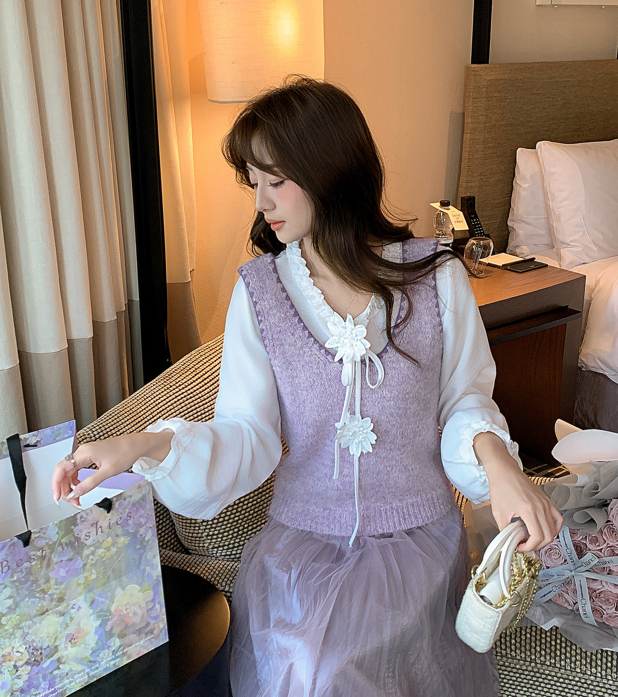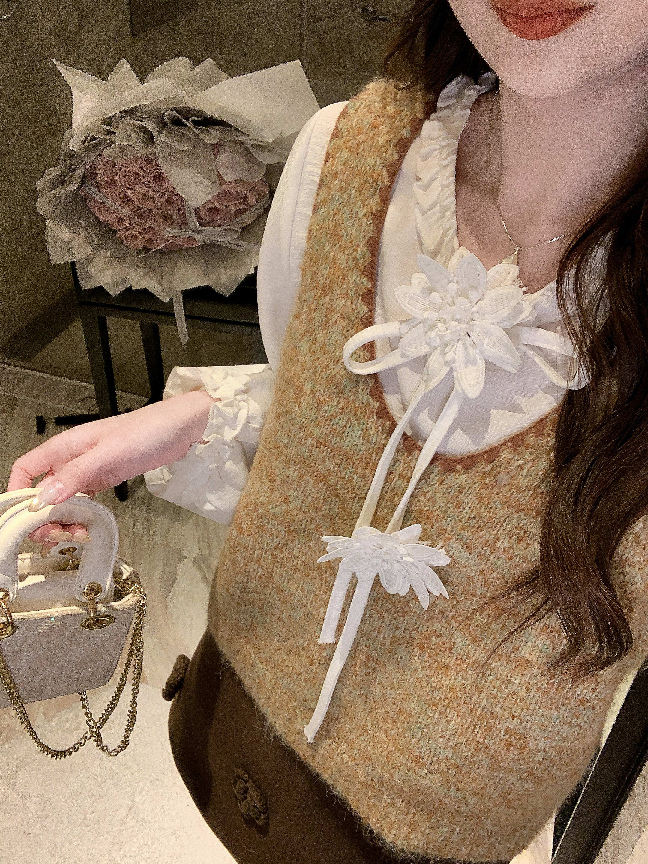 张心子【叠穿美学】复古撞色针织马甲背心女春季新款无袖坎肩上衣 U2602049