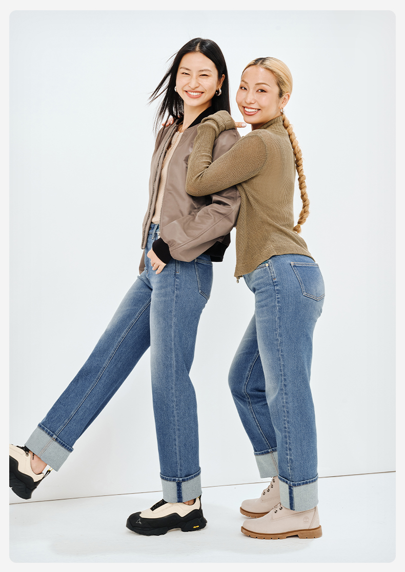 【宽松蛋卷裤】simplepieces秋新款SPS牛仔裤女九分大翻边直筒裤