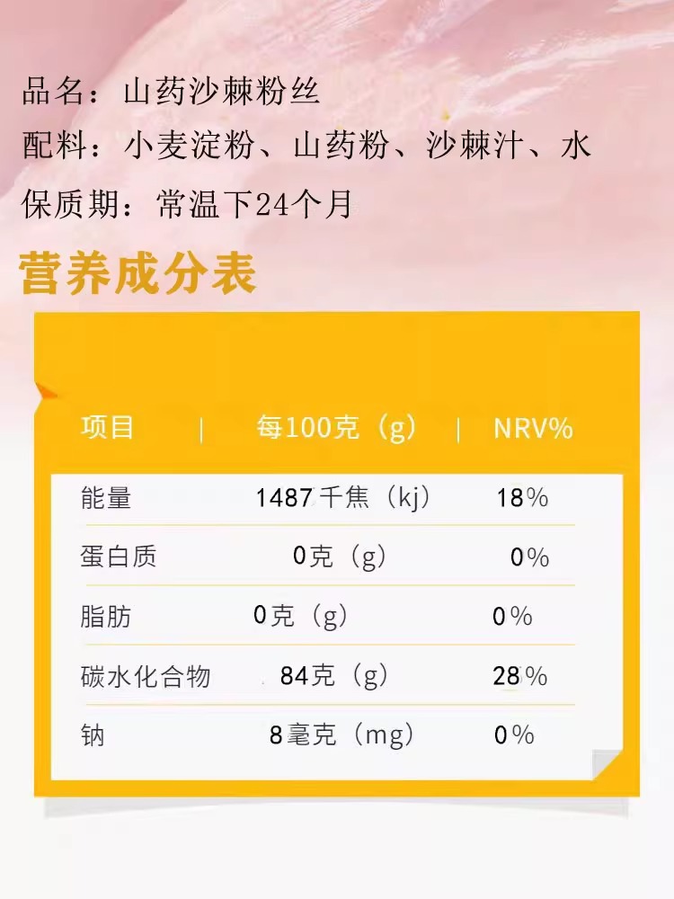 配料:小麦淀粉、山药粉、沙棘汁、生活饮用水