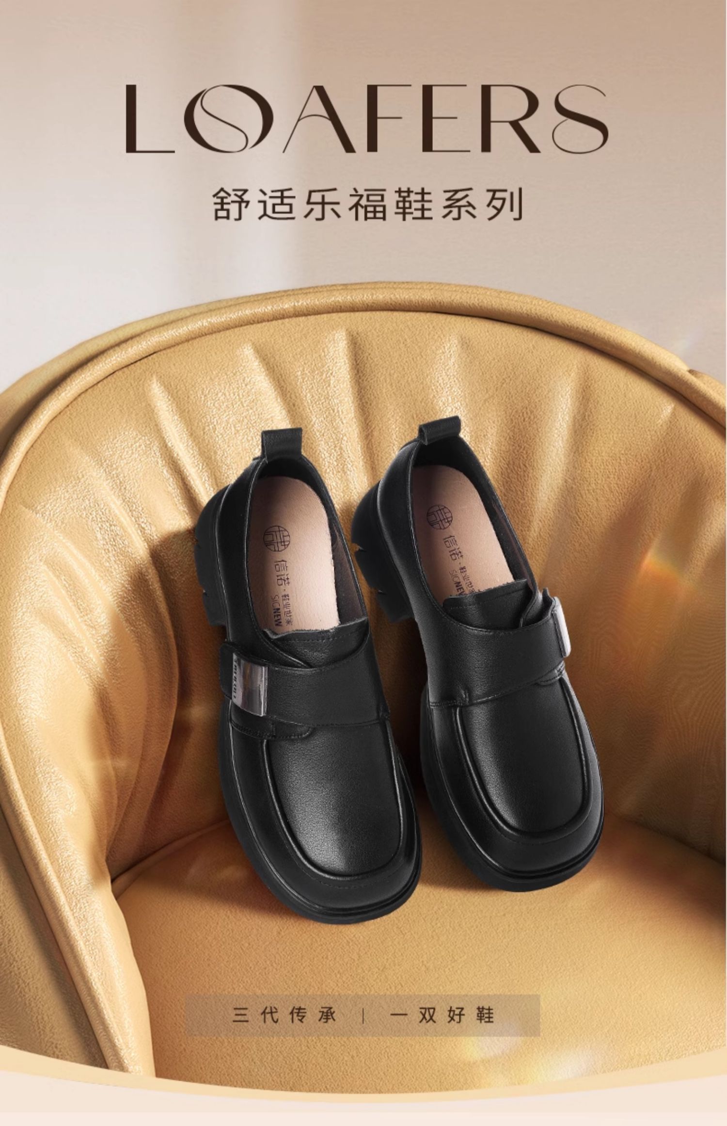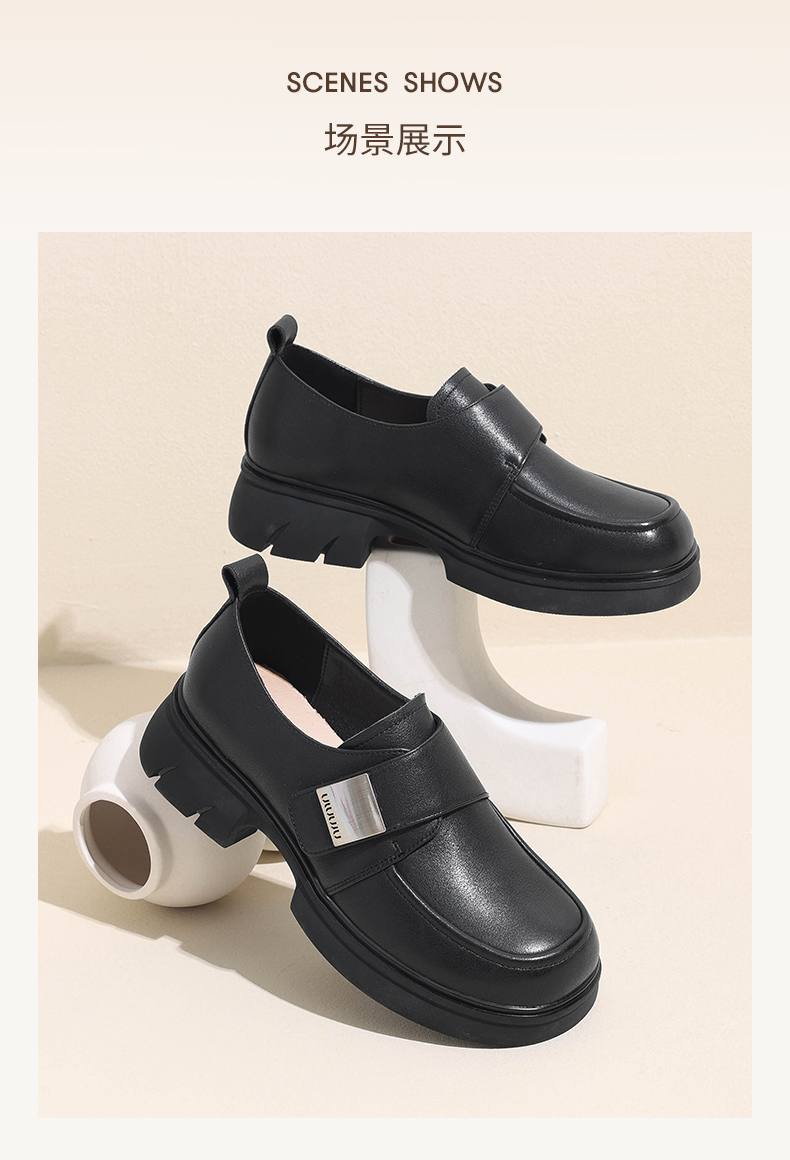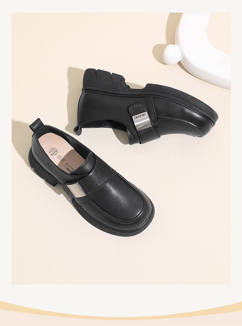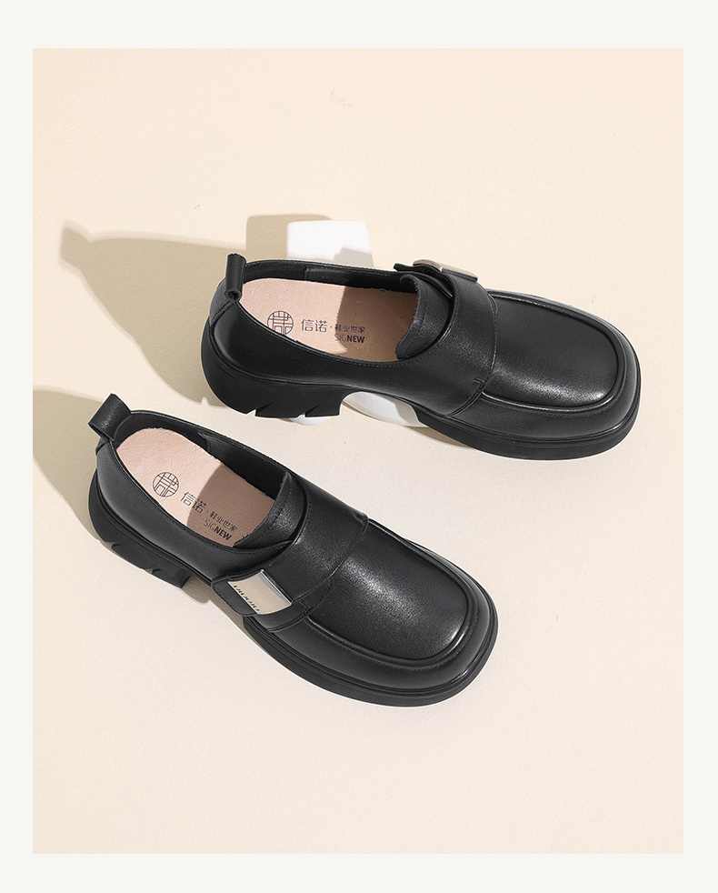 信诺真皮厚底乐福鞋女2024新款秋季百搭休闲魔术贴百搭女士小皮鞋Q1317-2