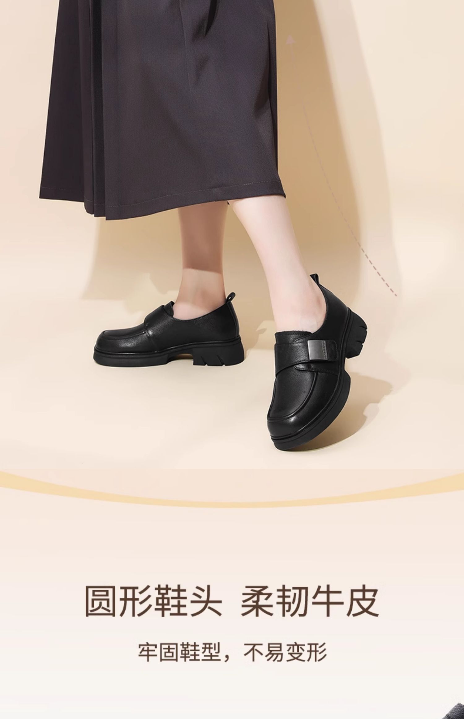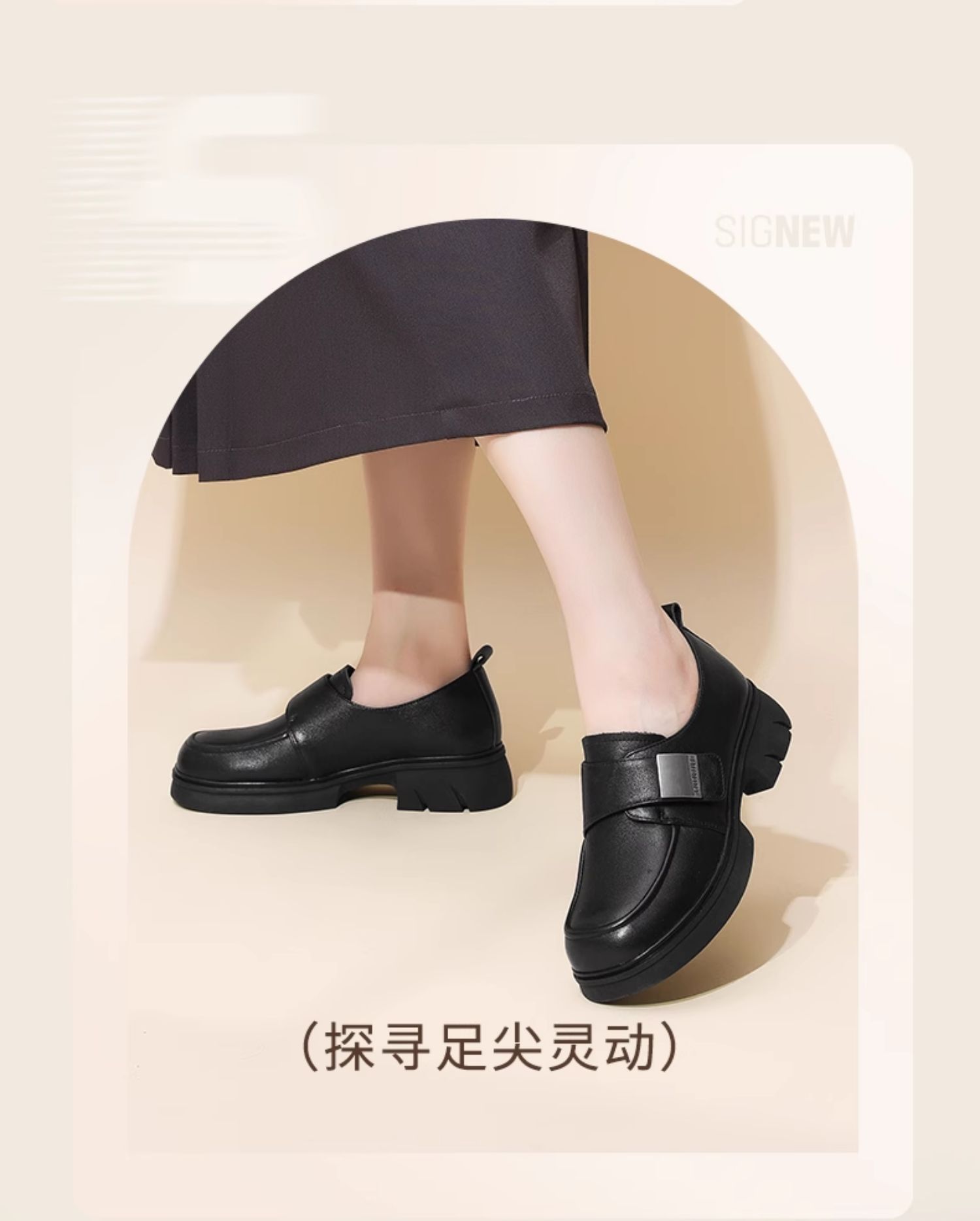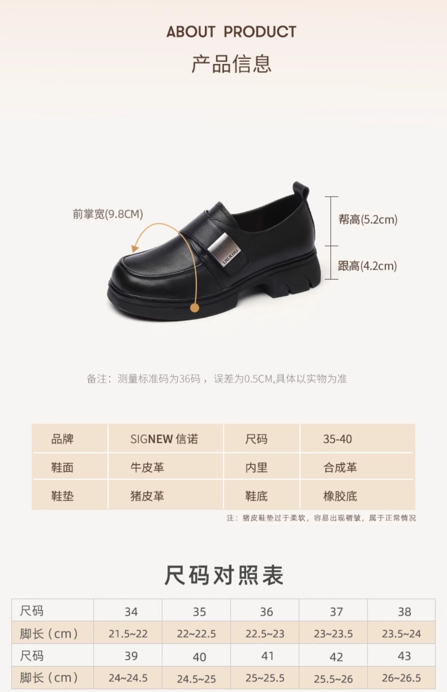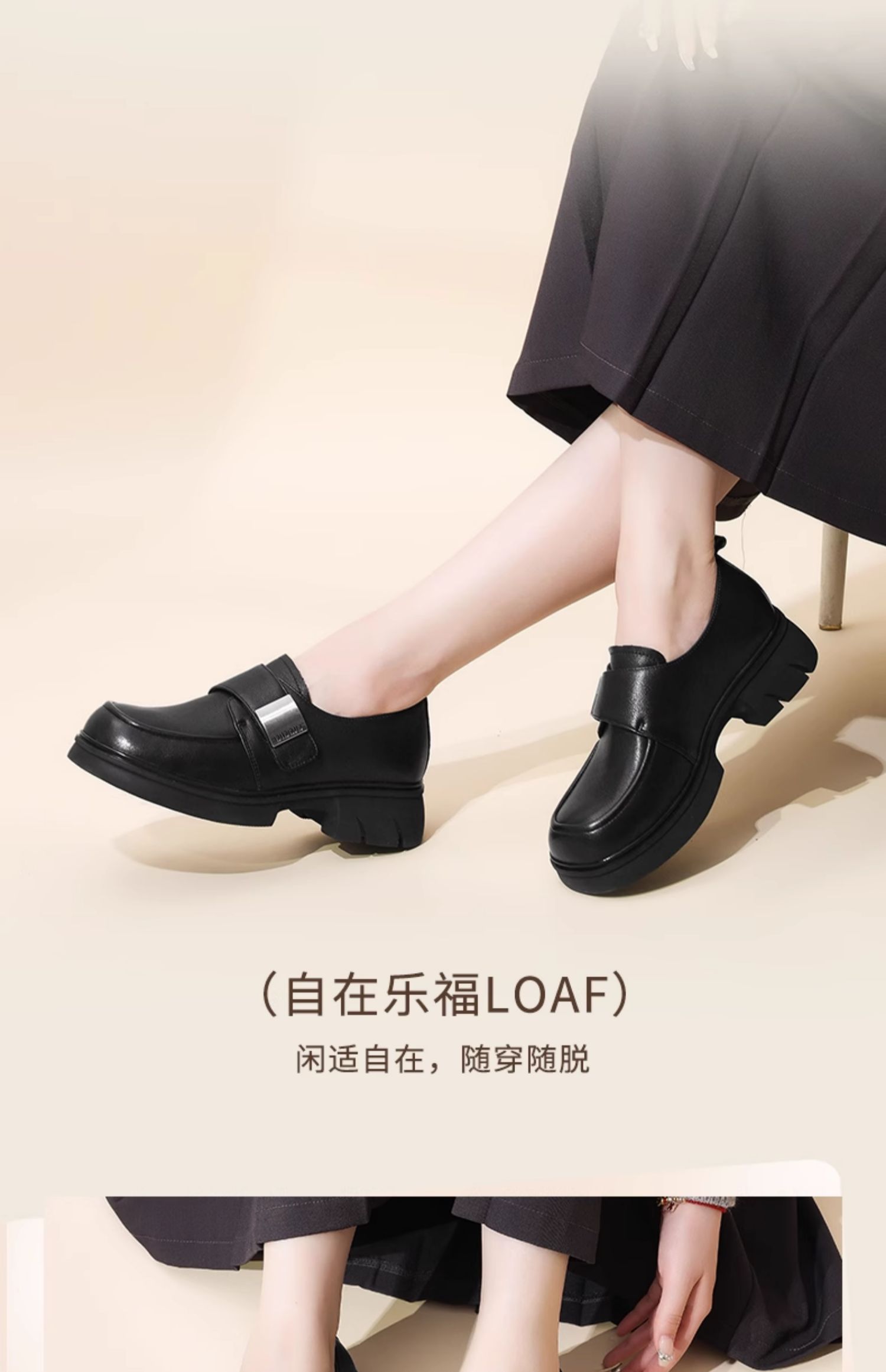 信诺真皮厚底乐福鞋女2024新款秋季百搭休闲魔术贴百搭女士小皮鞋Q1317-2