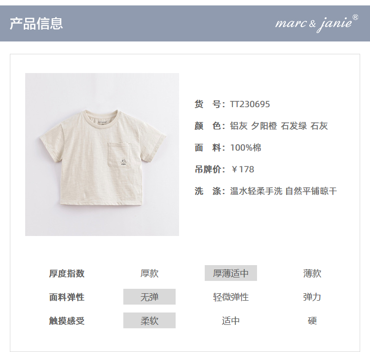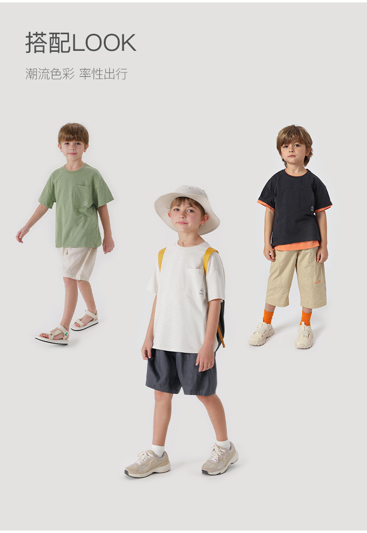 【户外风】马克珍妮夏装新款 男童竹节棉透气短袖T恤230695