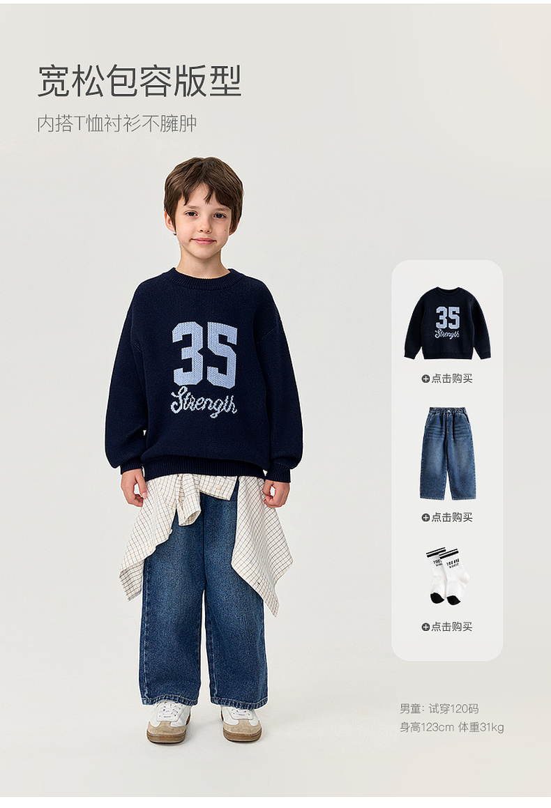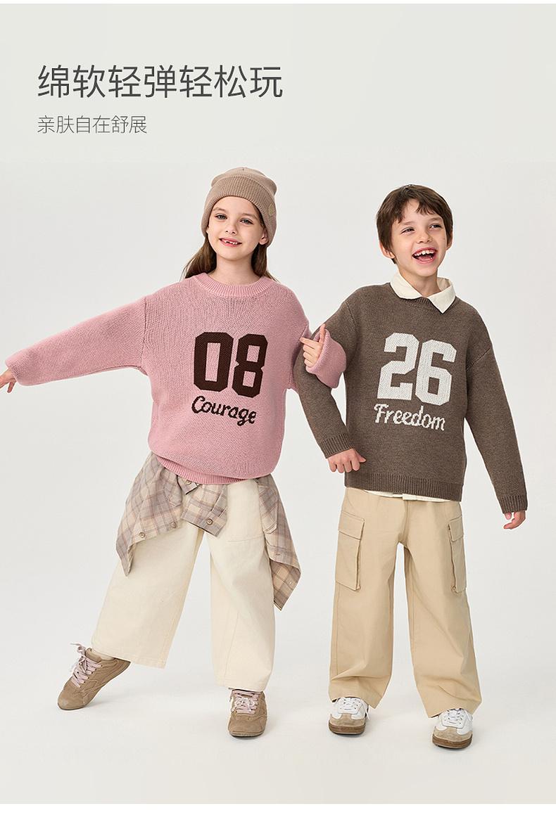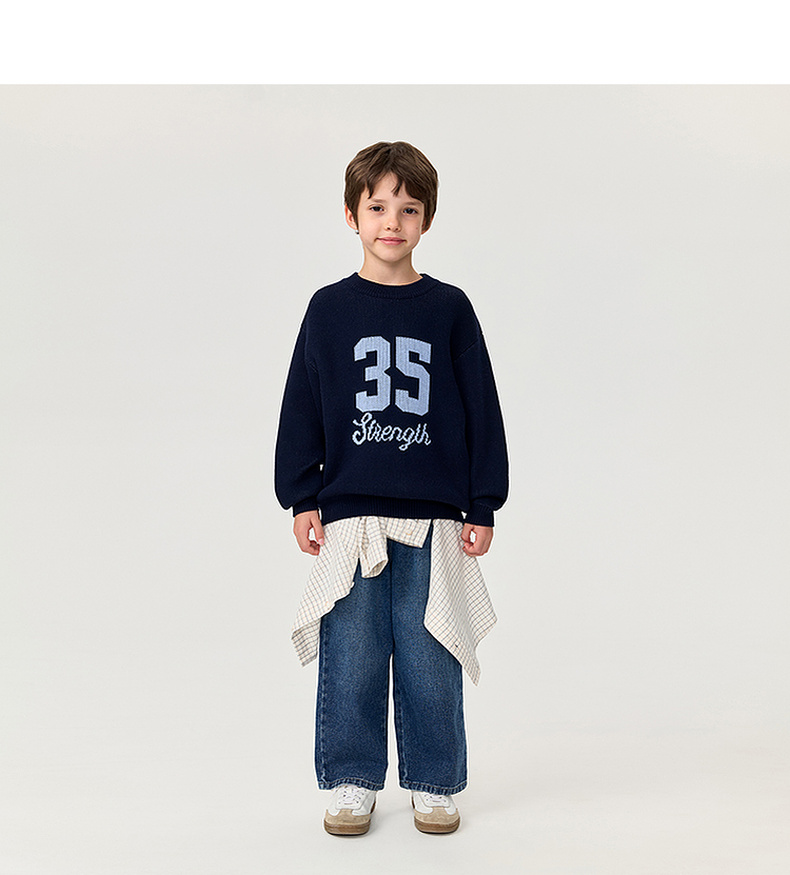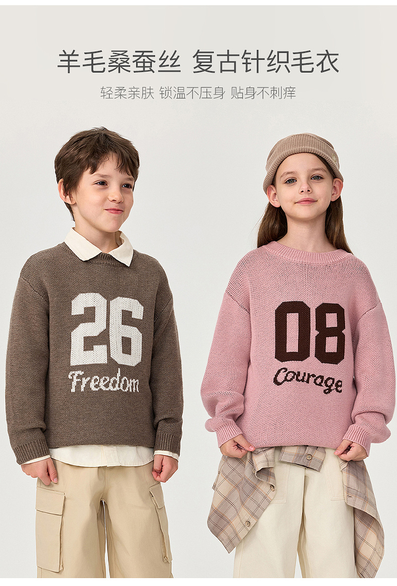 马克珍妮男女童复古学院绵羊毛针织毛衣2025年秋冬新款551813