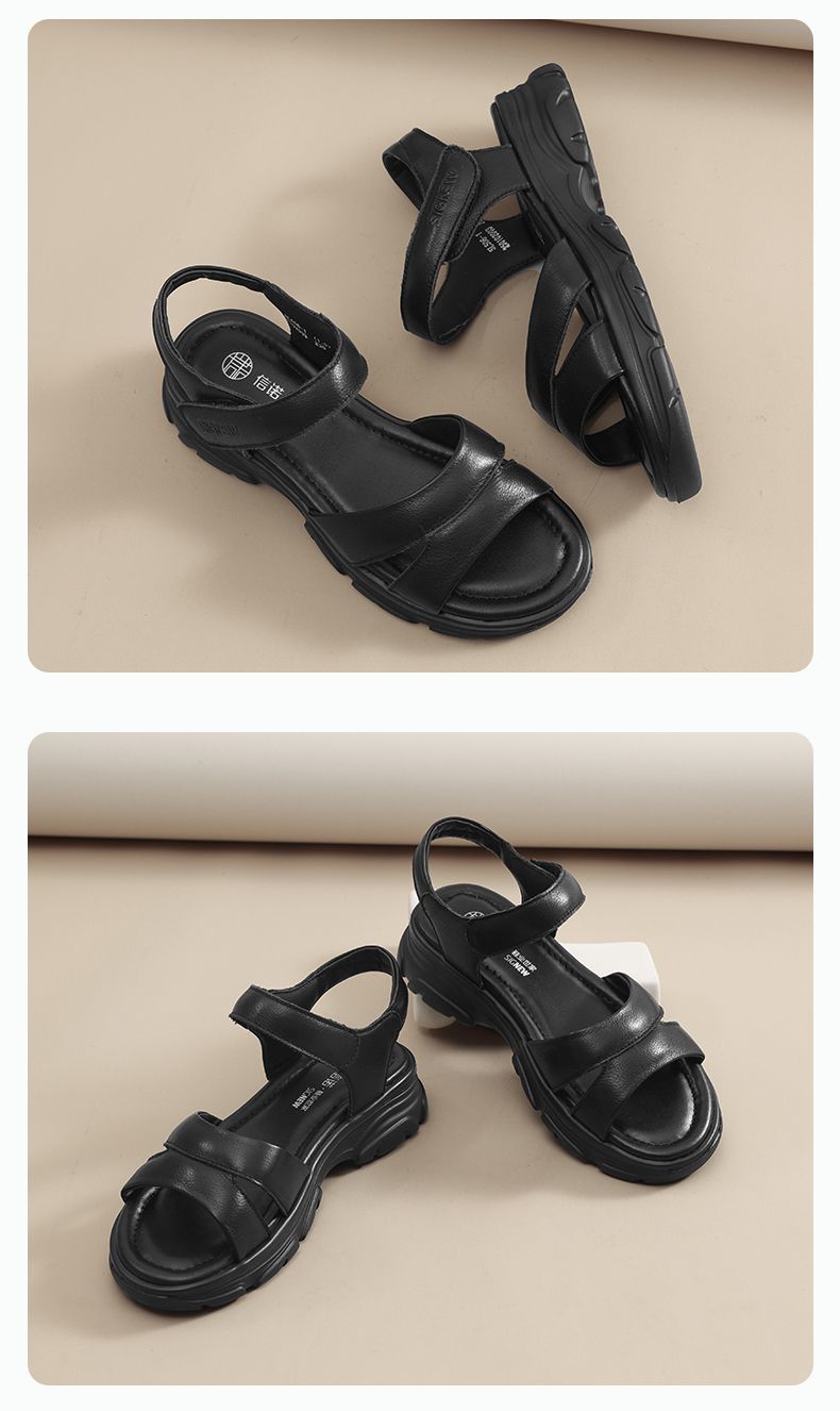 信诺真皮一字带凉鞋女2025新款夏季舒适厚底外穿沙滩鞋中年妈妈鞋5L506-1