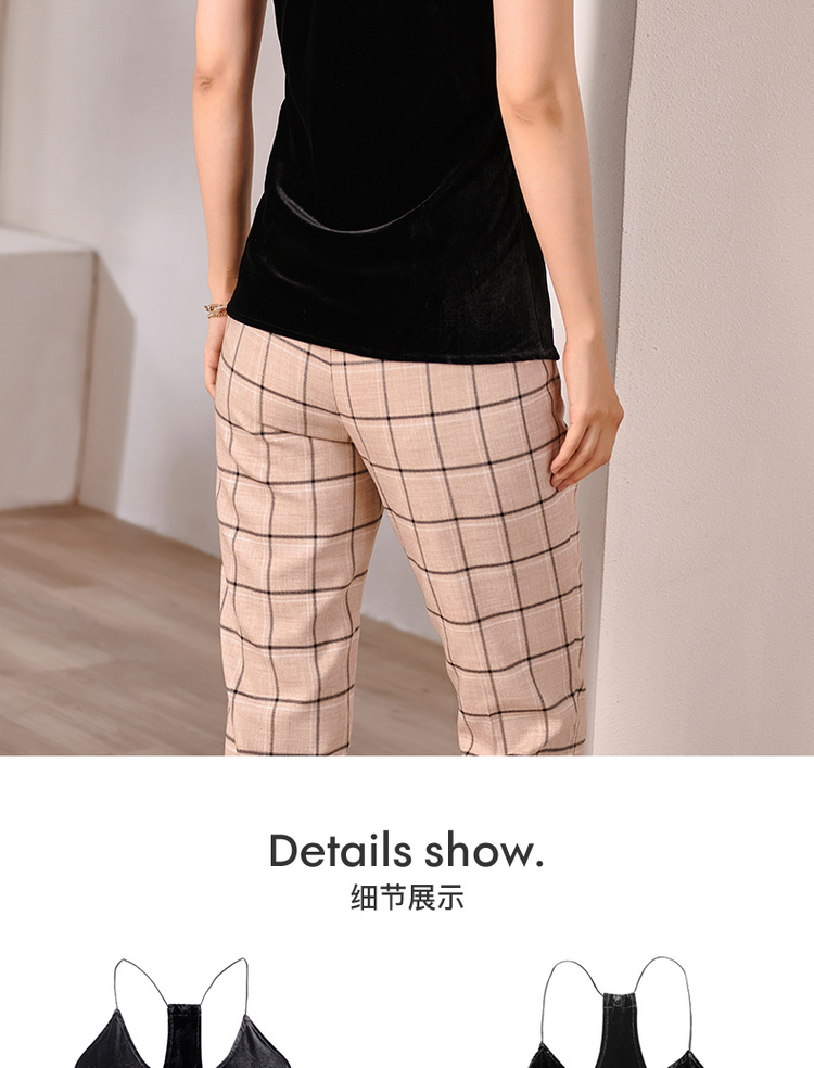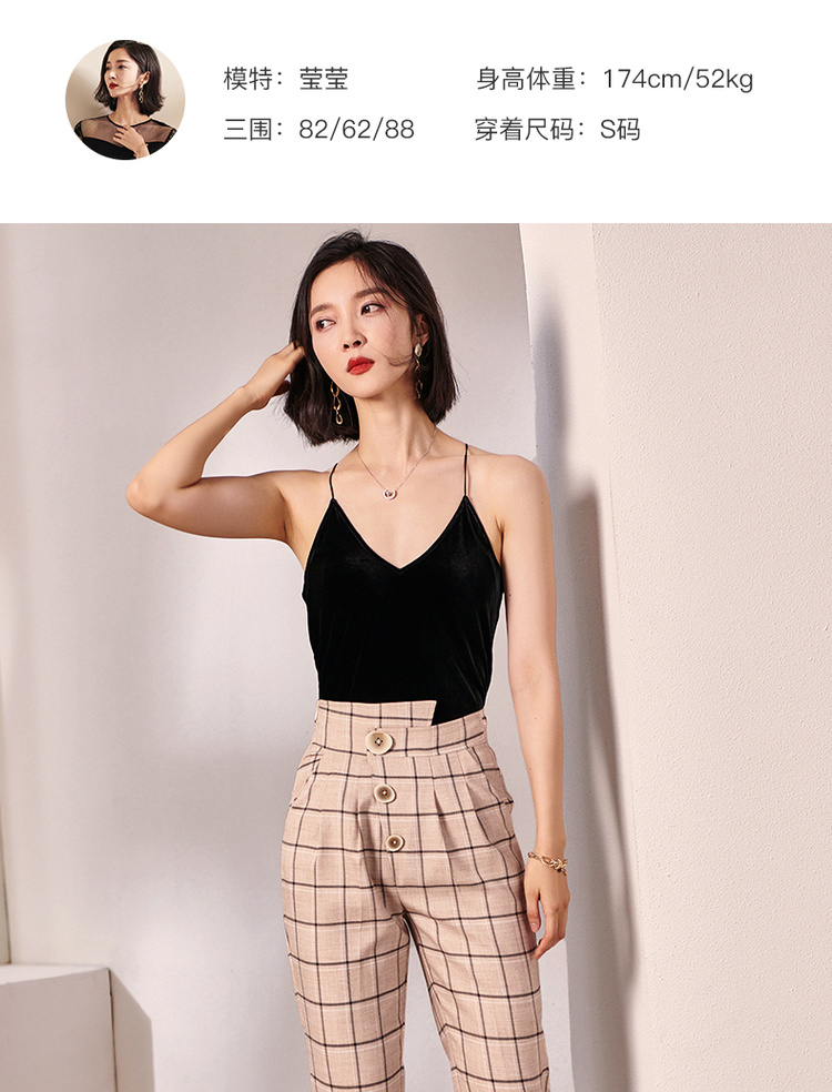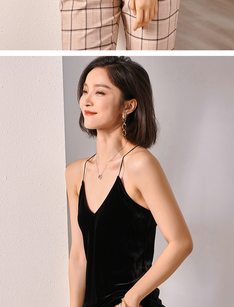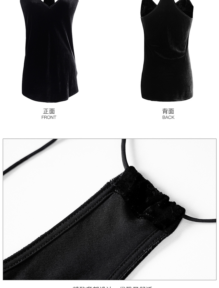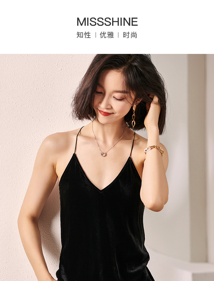 剩S/M 米思阳2024秋装新款小性感V领吊带衫修身内搭无袖丝绒背心女0226