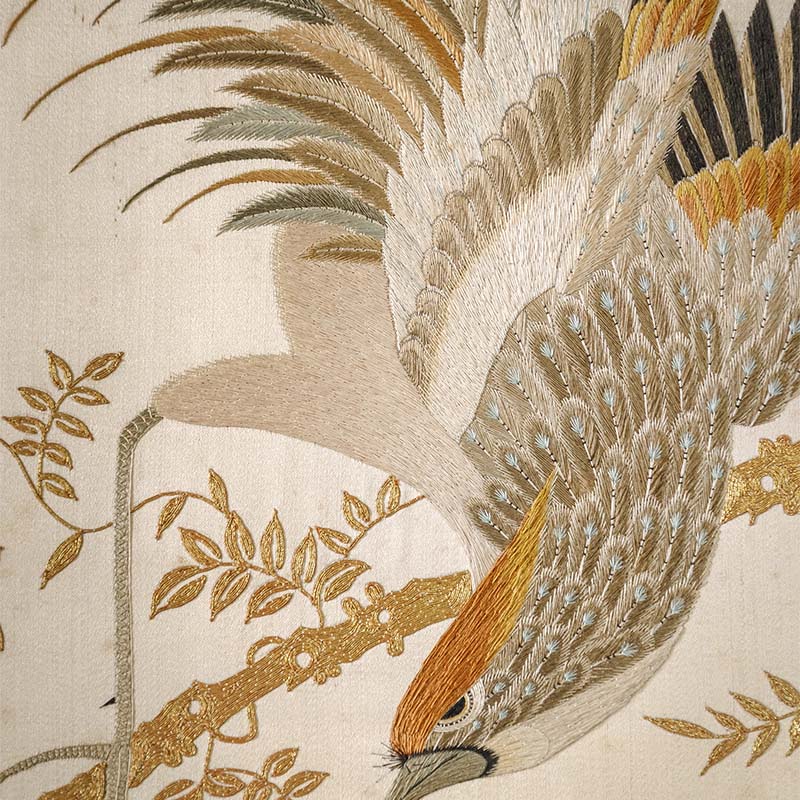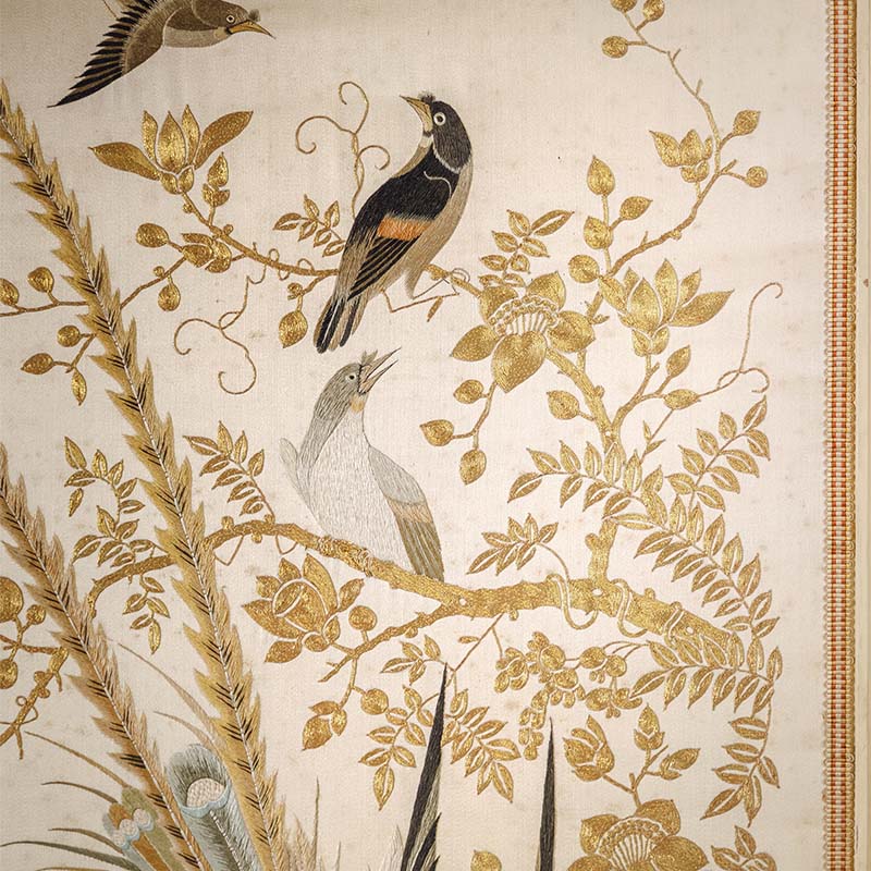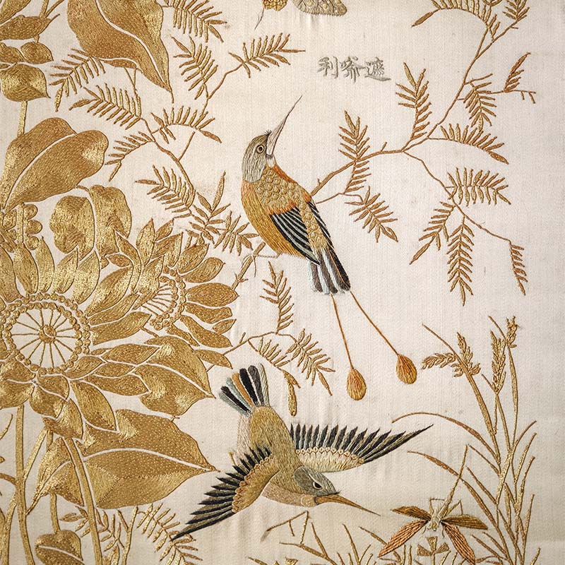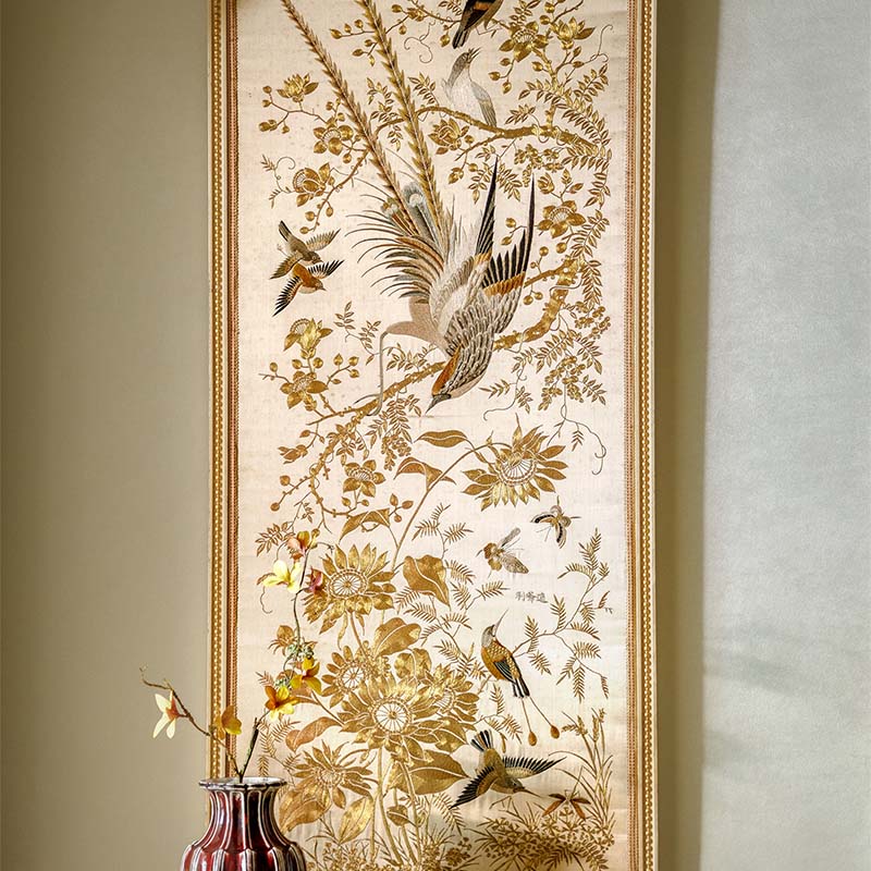 19世纪中国清代出品「锦上添花」传统东方花鸟主题粤绣挂屏
