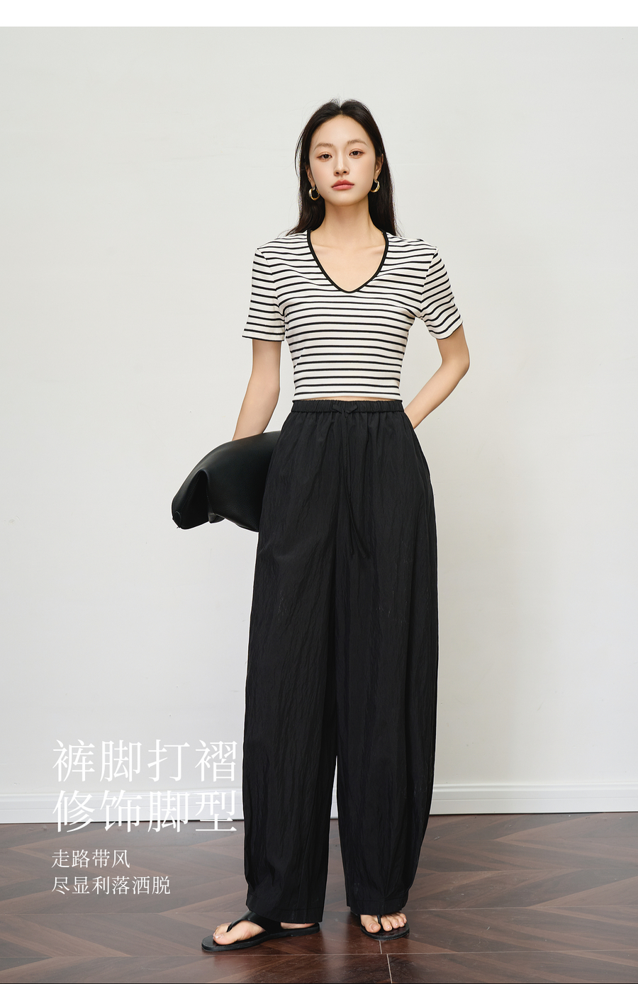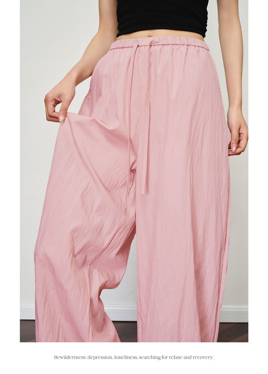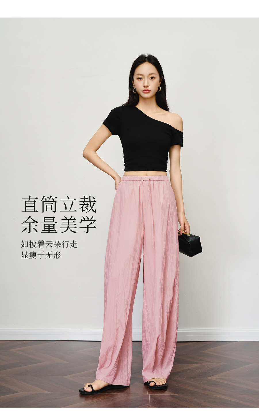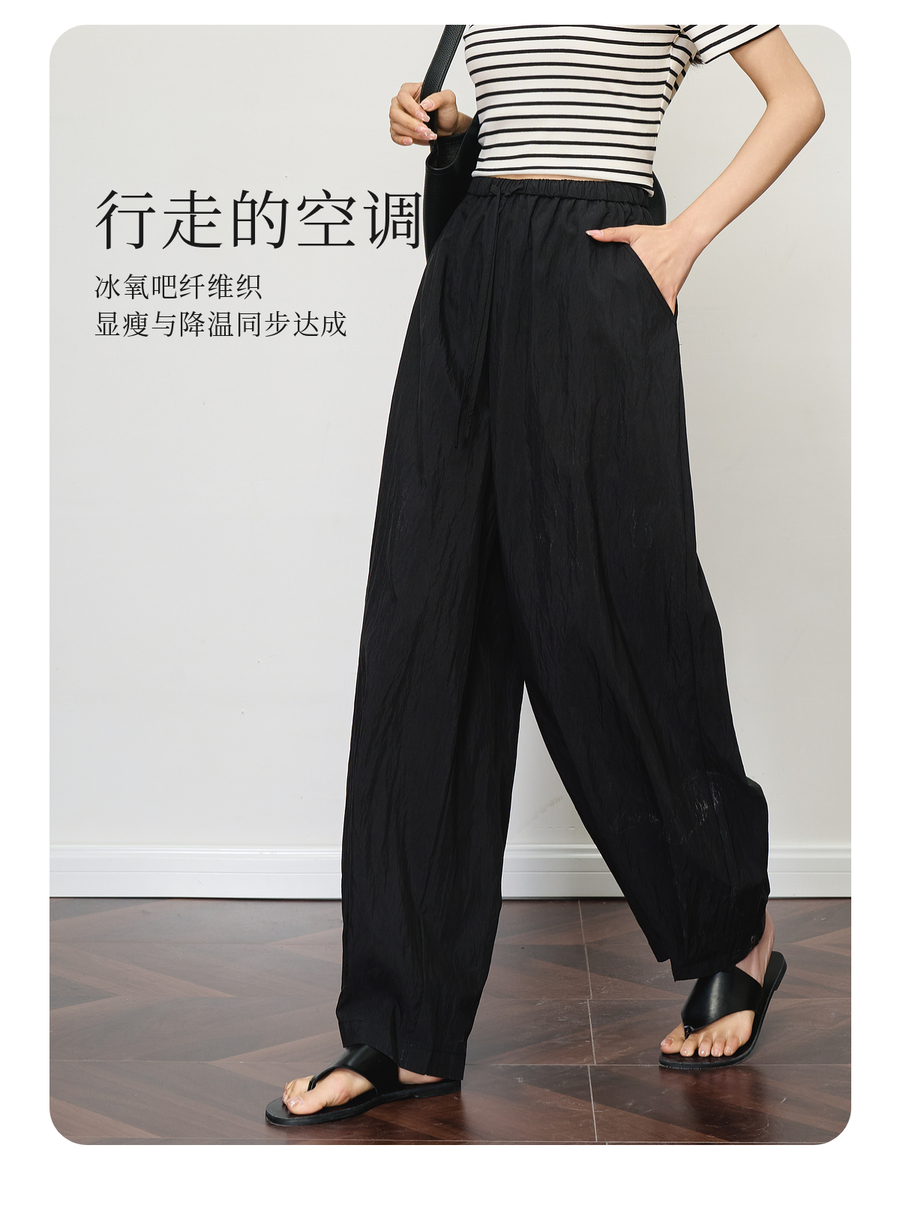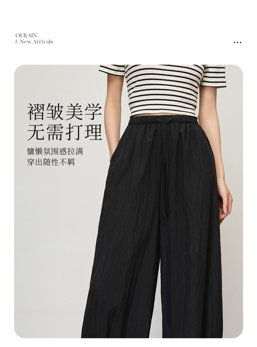 OLrain欧芮儿宽松褶皱慵懒垂性休闲长裤女夏季2025年新款松弛裤子