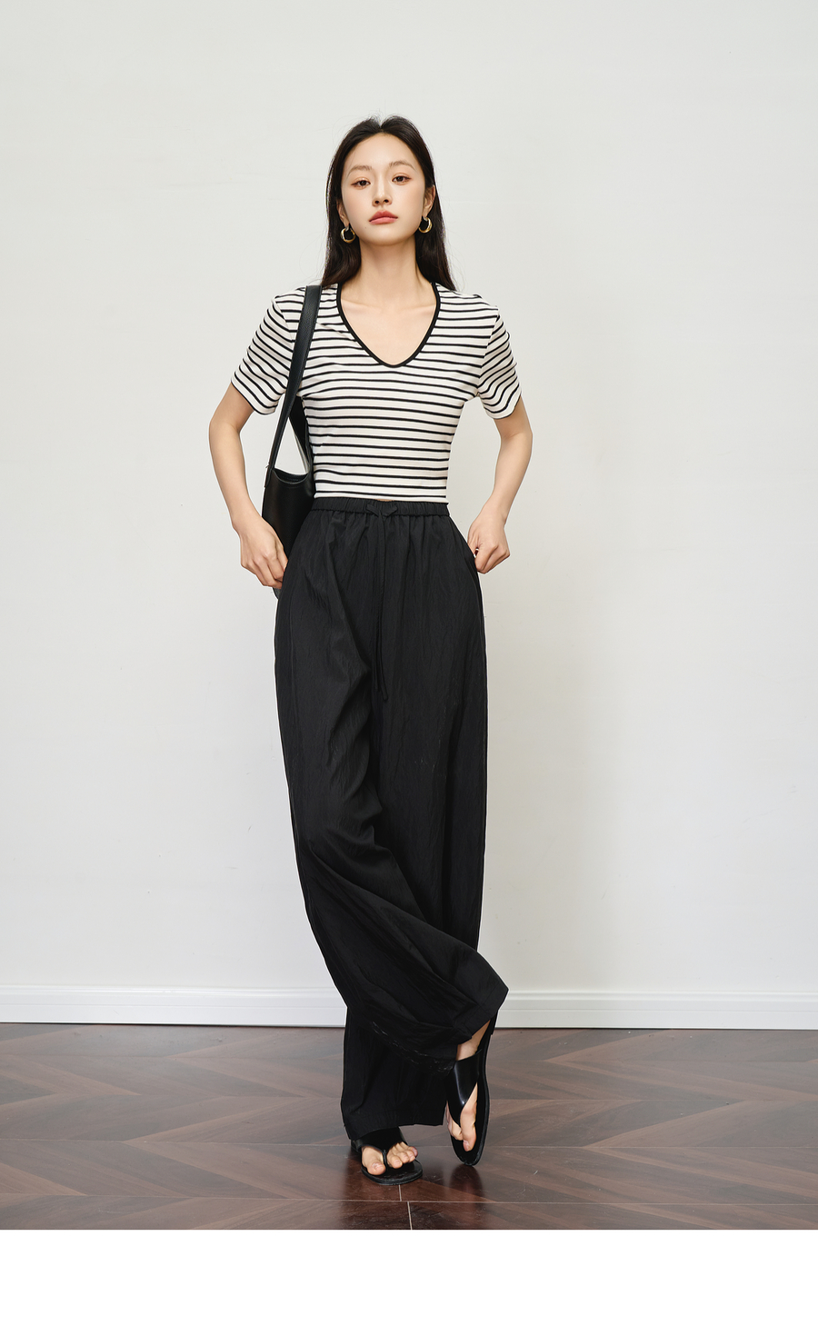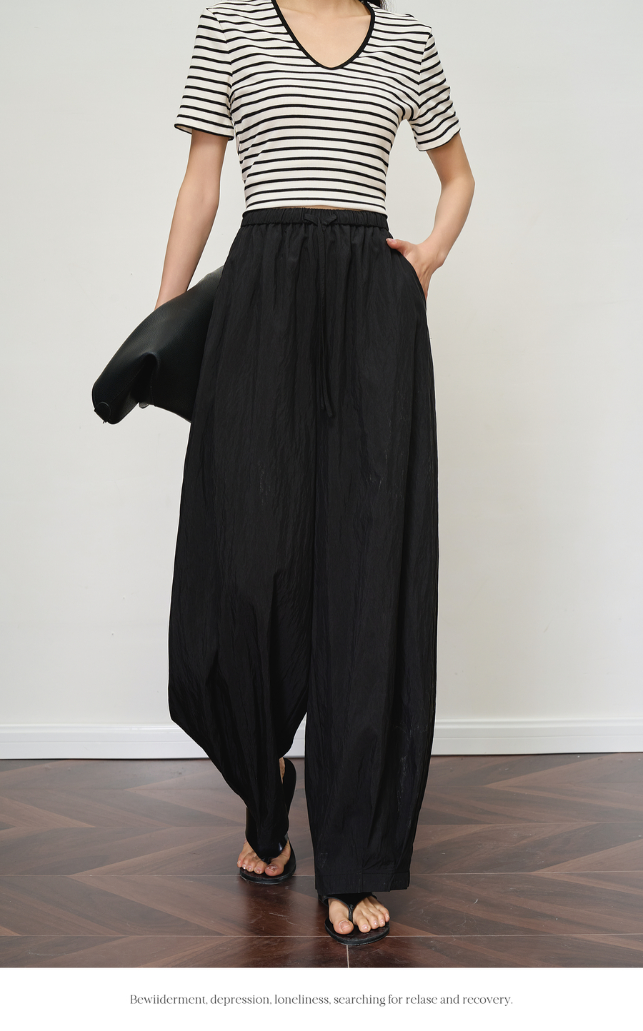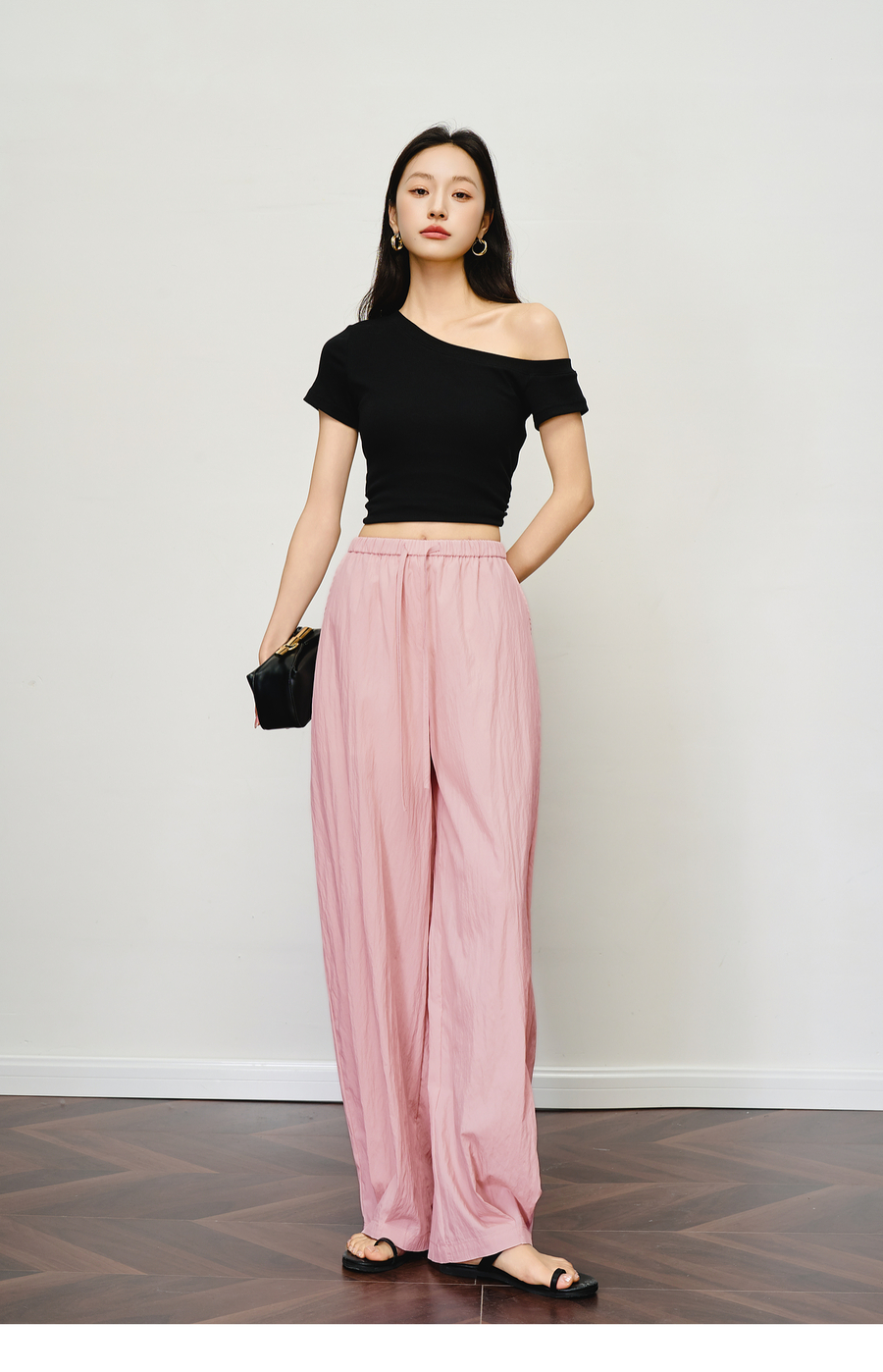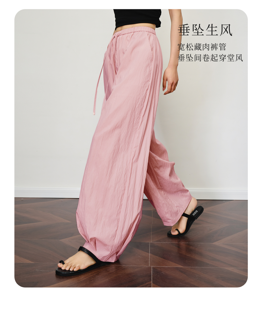 OLrain欧芮儿宽松褶皱慵懒垂性休闲长裤女夏季2025年新款松弛裤子