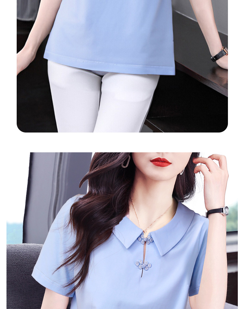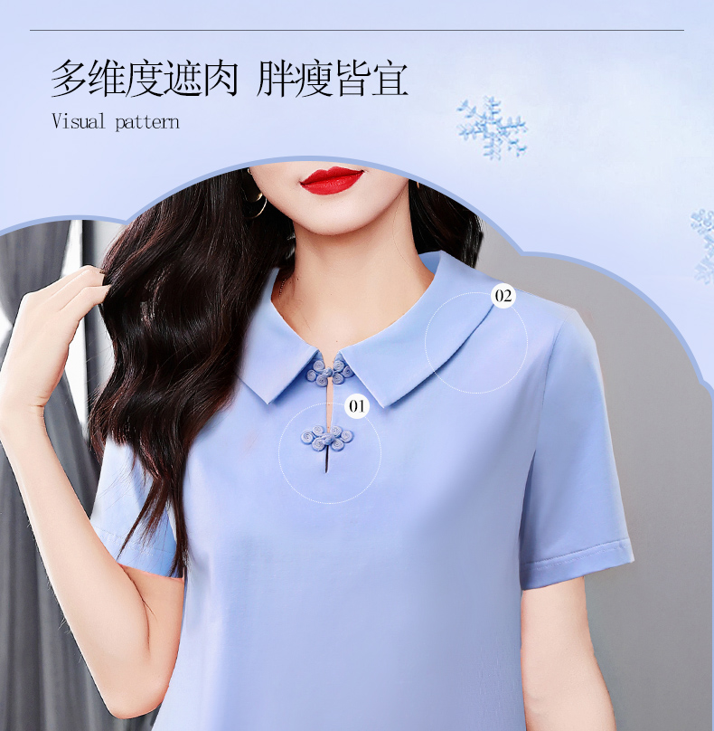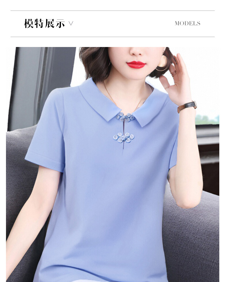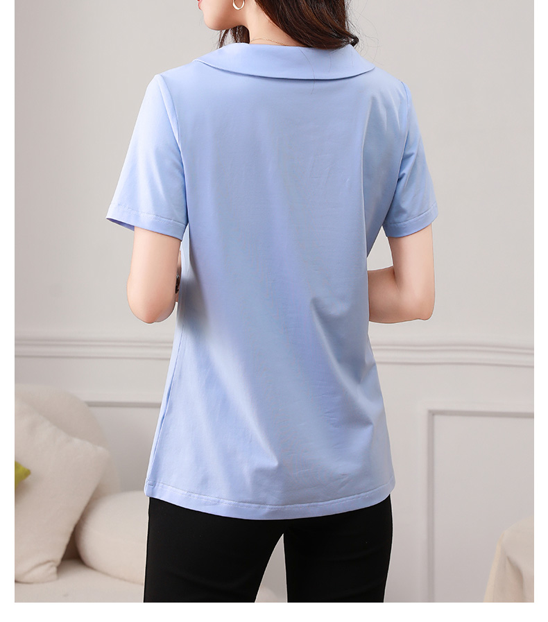 纯棉短袖女t恤2025夏季新款宽松大码女装妈妈半袖女士娃娃领上衣