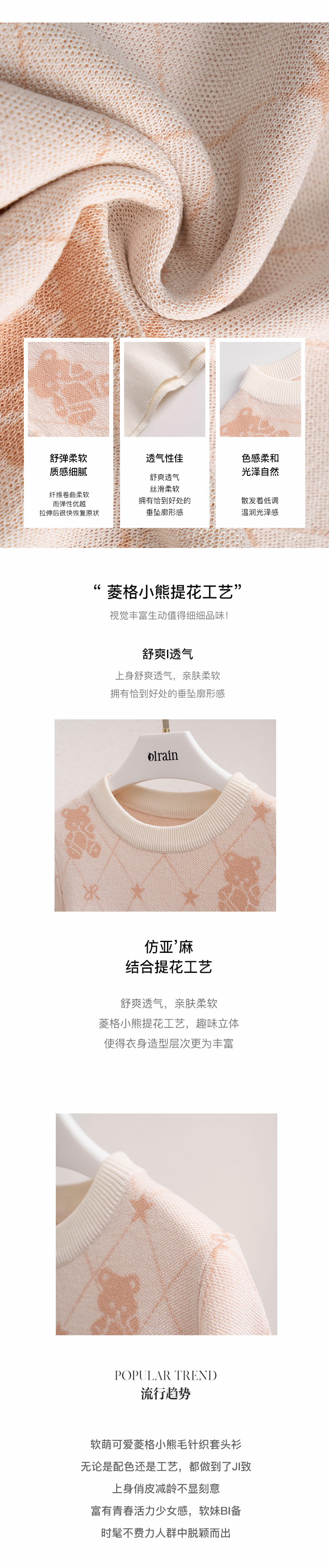 OLrain欧芮儿法式套头毛衣女冬季2024年新款粉色磨毛慵懒风针织衫