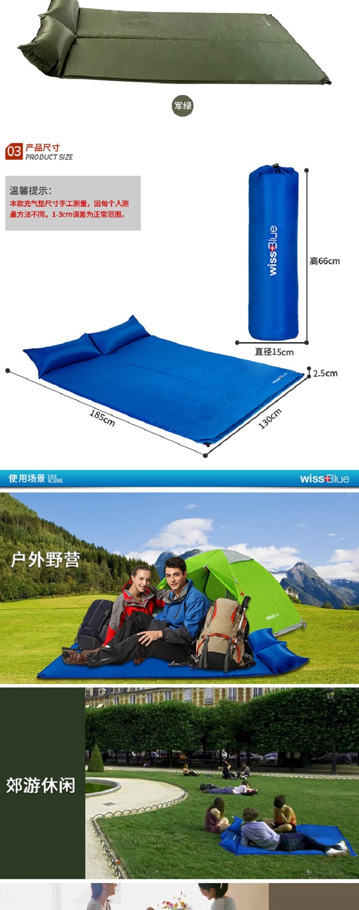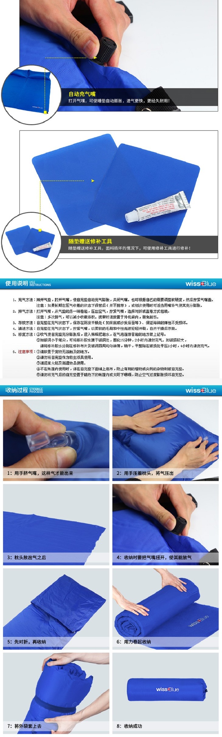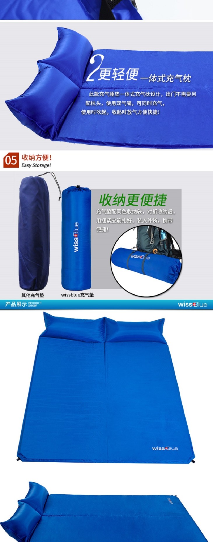 维仕蓝 WISSBLUE 可折叠自动充气垫弹性强 WA8040