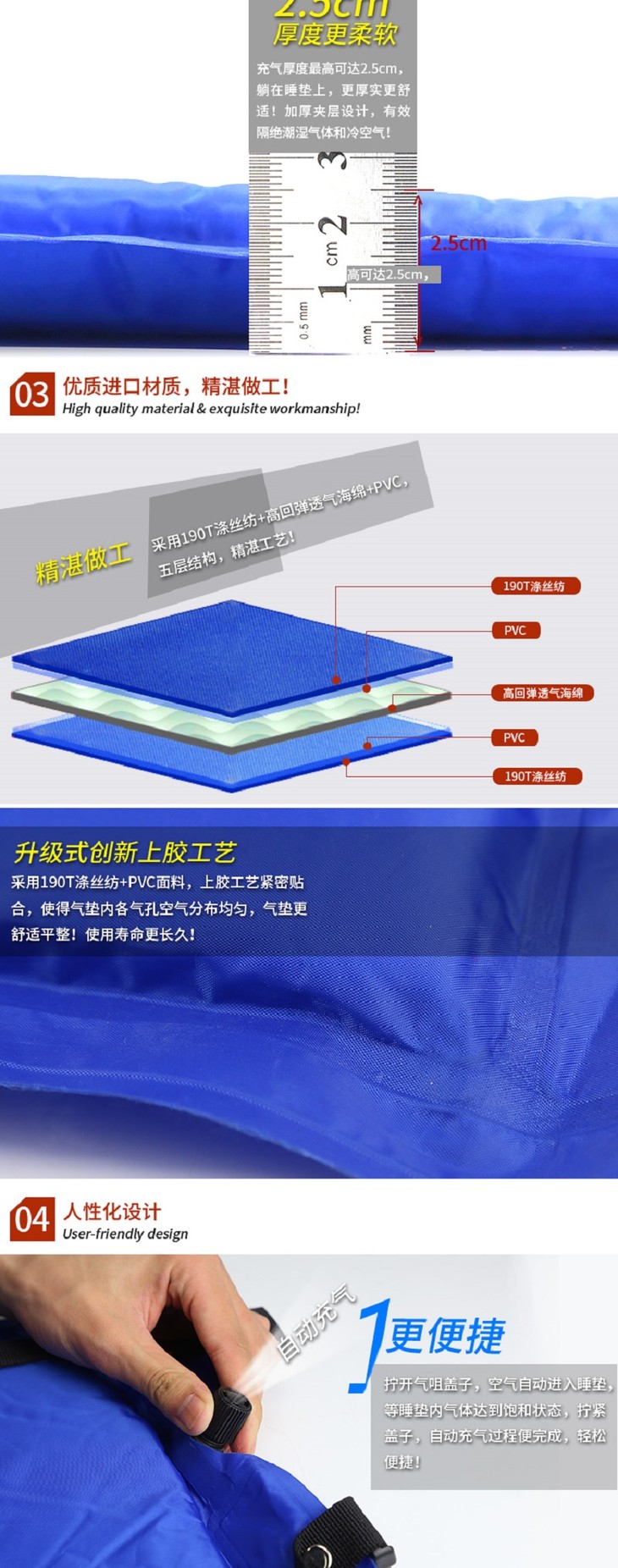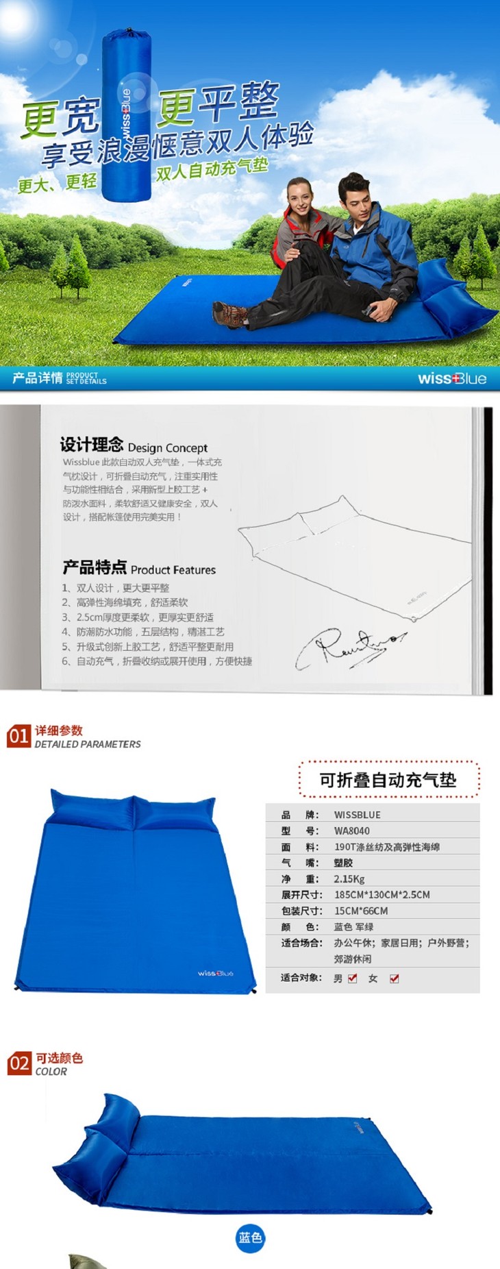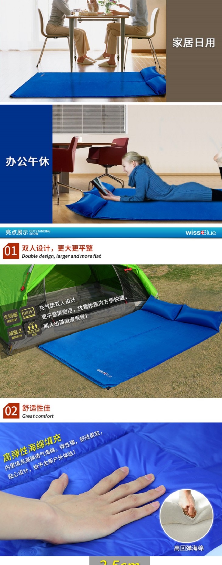 维仕蓝 WISSBLUE 可折叠自动充气垫弹性强 WA8040