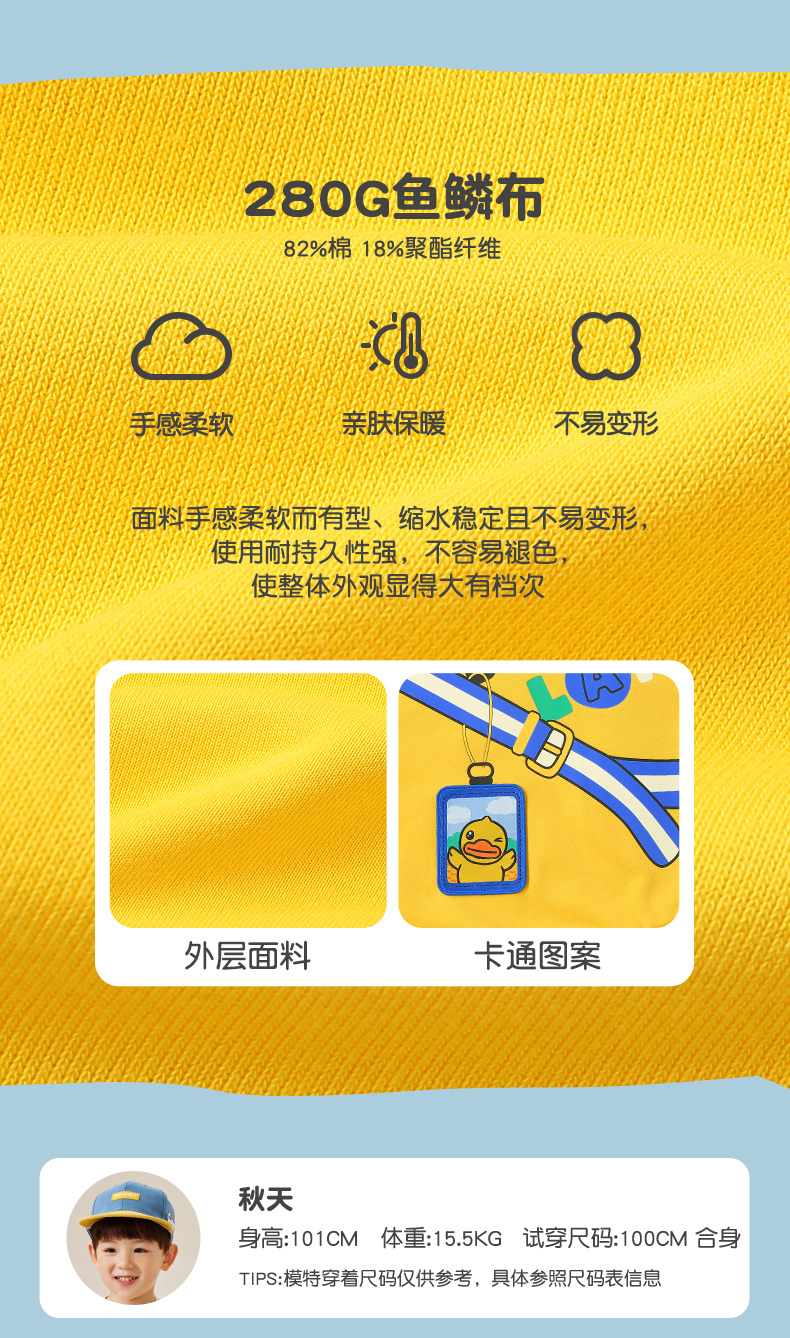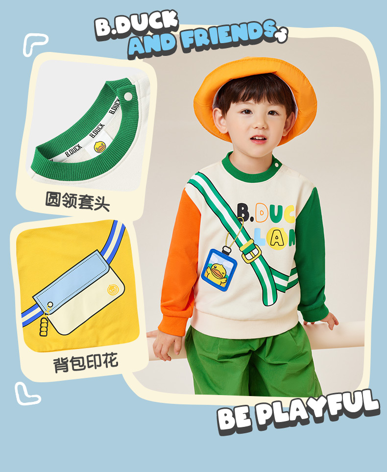 B.DUCK小黄鸭童装春秋圆领卫衣90-130 BF3408062A