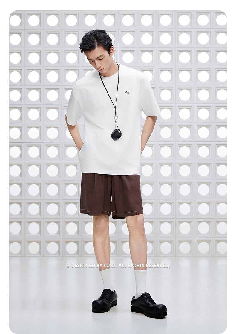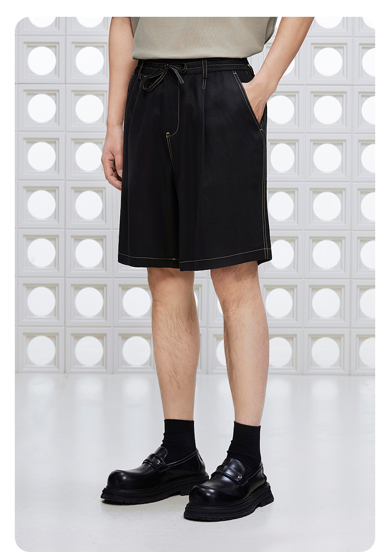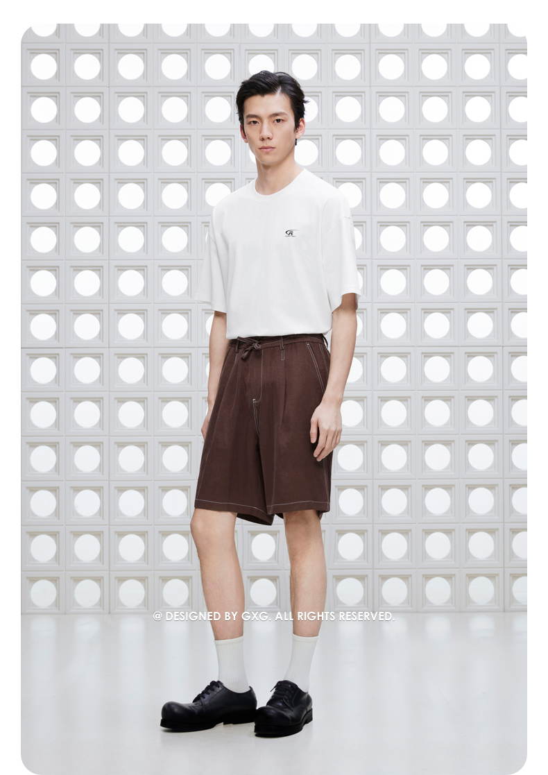 GXG男装 撞明线设计短裤通勤凉爽休闲裤舒适宽松裤 2025夏季新品