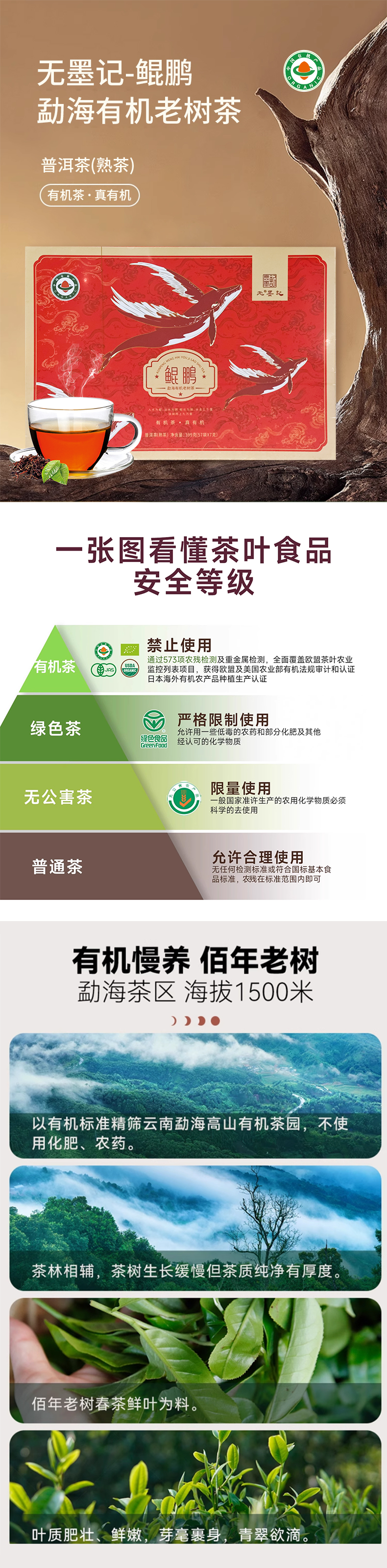 无墨记鲲鹏勐海有机老树茶普洱茶熟茶399g