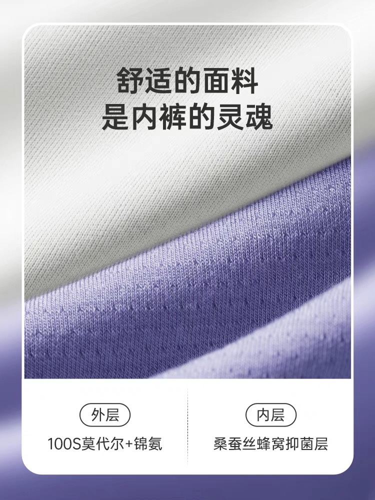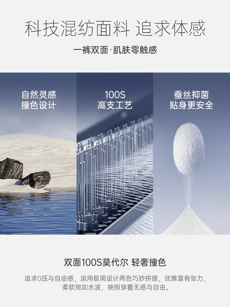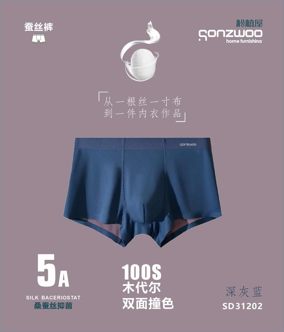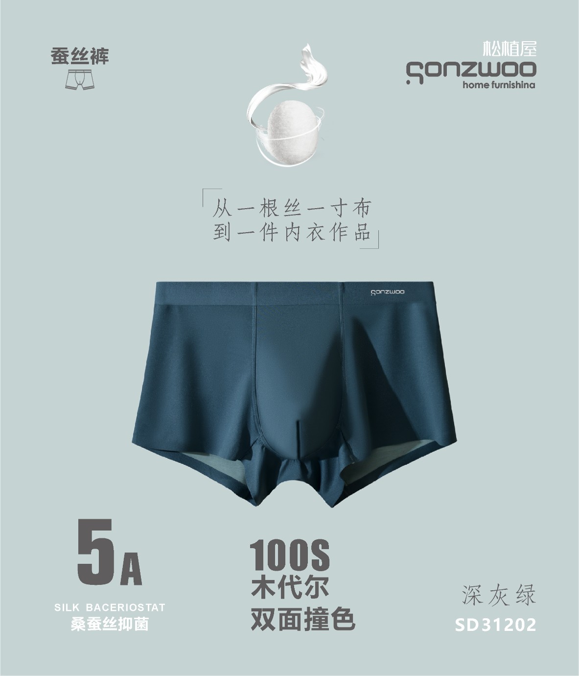 松植屋升级新款莫代尔男士蚕丝平角内裤纯棉柔桑蚕丝10A级抗菌裆短裤3条装