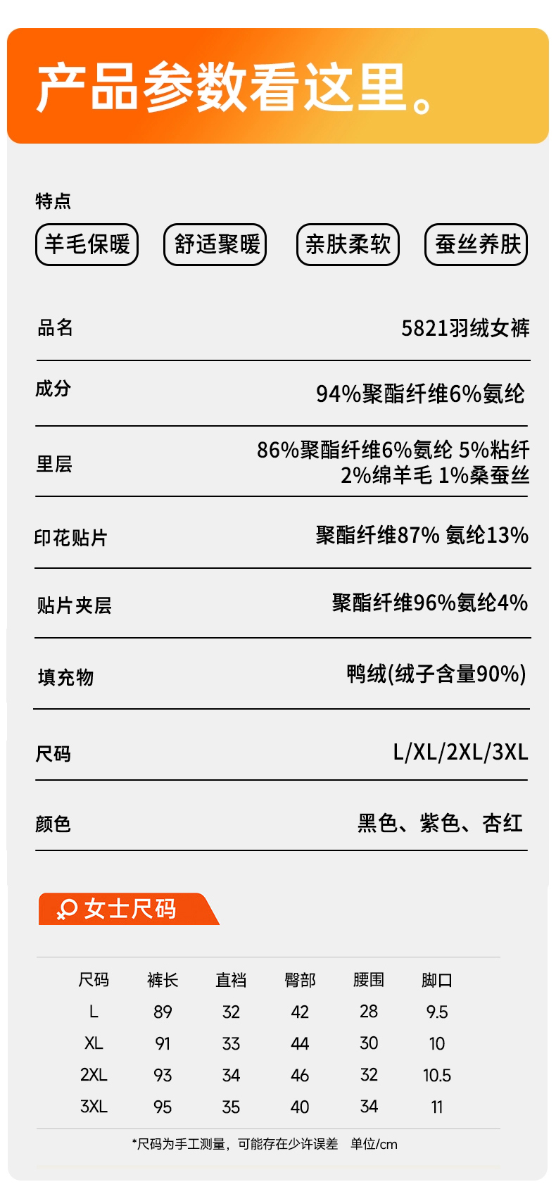 冬季保暖神器女士加厚御寒防寒聚暖保暖裤羽绒护膝女打底裤5821