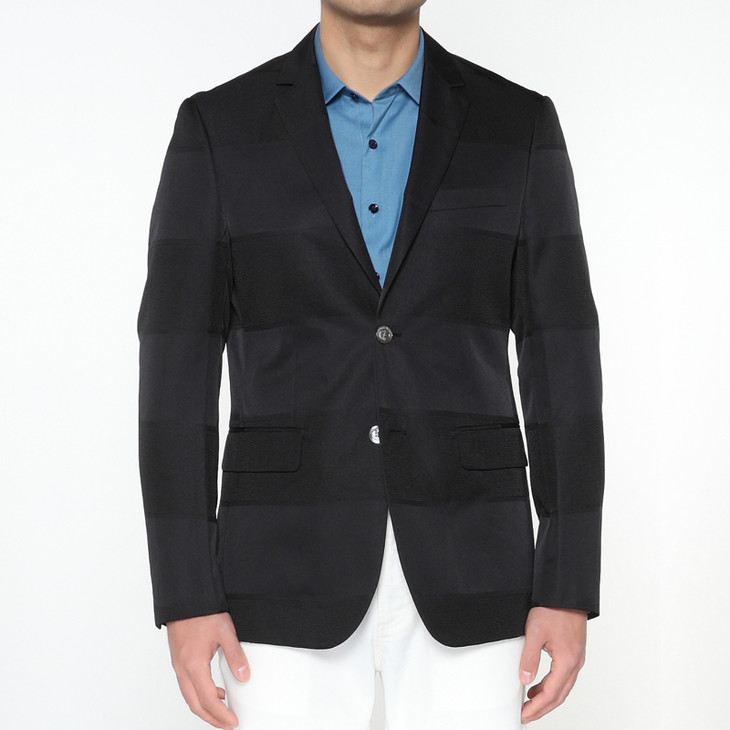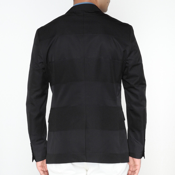 Marco Azzali 黑色宽条纹提花两粒扣西装 H5106200