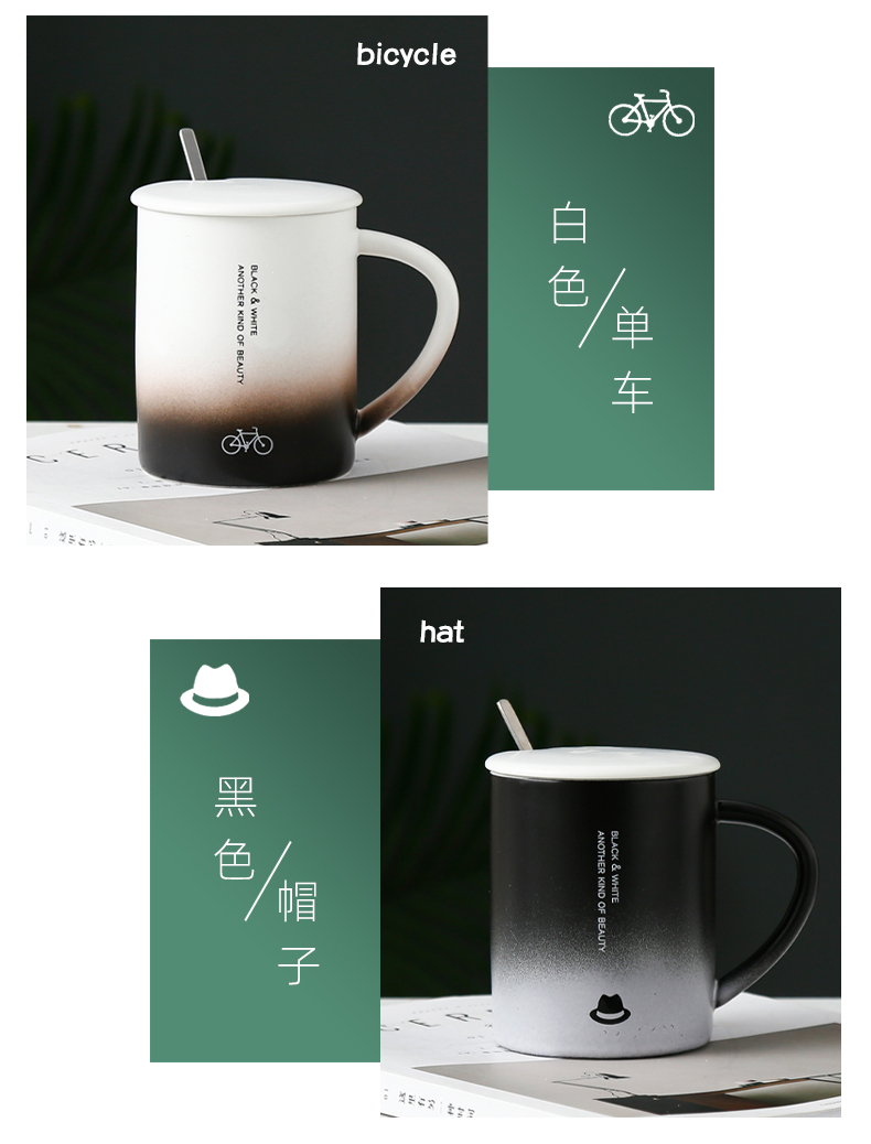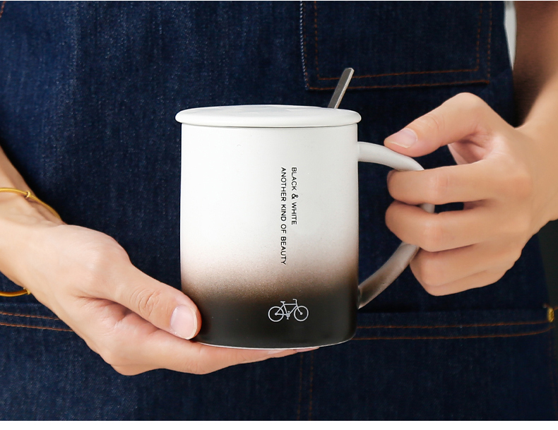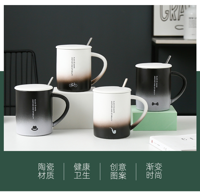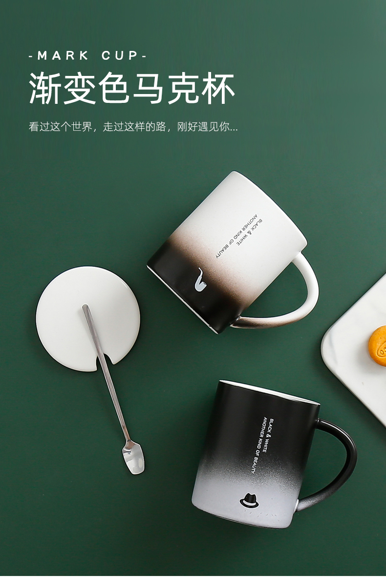 恒度马克杯欧式渐变杯HD-3149陶瓷杯带盖带勺办公室马克杯家用喝水杯子早餐杯男女茶杯情侣杯子