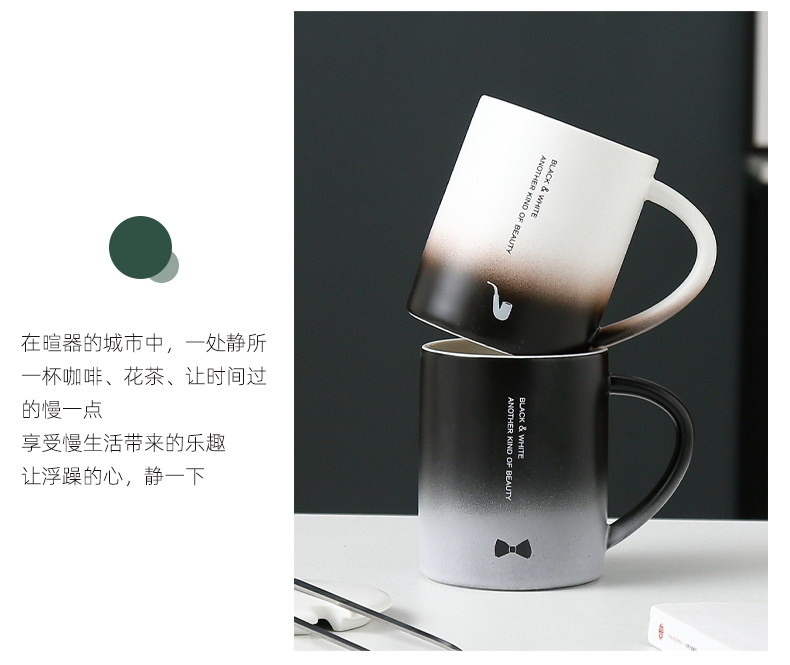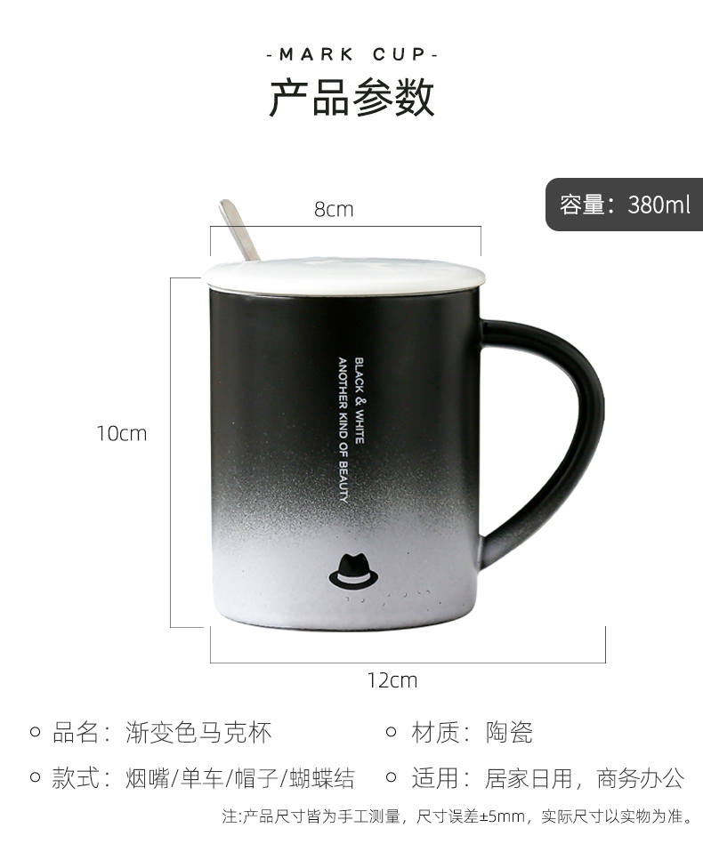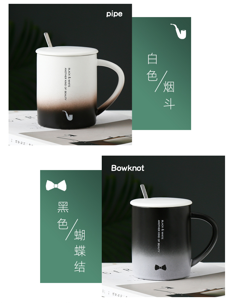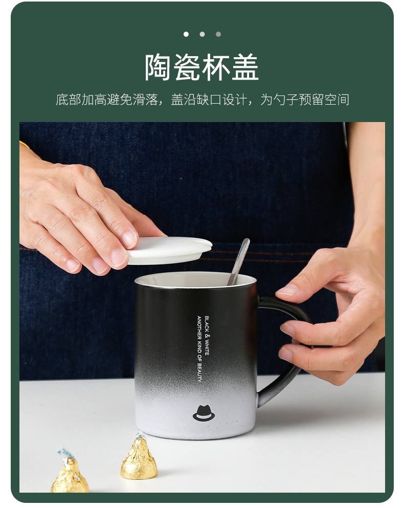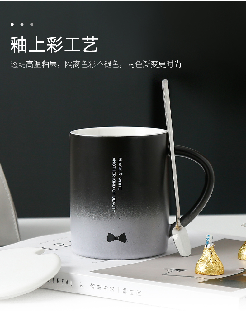 恒度马克杯欧式渐变杯HD-3149陶瓷杯带盖带勺办公室马克杯家用喝水杯子早餐杯男女茶杯情侣杯子
