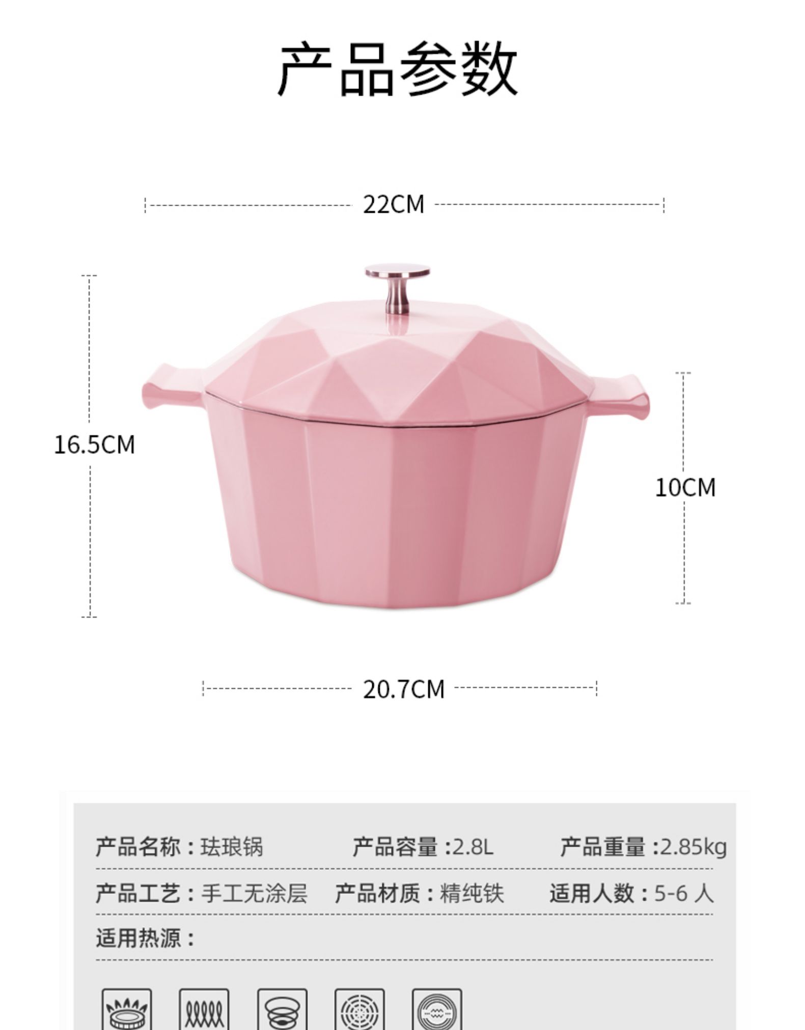 velosan铸铁珐琅锅家用汤锅蒸煮炖锅焖锅煮汤锅闷烧锅陶瓷锅炖锅