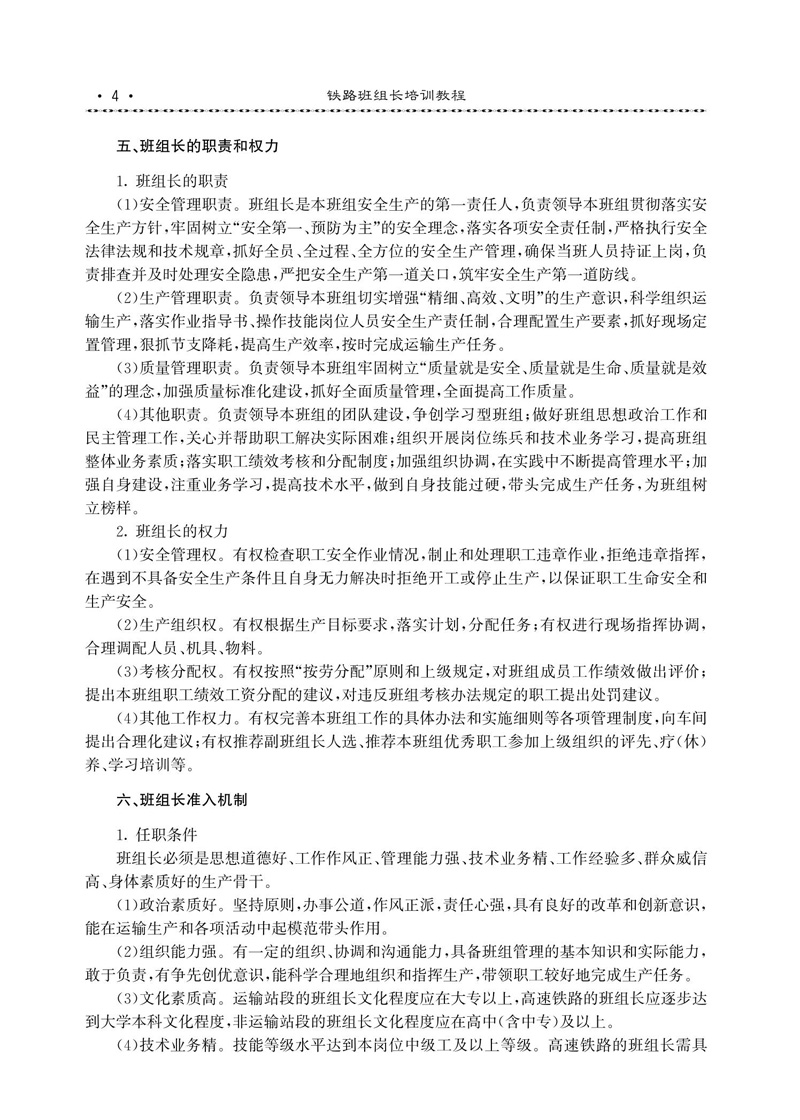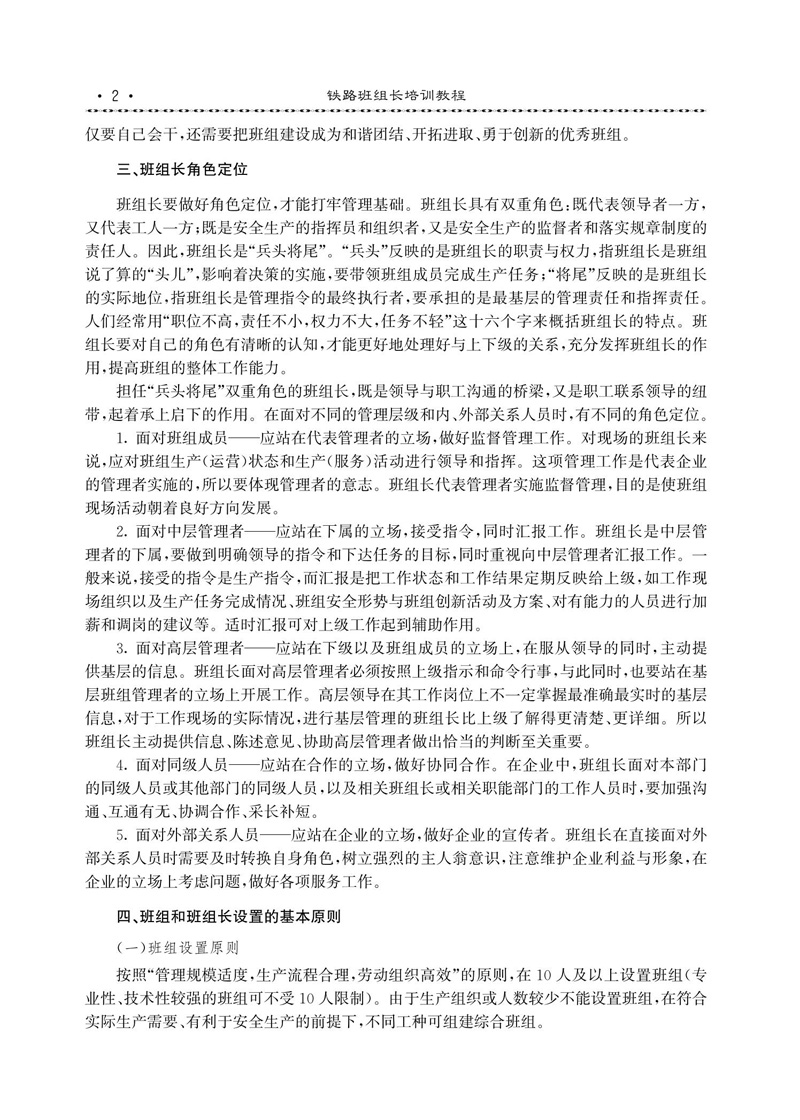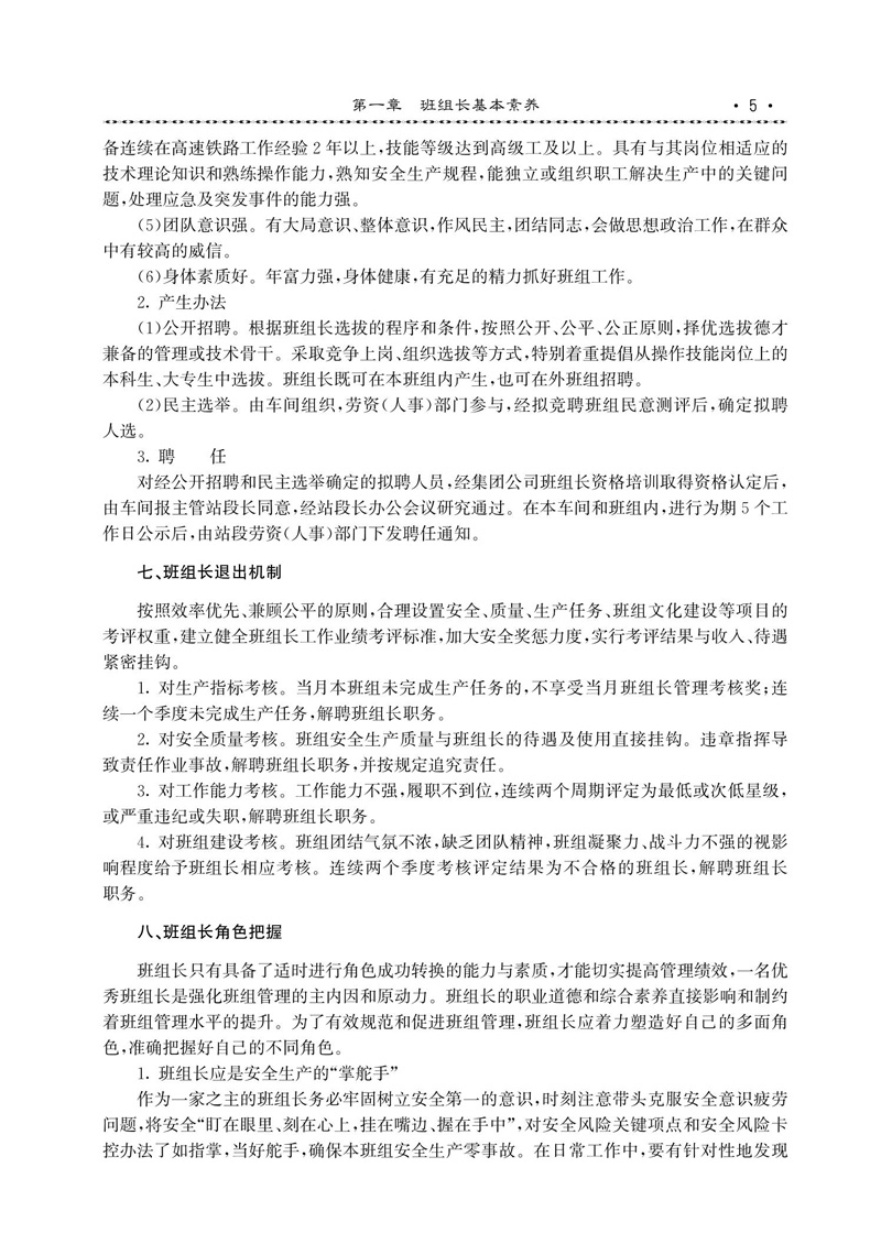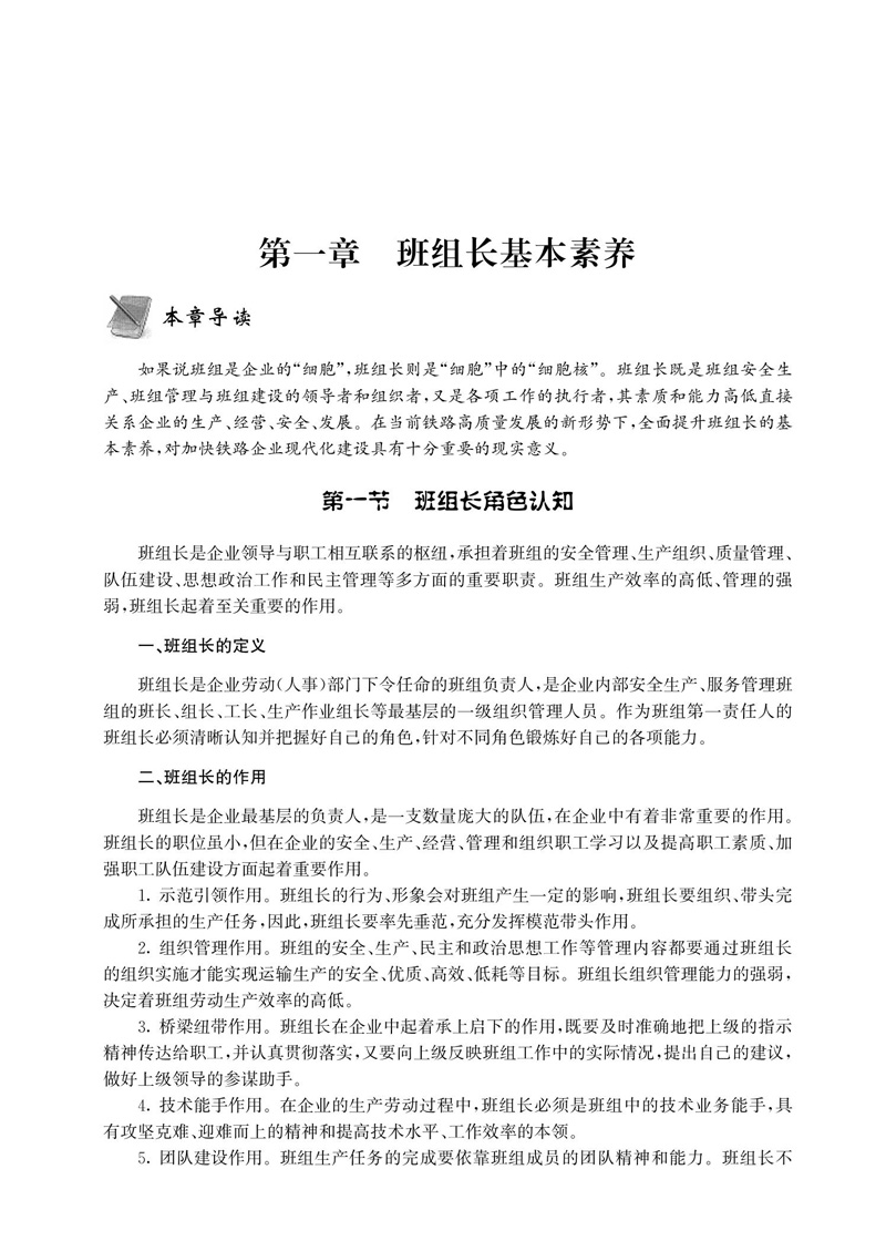 本书为铁路班组长培训教程,主要包括班组长基本素养、班组基础管理、班组现场管理、班组安全管理、班组长能力提升、高速铁路简介、优秀班组案例七章,以及附录。图书编写贴合铁路班组长培训的实际情况,注重知识性、可用性,文字通俗易懂,在应急救护部分还配有图片,方便培训时老师讲解、学生掌握。第六章的高速铁路简介,便于学生了解整个高速铁路系统及作用原理,实用性强。第七章选取了十六个优秀班组案例,易学习,可操作性强。