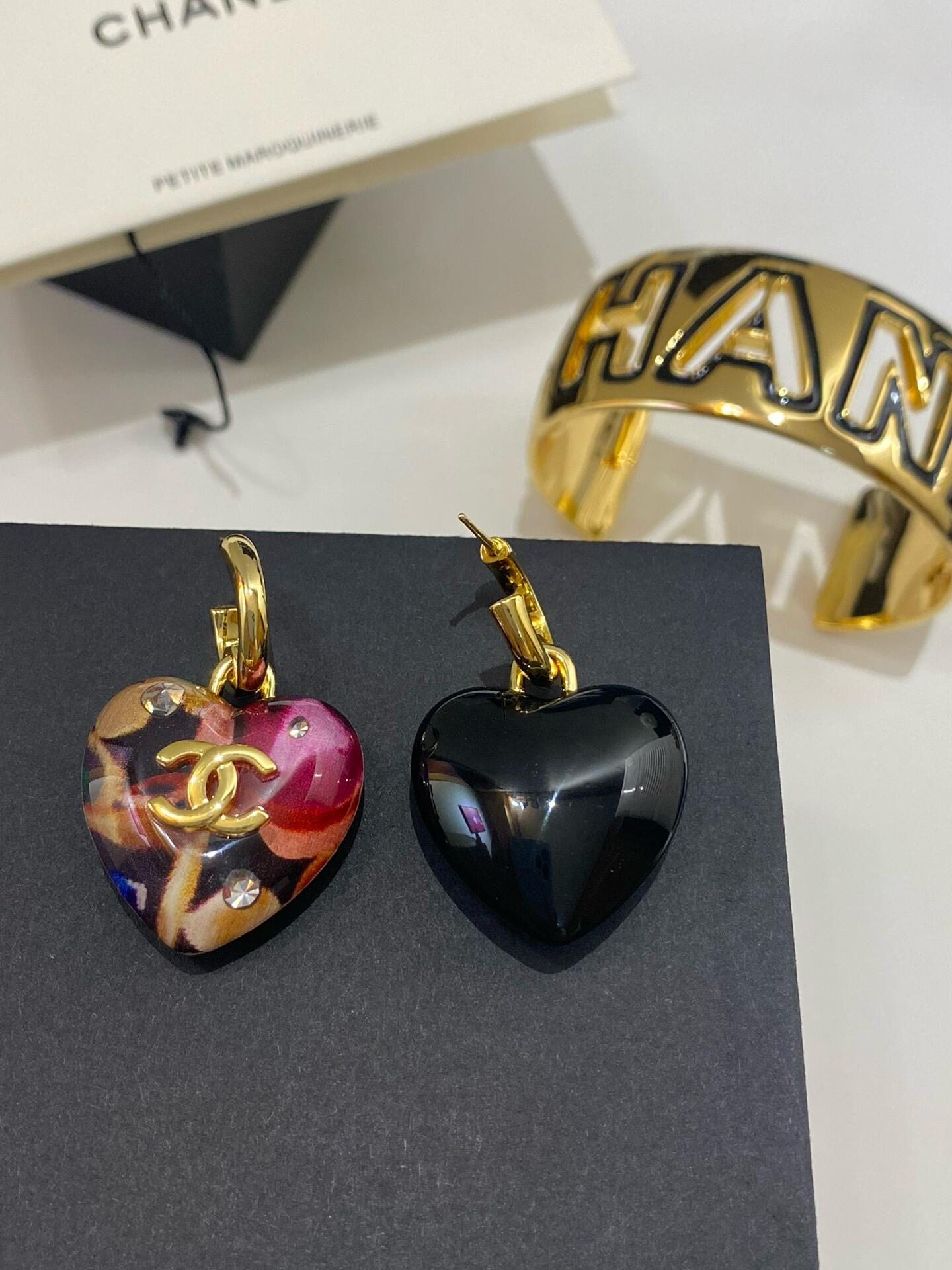 香奈儿CHANEL 24P秀款 彩色桃心耳环 复古波普风格 极具艺术感与视觉冲击 搭配圆润爱心真的很vintage很时髦 谁戴谁好看☑️甜妹辣妹白富美必备
