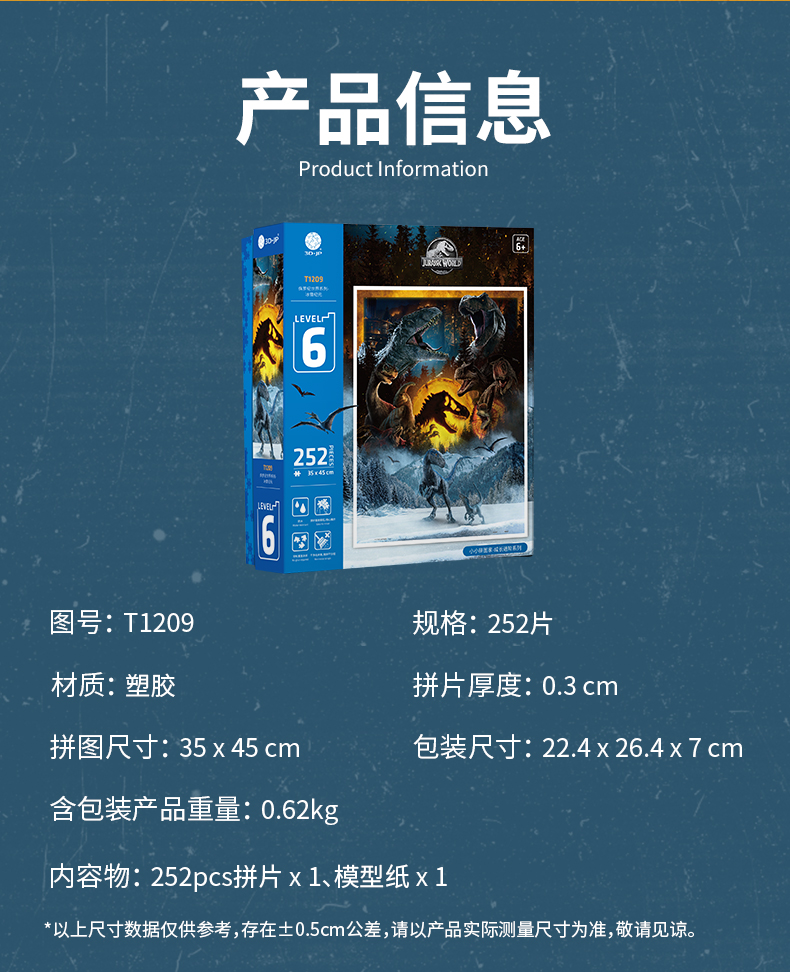 【折扣商品 不退不换】252片6阶 儿童拼图 T1209 侏罗纪世界系列-冰雪纪元 4岁到6岁塑料大块益智玩具