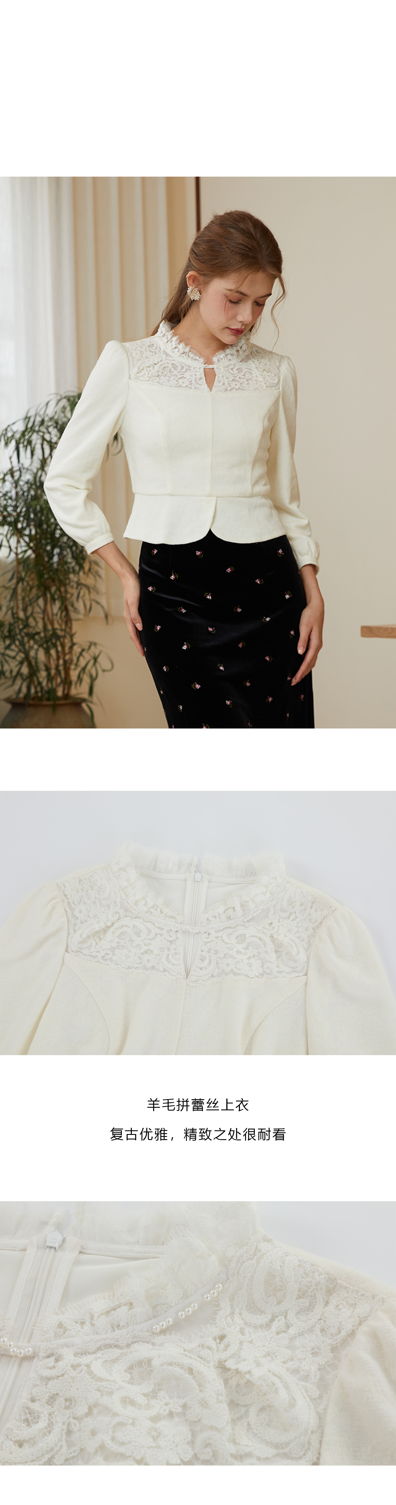 司歌羊毛长袖上衣秋冬女收腰复古优雅T921232