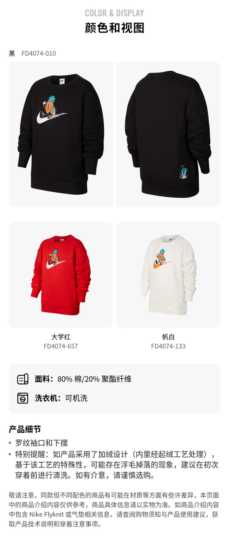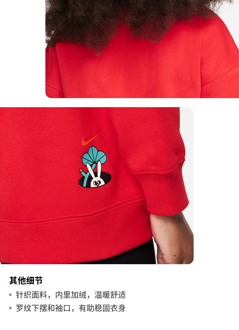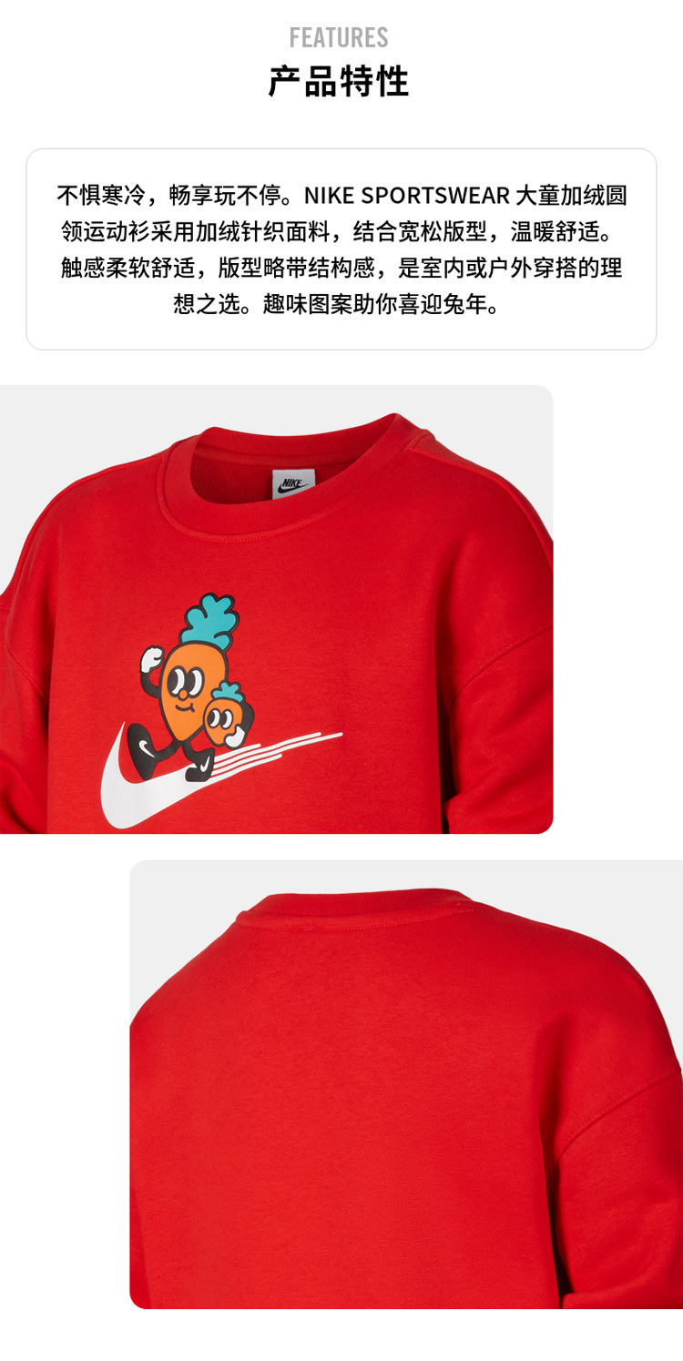 耐克-童衣类(春)G3小童套头无帽卫衣学院红