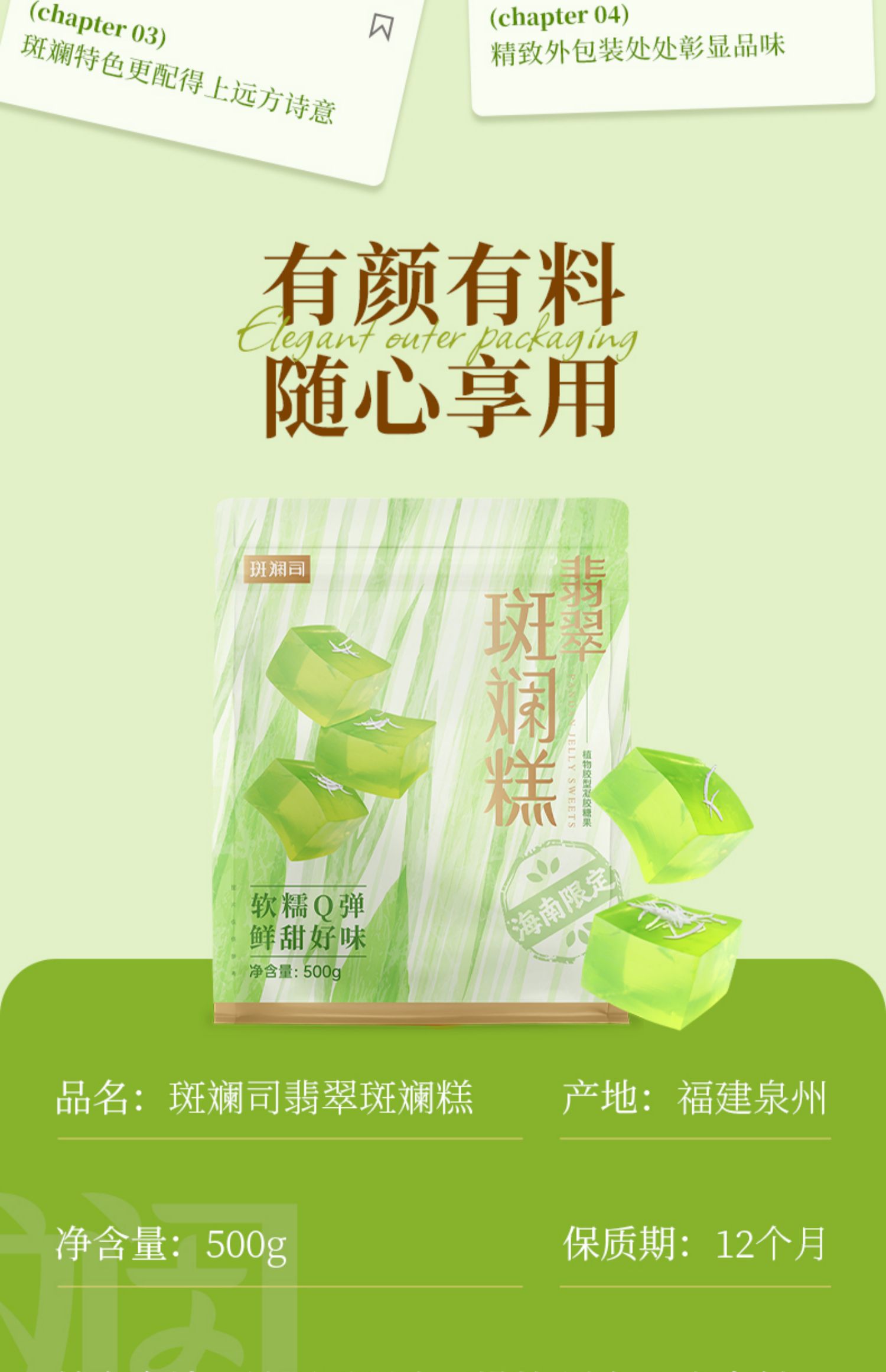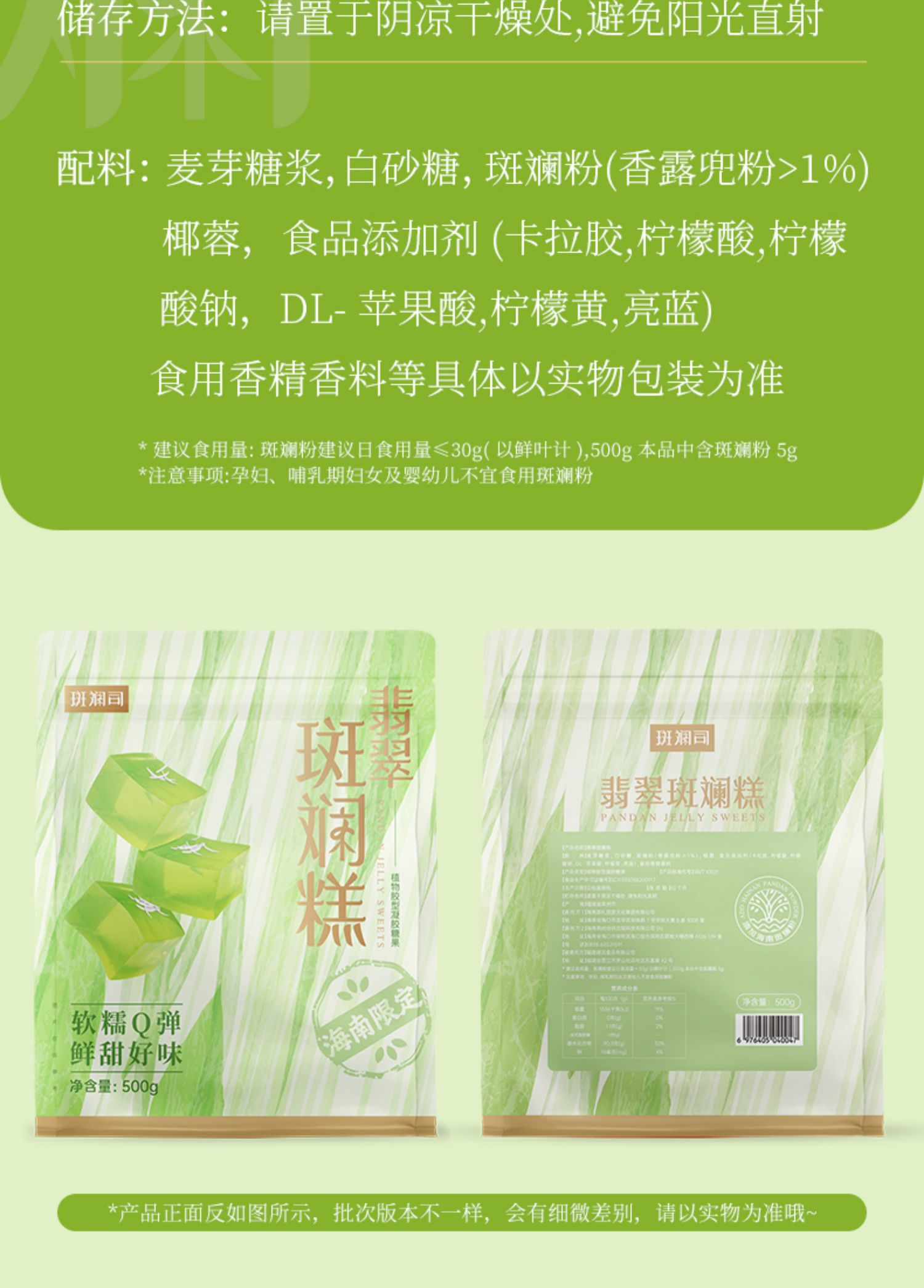 斑斓司翡翠斑斓糕海南风味软糯香甜椰蓉糕点心零食喜糖年货500g