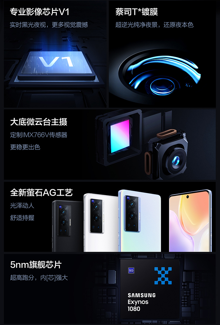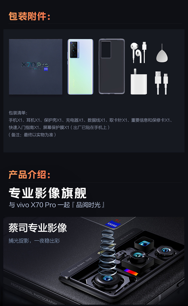 vivo X70Pro 专业影像芯片V1 蔡司光学镜头 前置3200万主摄 120Hz高刷 5G手机 12GB+256GB