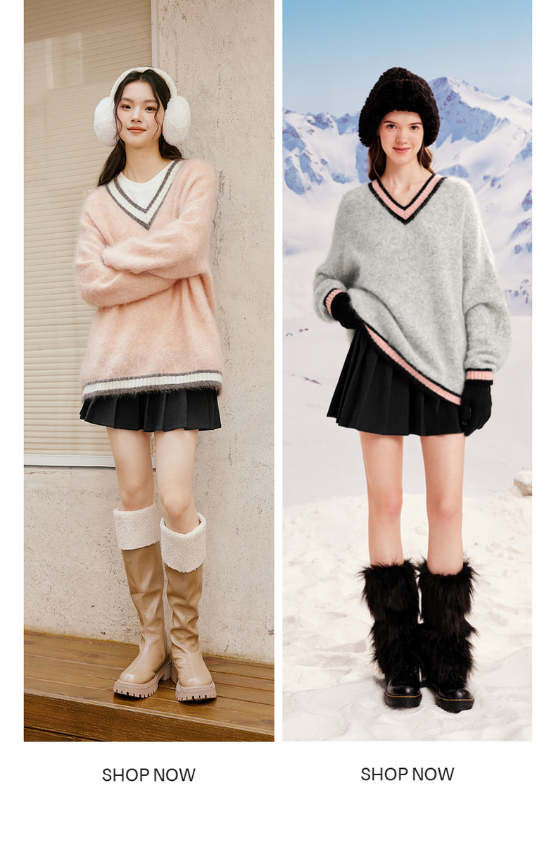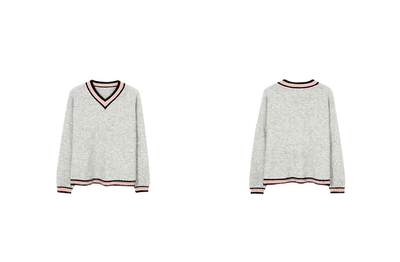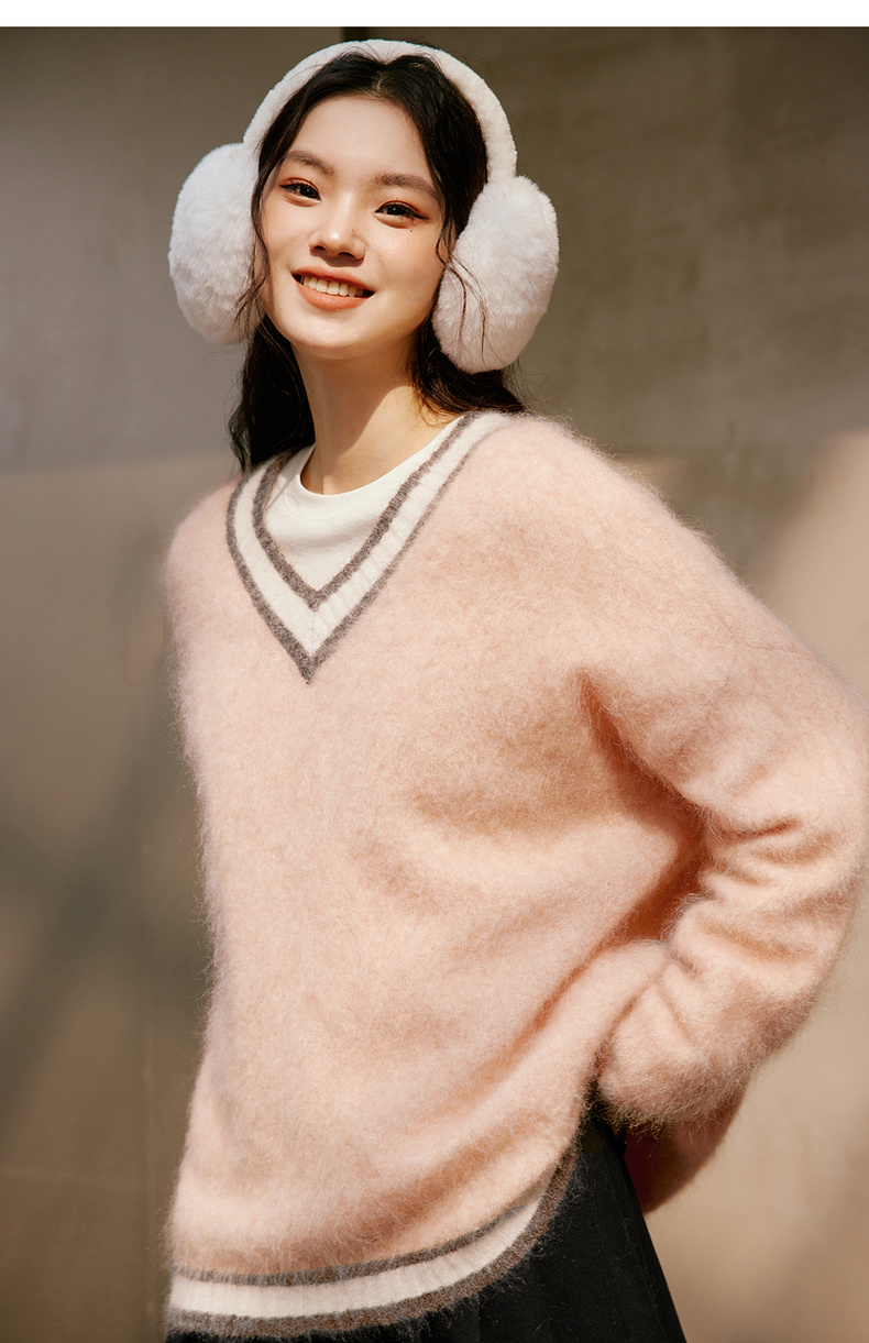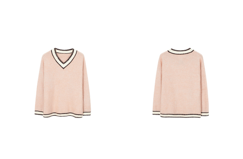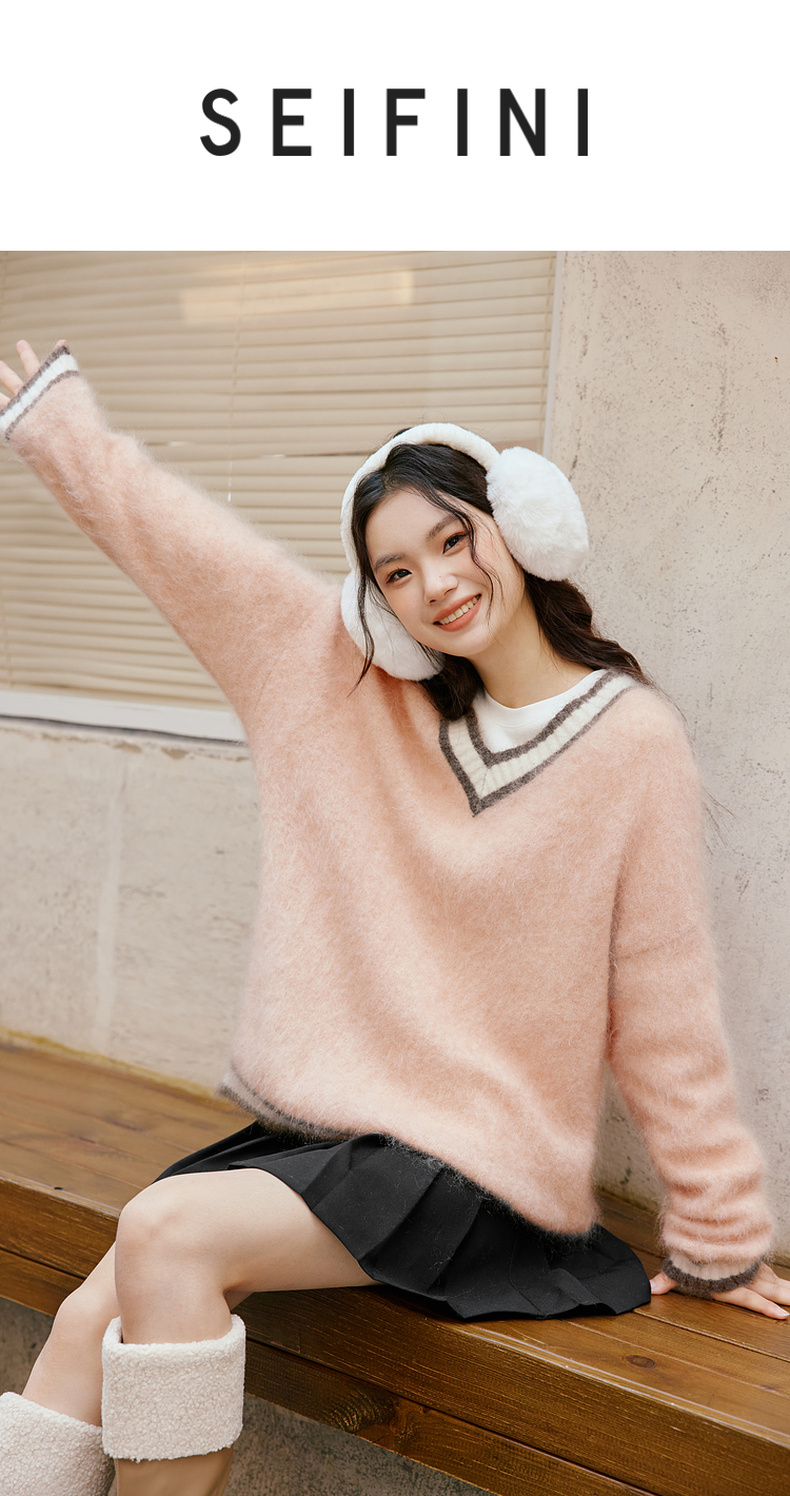 【严选】诗凡黎冬撞色罗纹设计宽松大廓型V领套头衫SEB131361