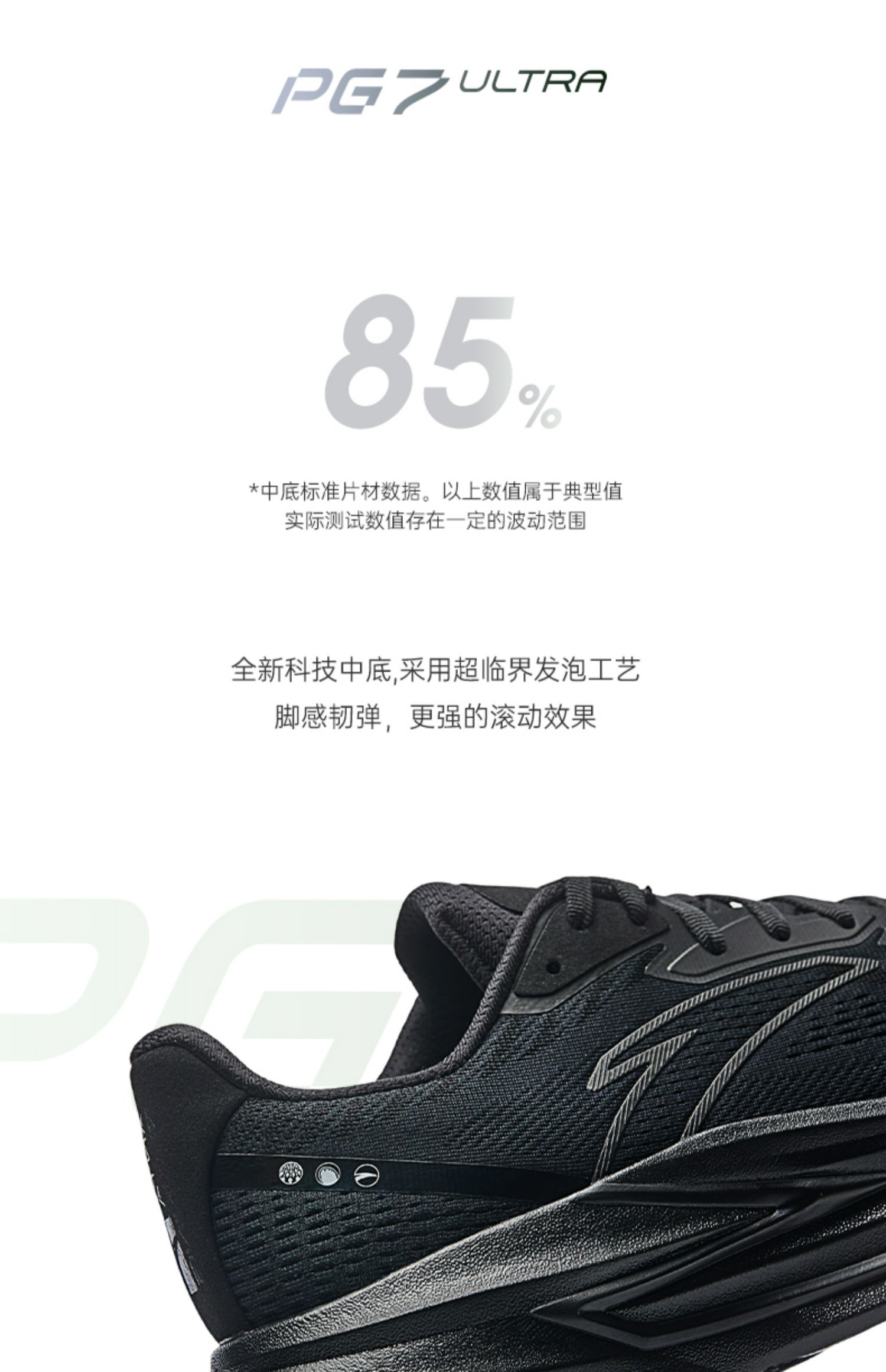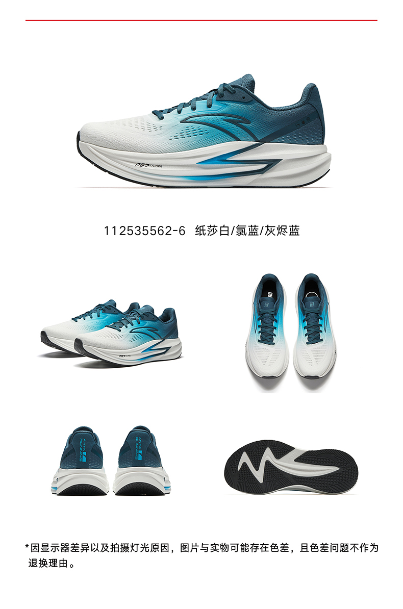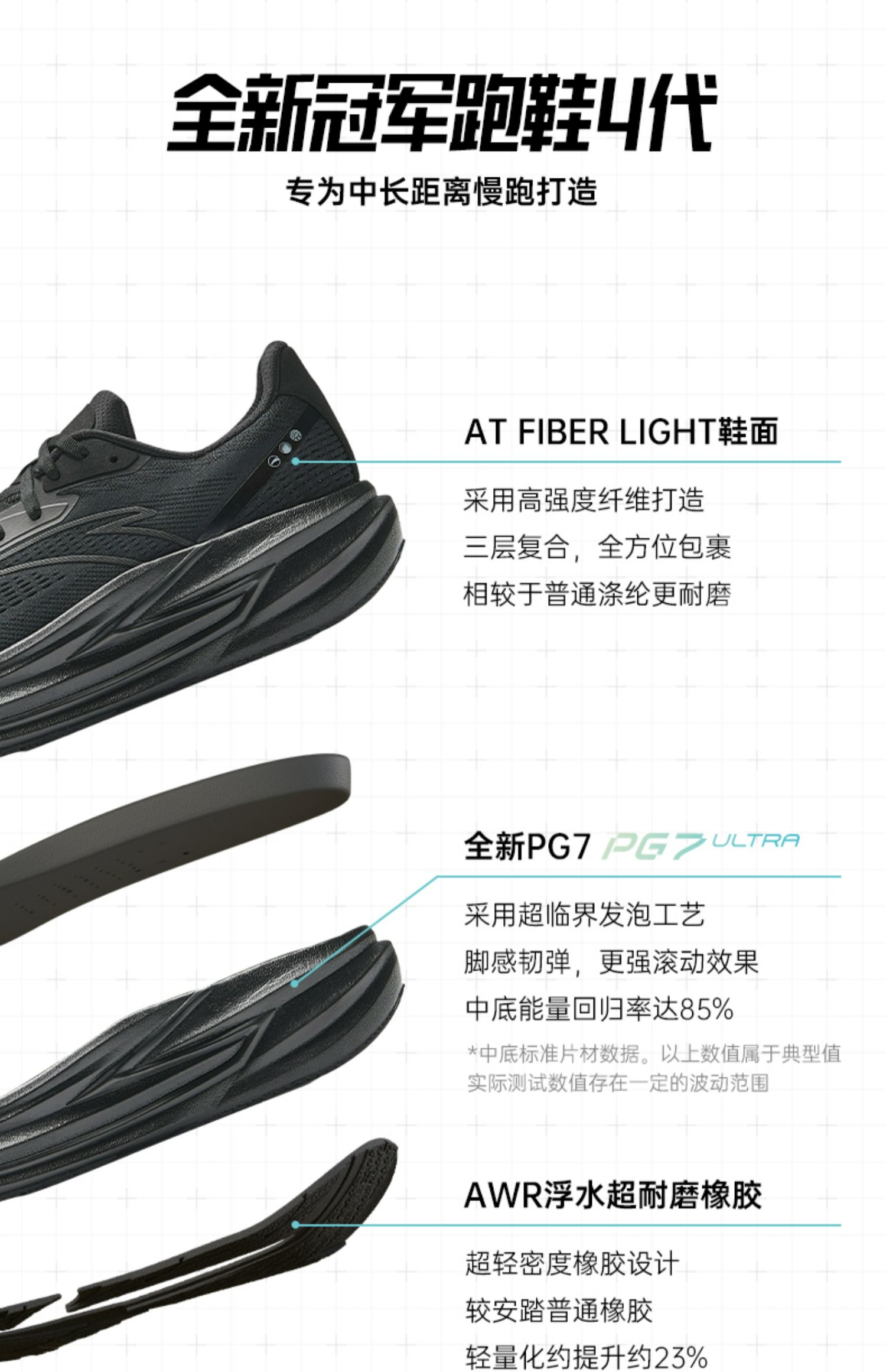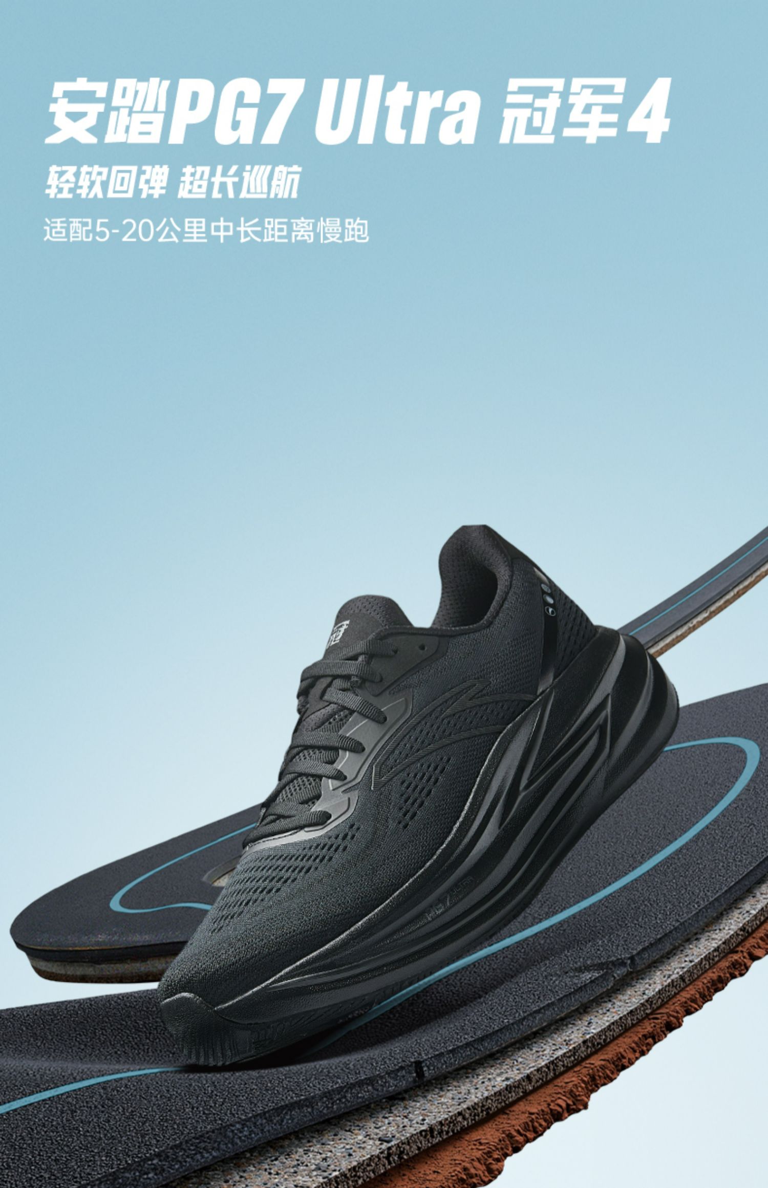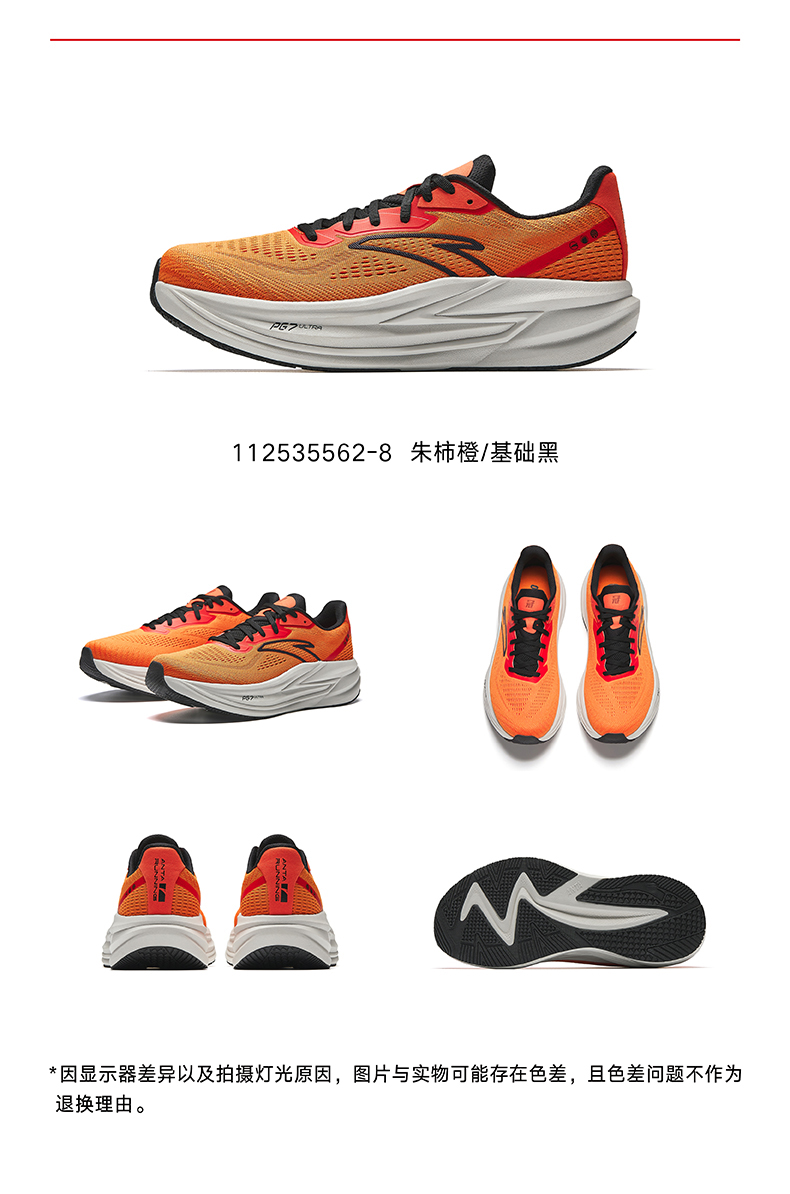 安踏冠军跑鞋4代PG7专业缓震慢跑步鞋男耐磨黑色运动鞋112535562