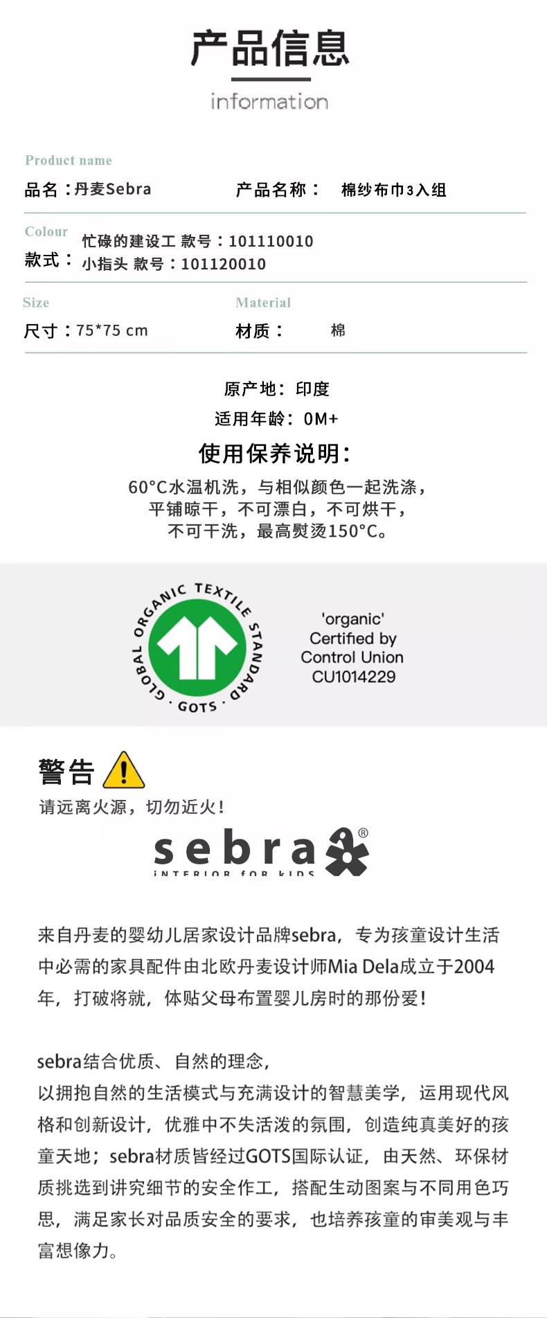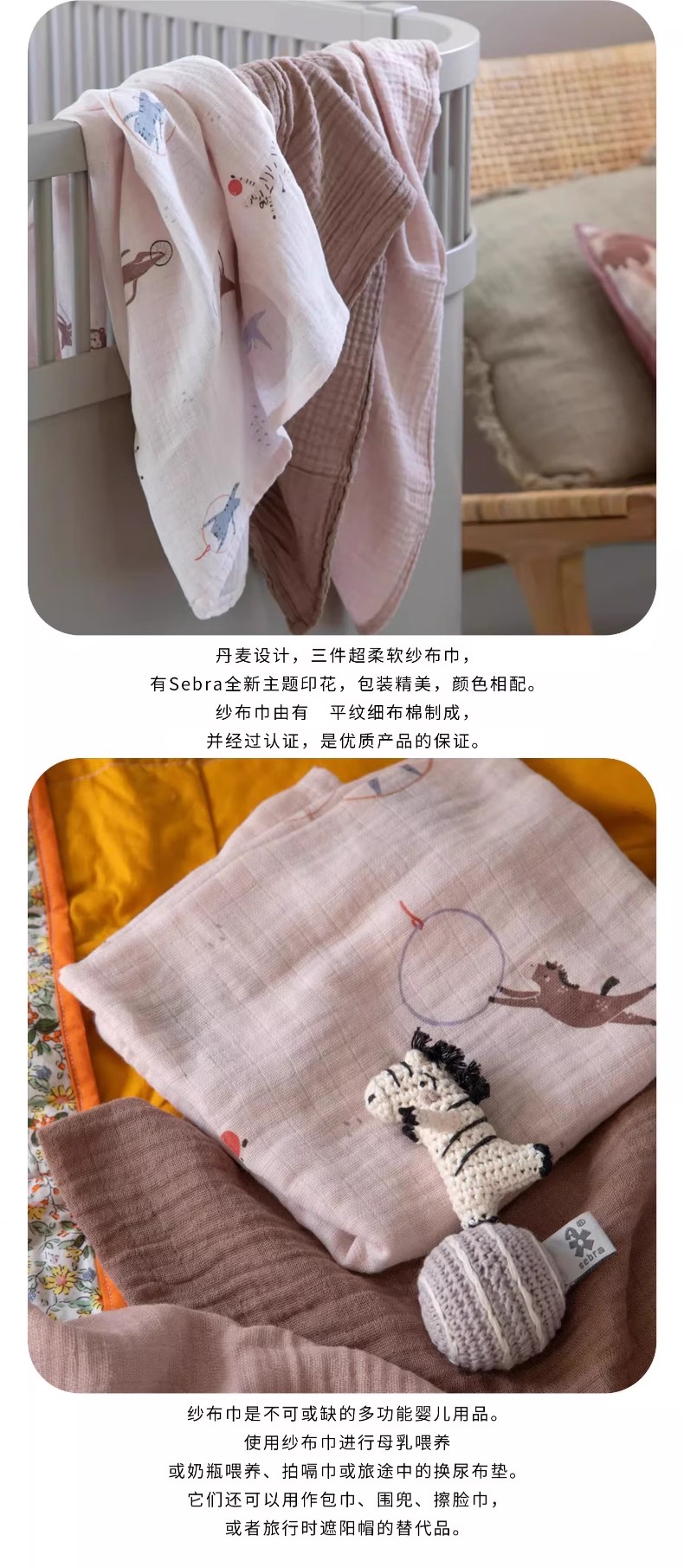 丹麦Sebra 棉纱布巾 婴儿纱布巾宝宝婴幼儿透气包巾薄被盖被