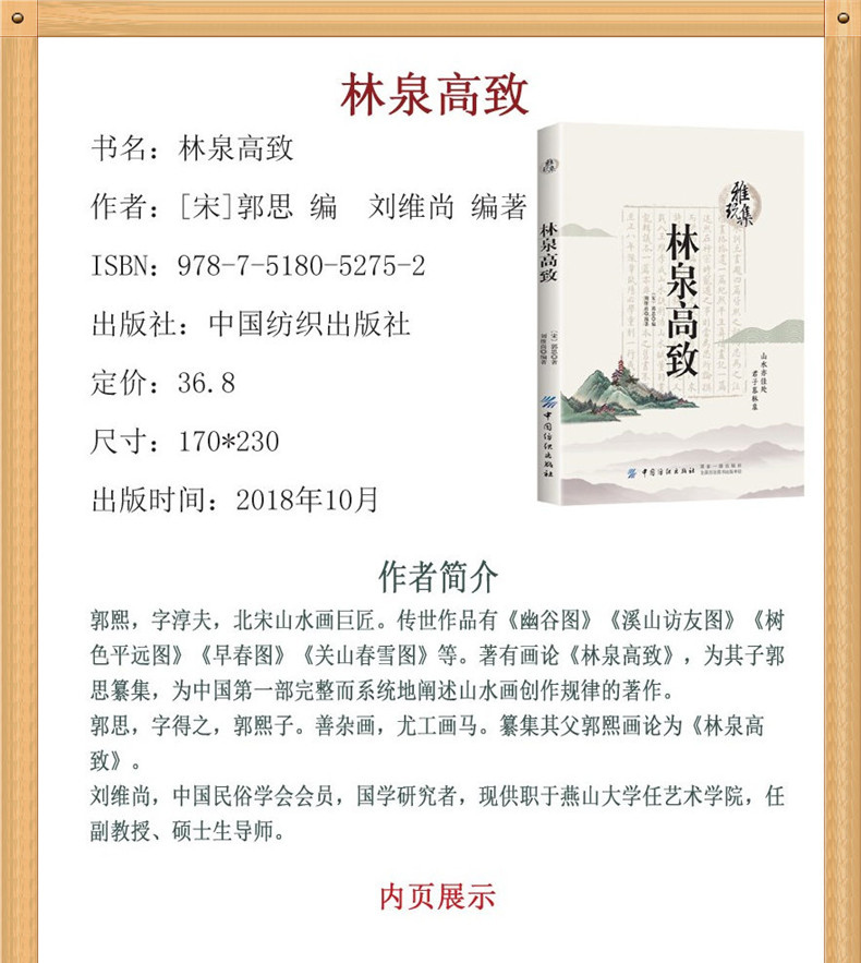 雅玩集:林泉高致 山水画创作鉴赏论著 北宋山水画巨匠郭熙 教学 水墨画艺术爱好者读物中国古诗词 中国古典小说、诗词 文学